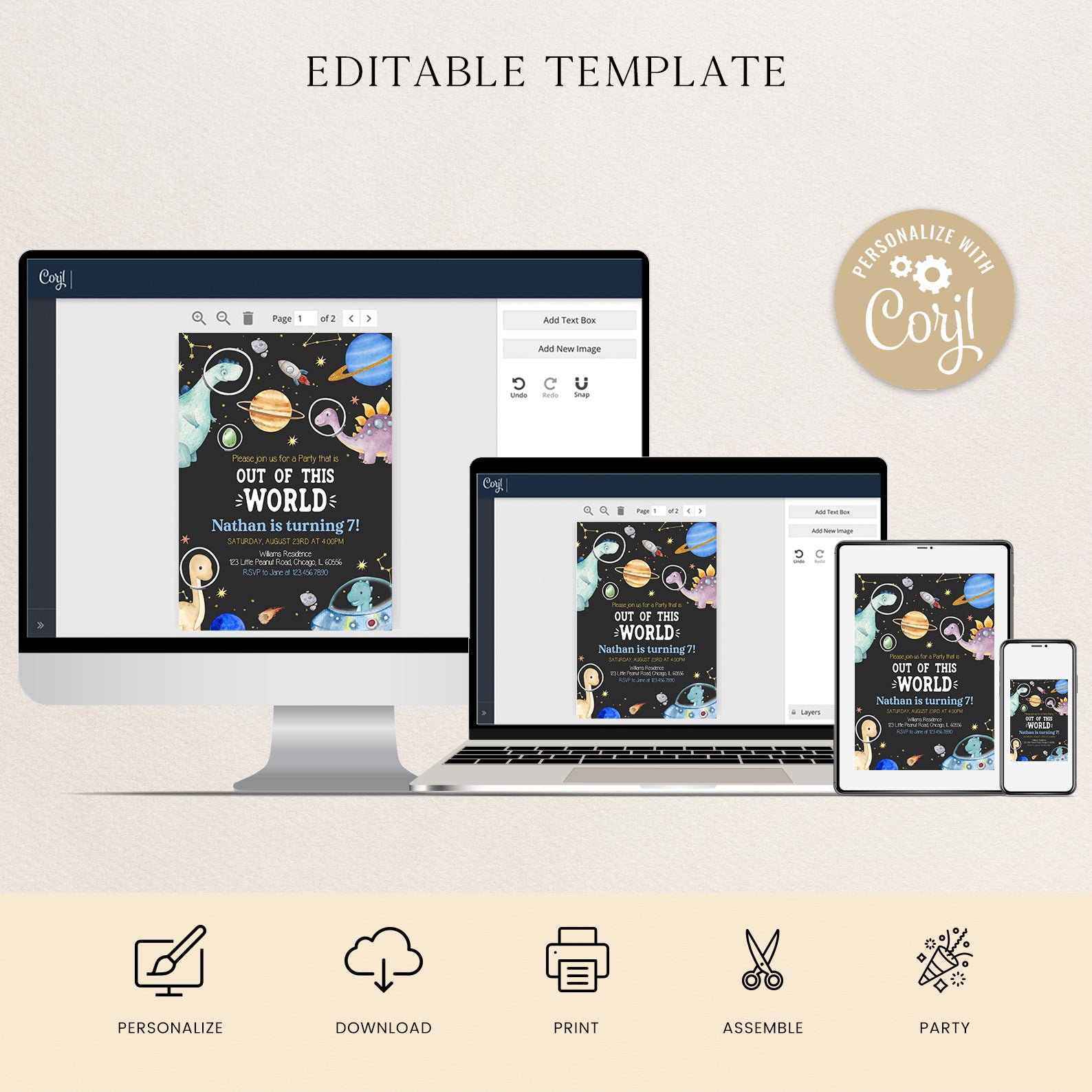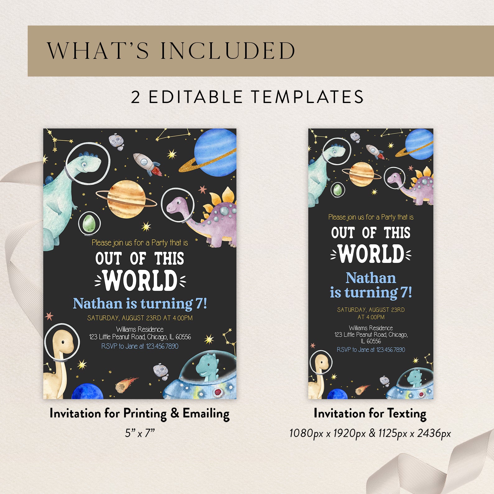 1. Purchase this Space Dino 7th Birthday Invitation: Out of This World Fun template