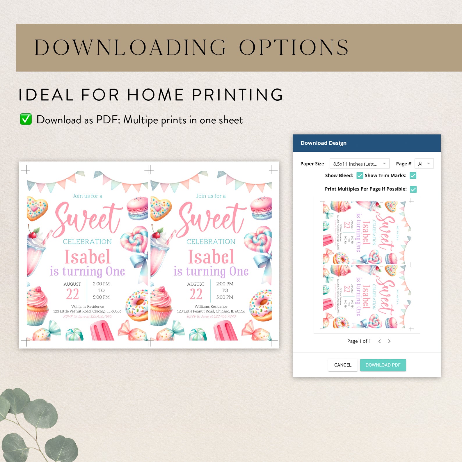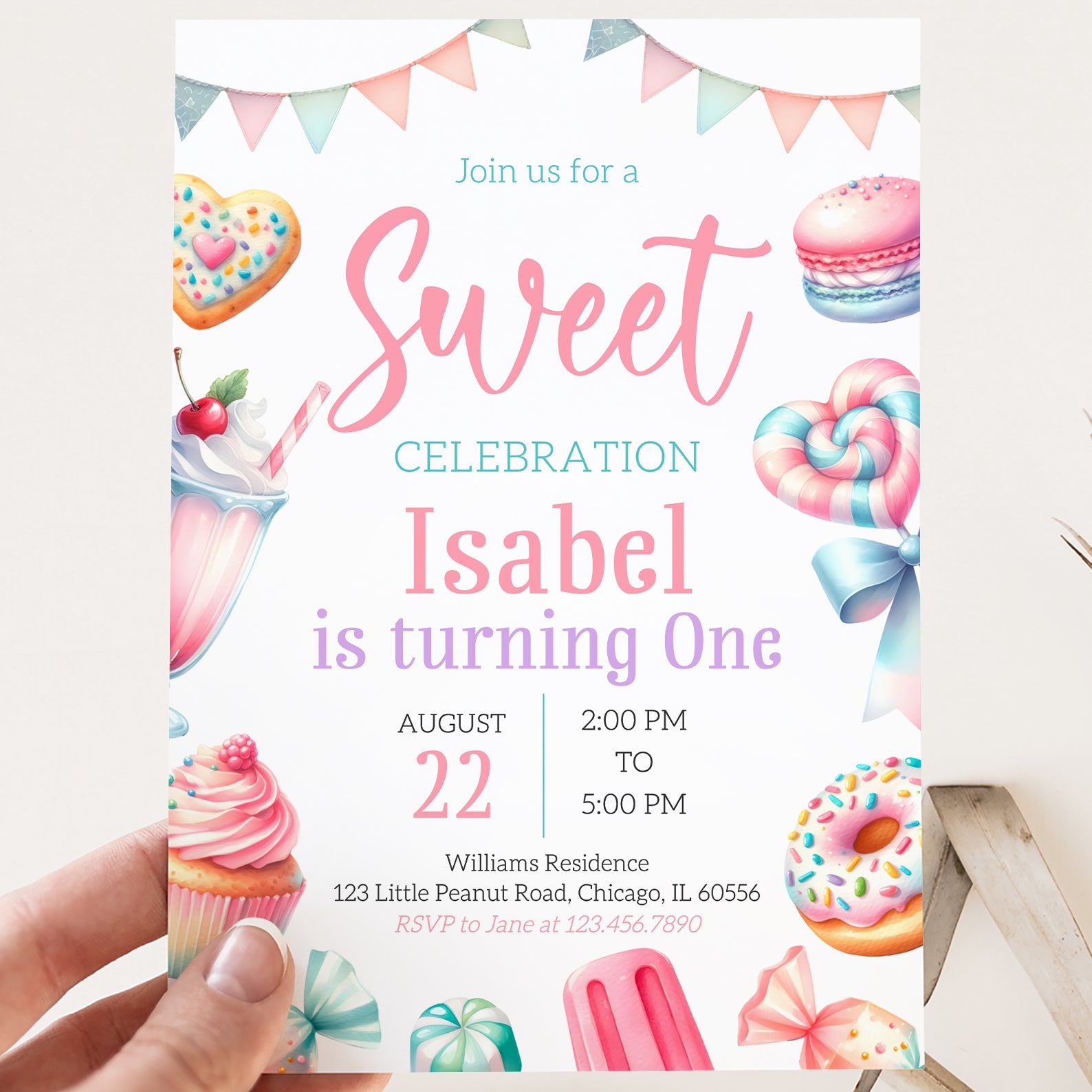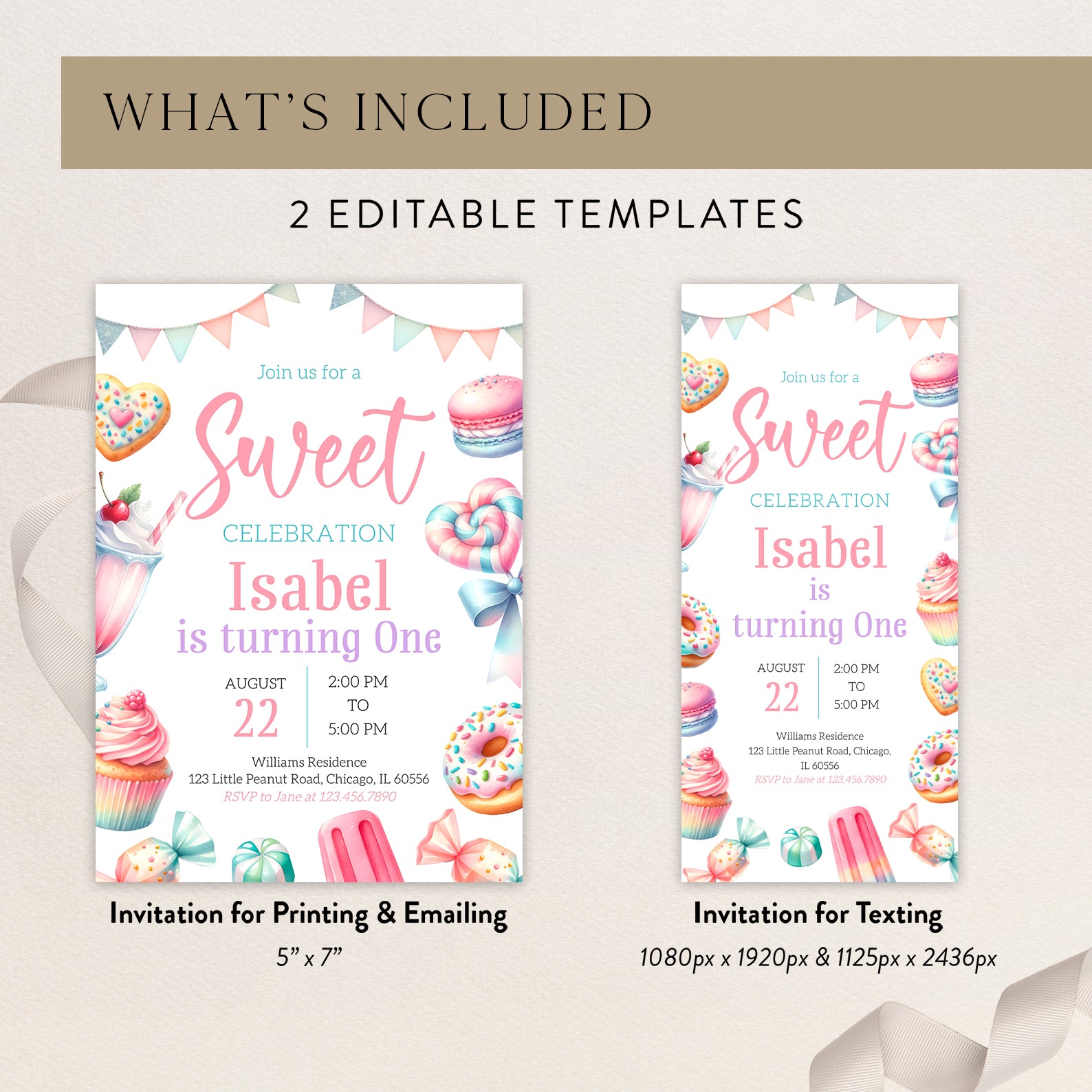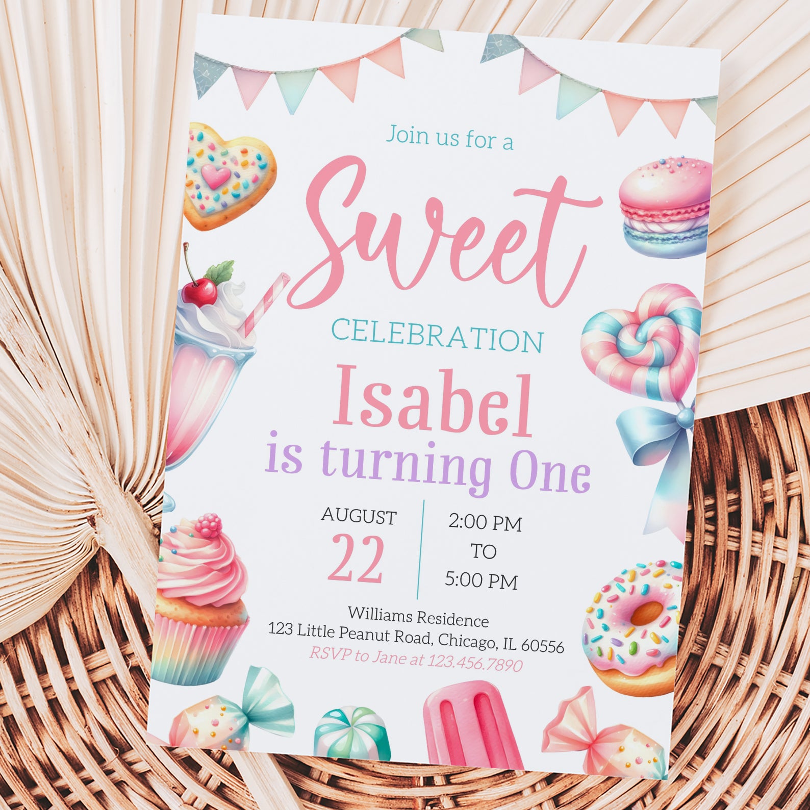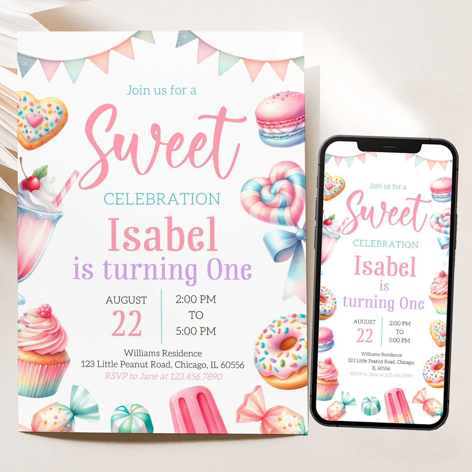 - Purchase this Sweet Treats Digital Invite: Summer 1st Birthday Party template