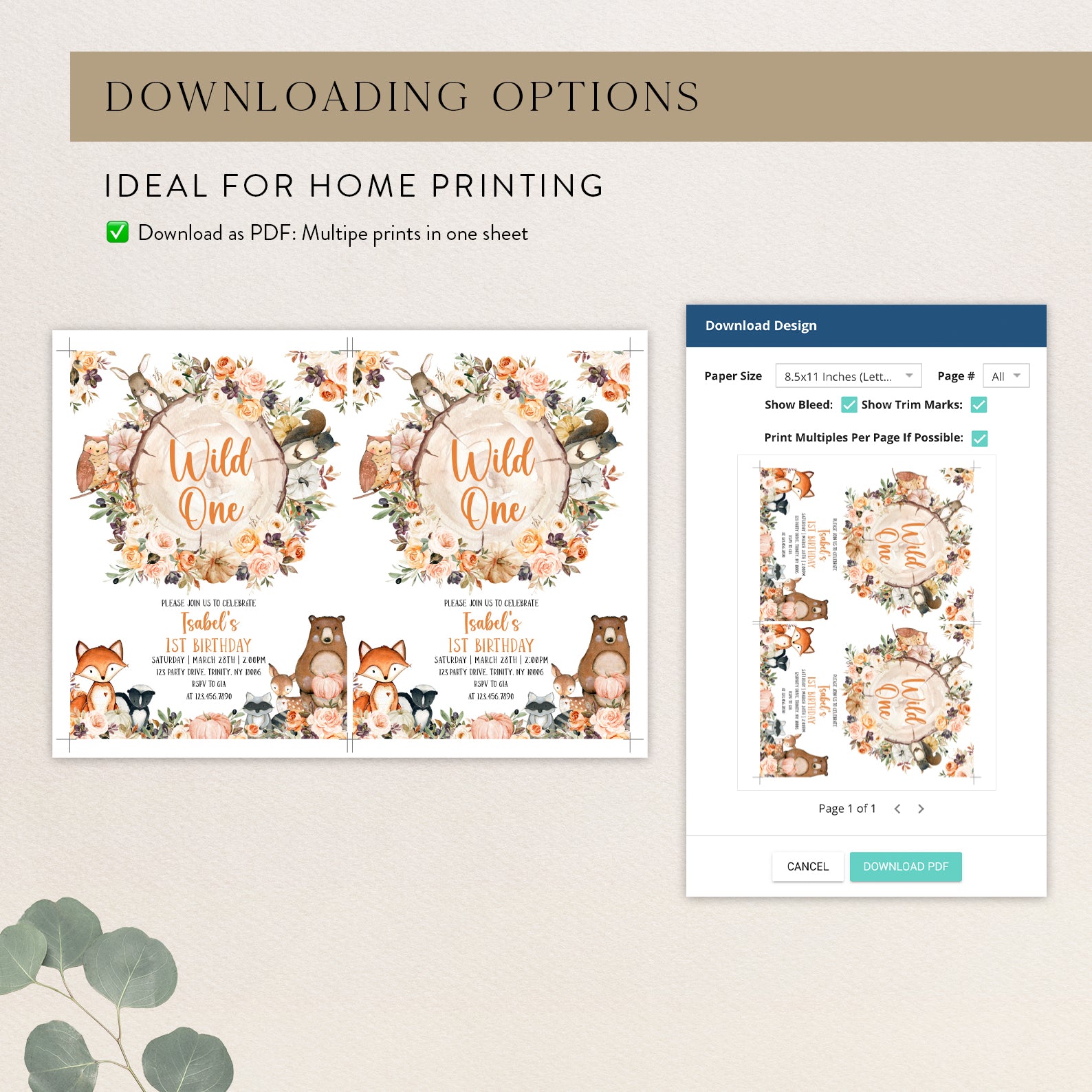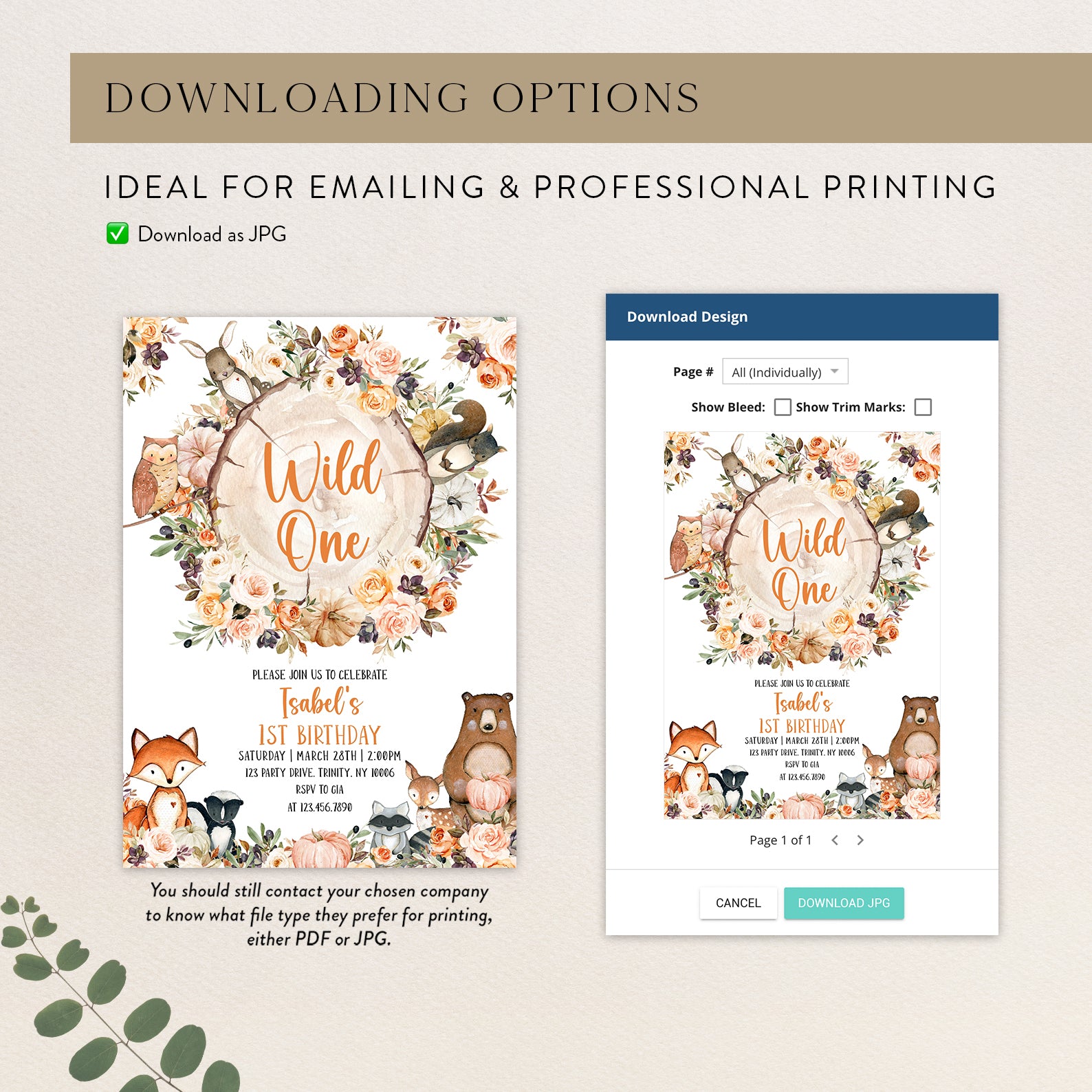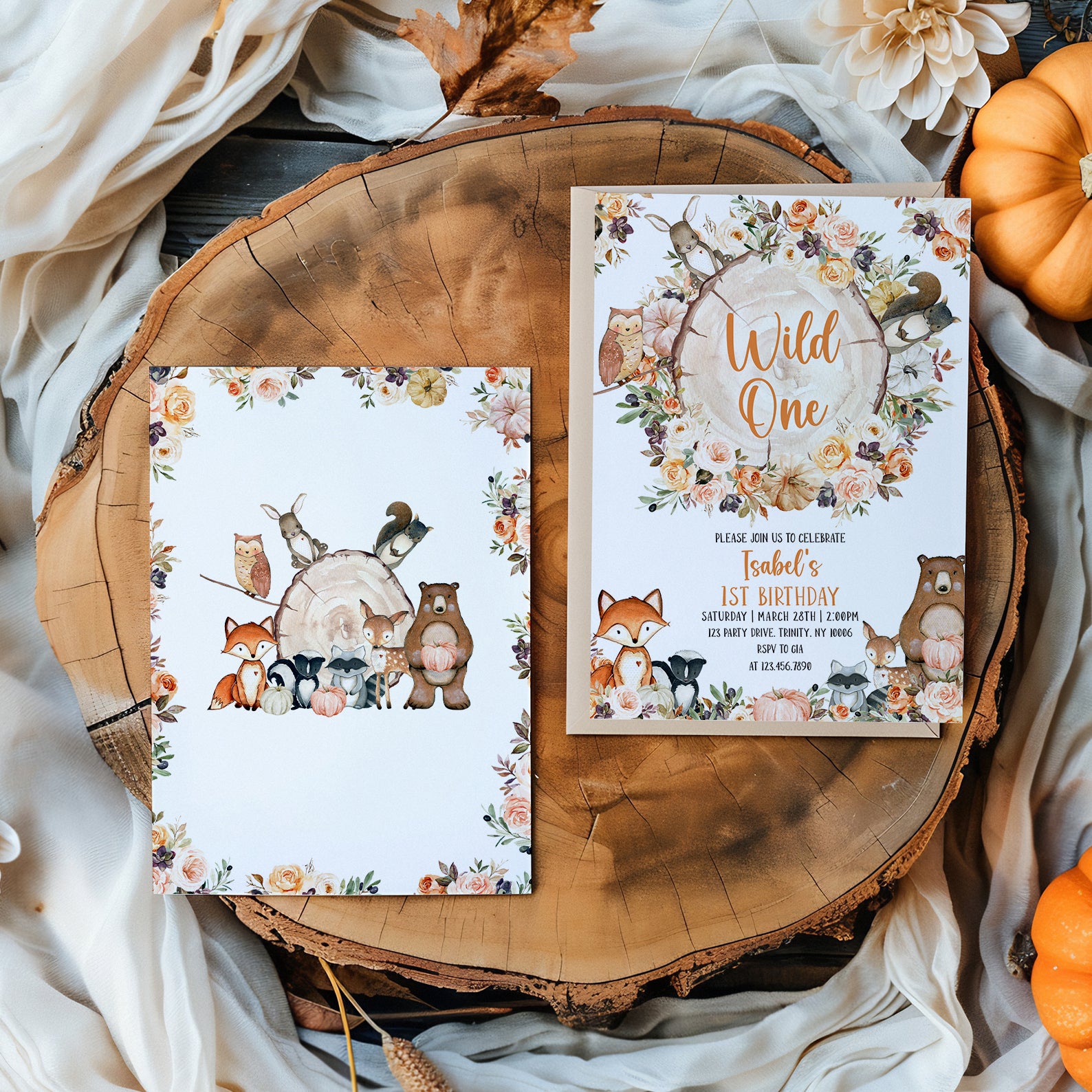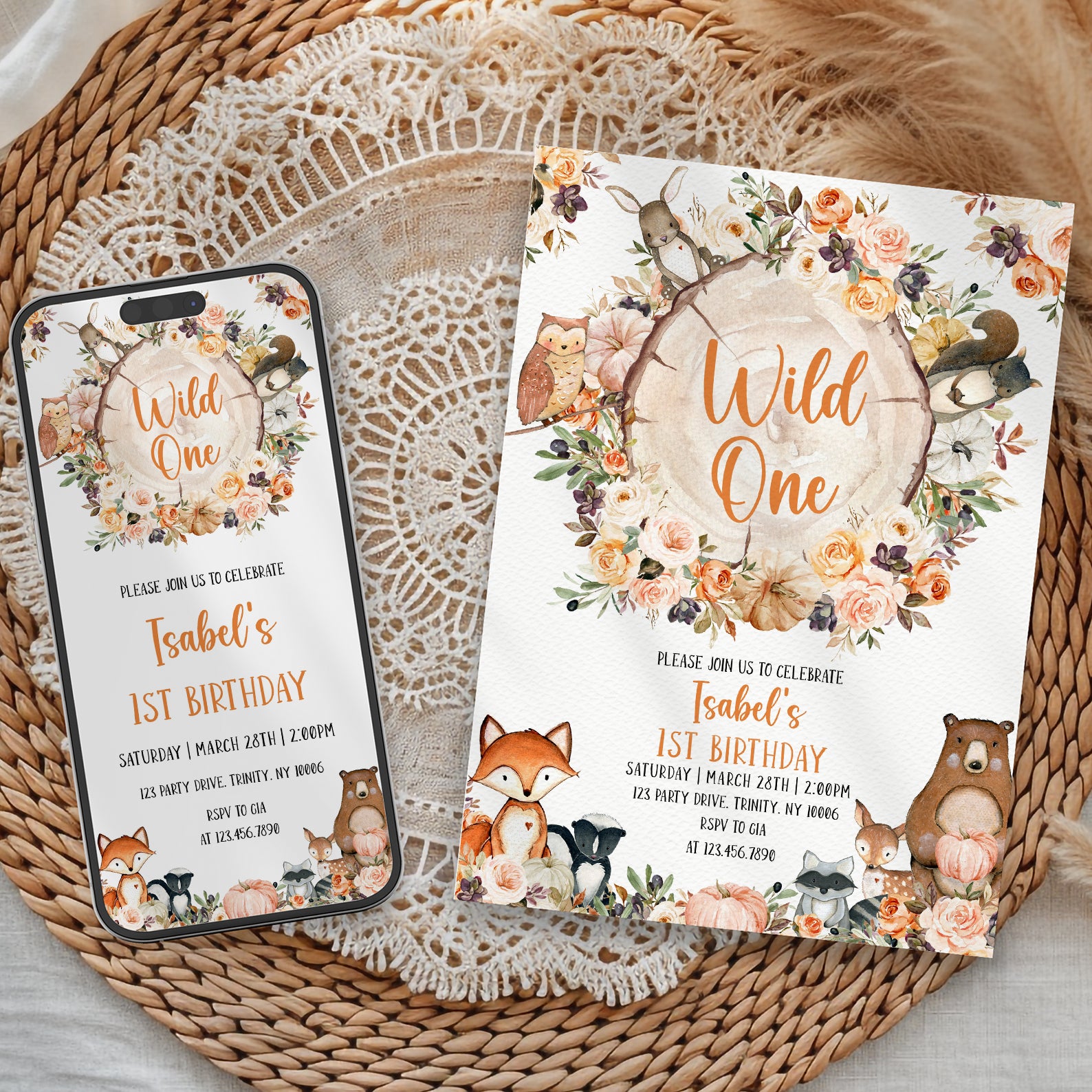 - Purchase this Wild One Fall Birthday Invitation: Woodland Animals & Pumpkin template