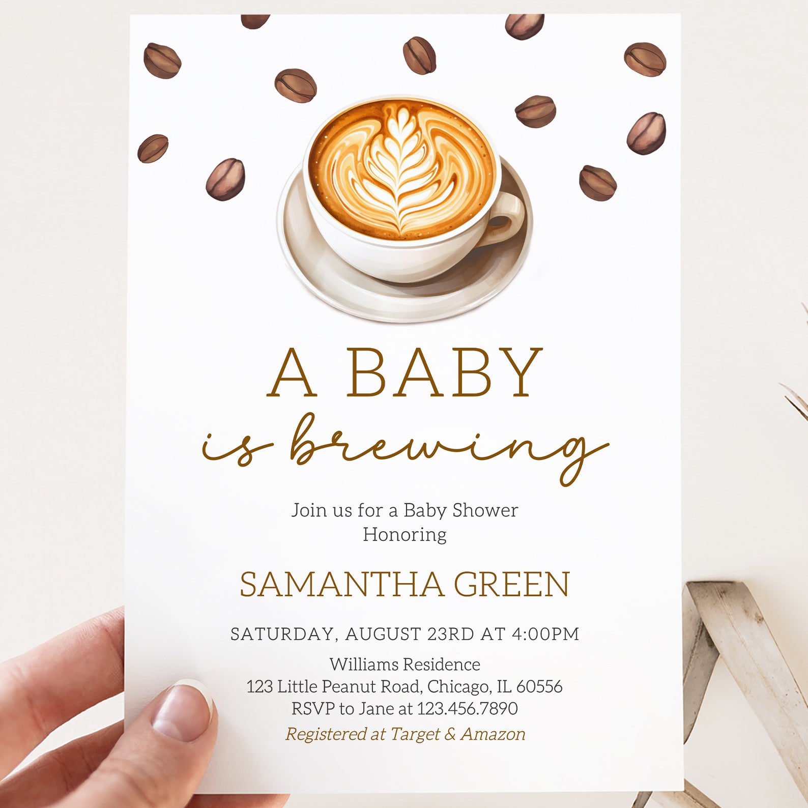 - Purchase this A Baby Is Brewing: Minimalist Coffee-Themed Baby Shower Invite template