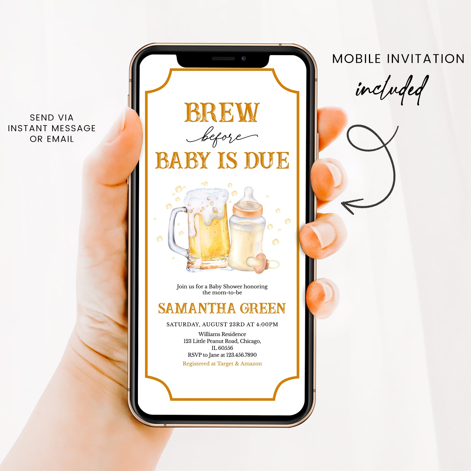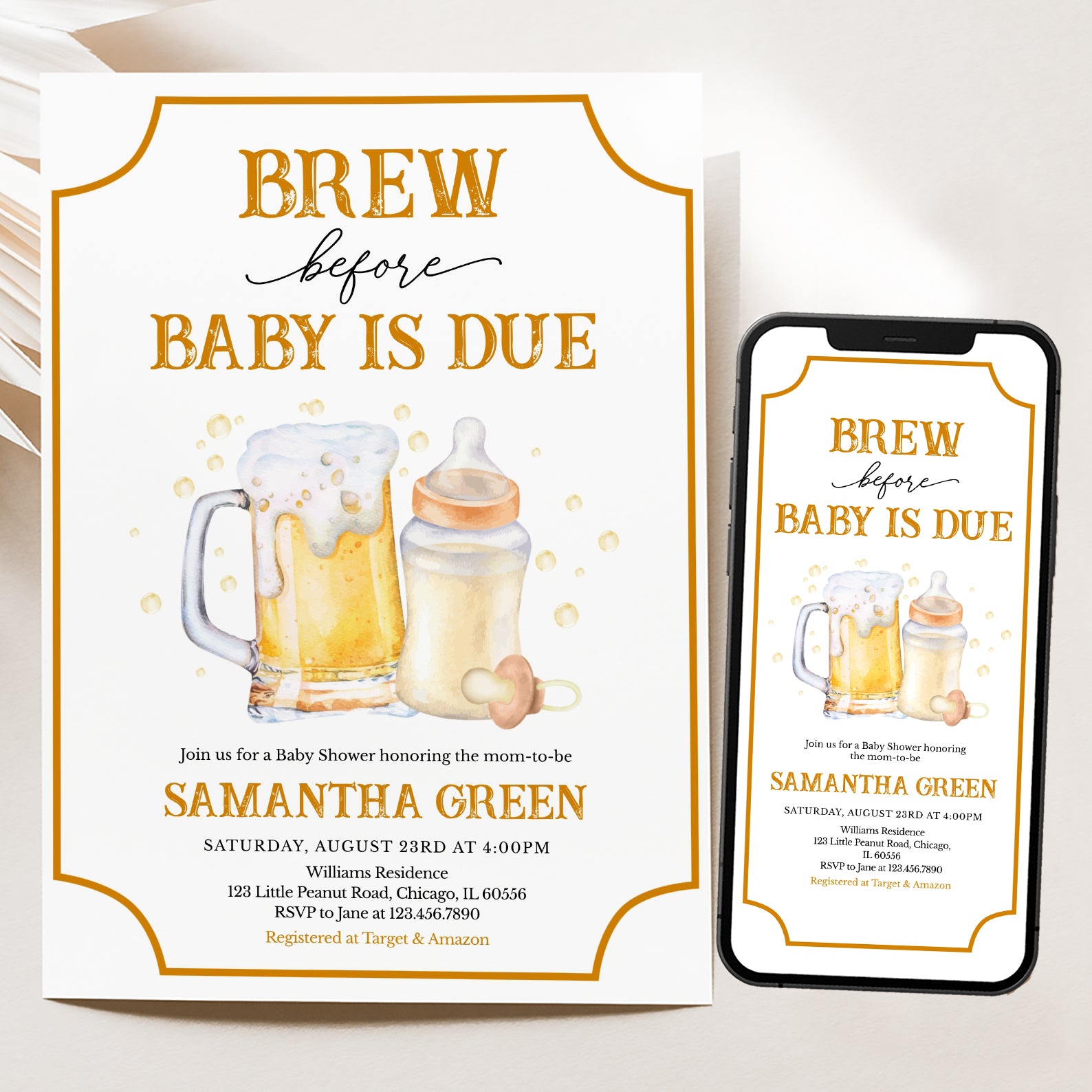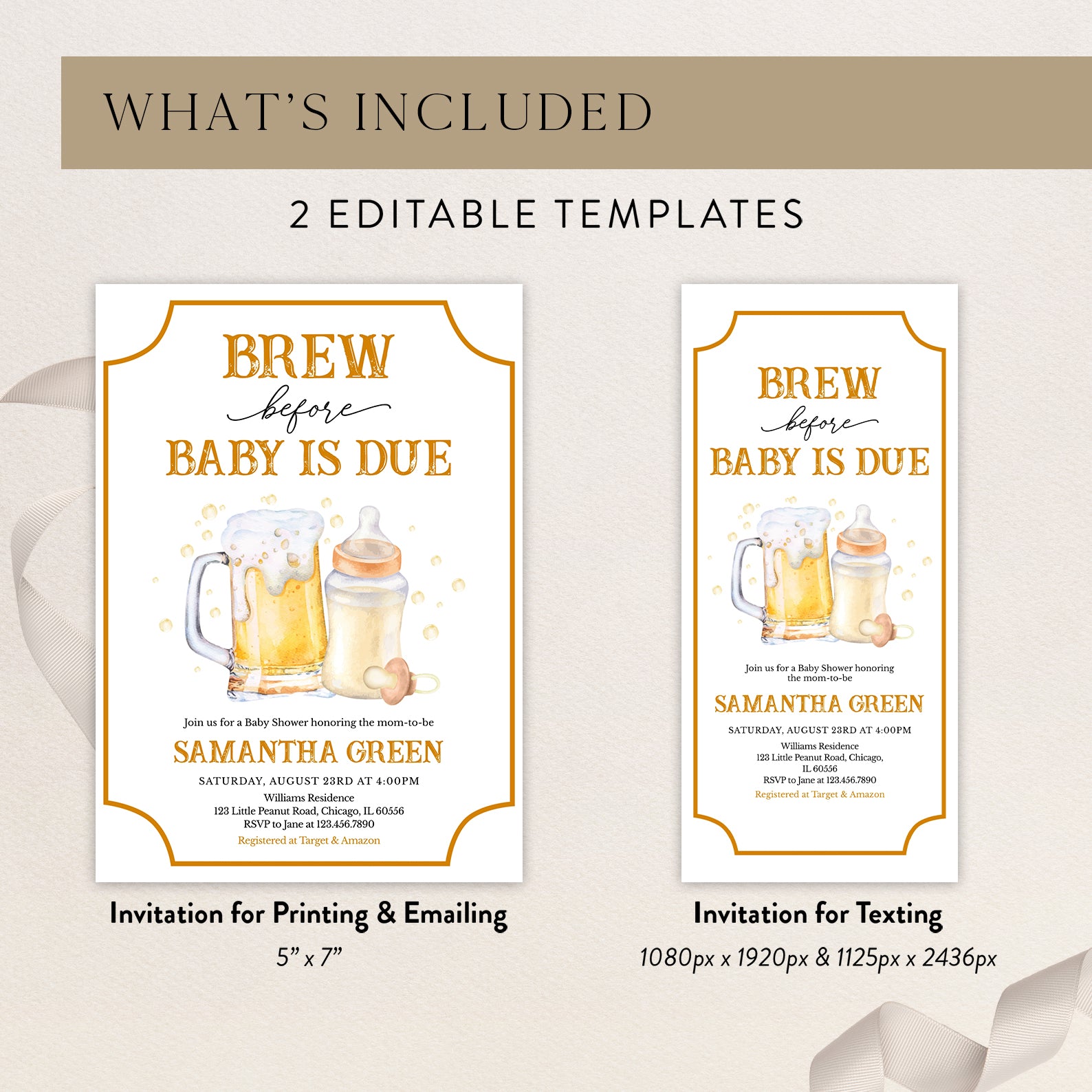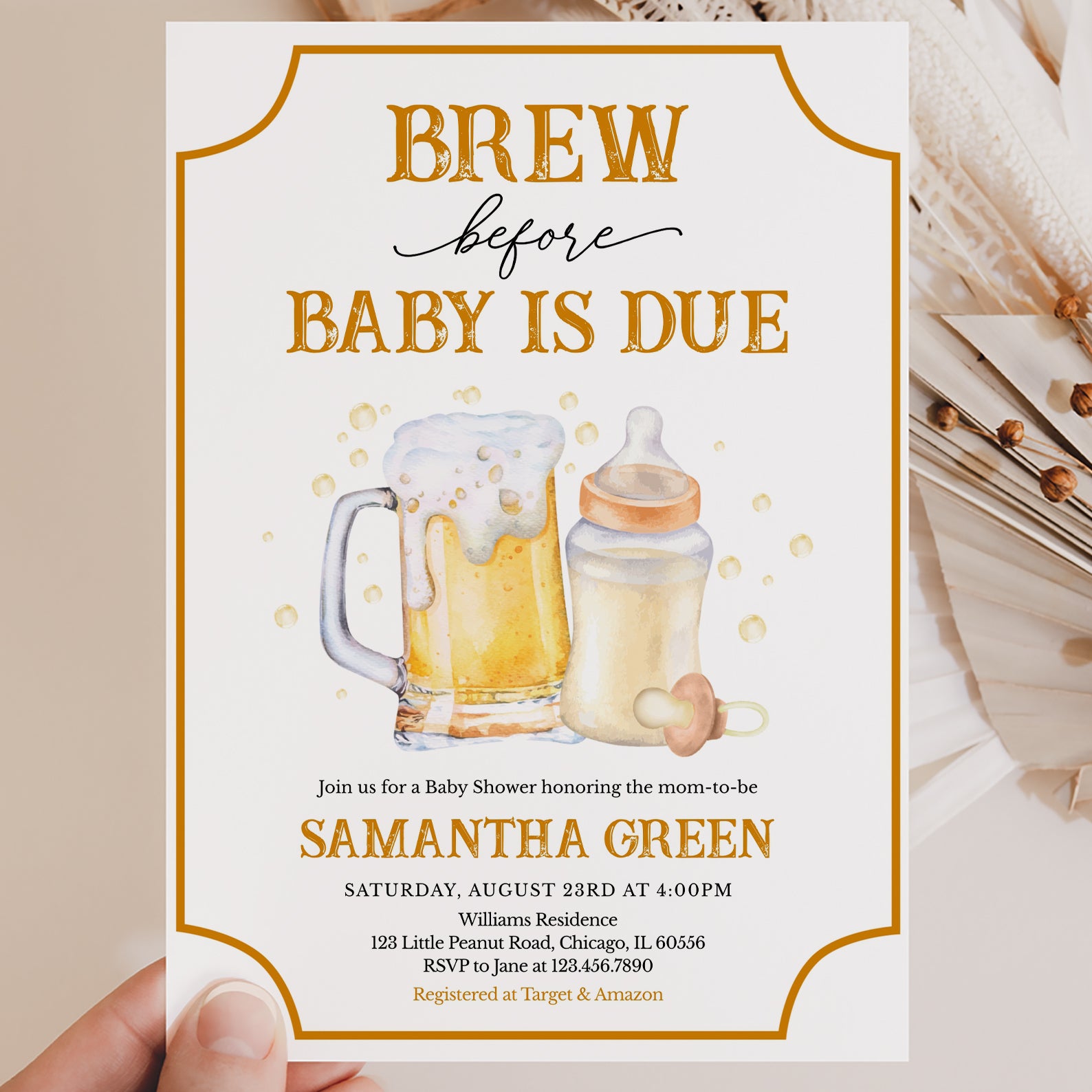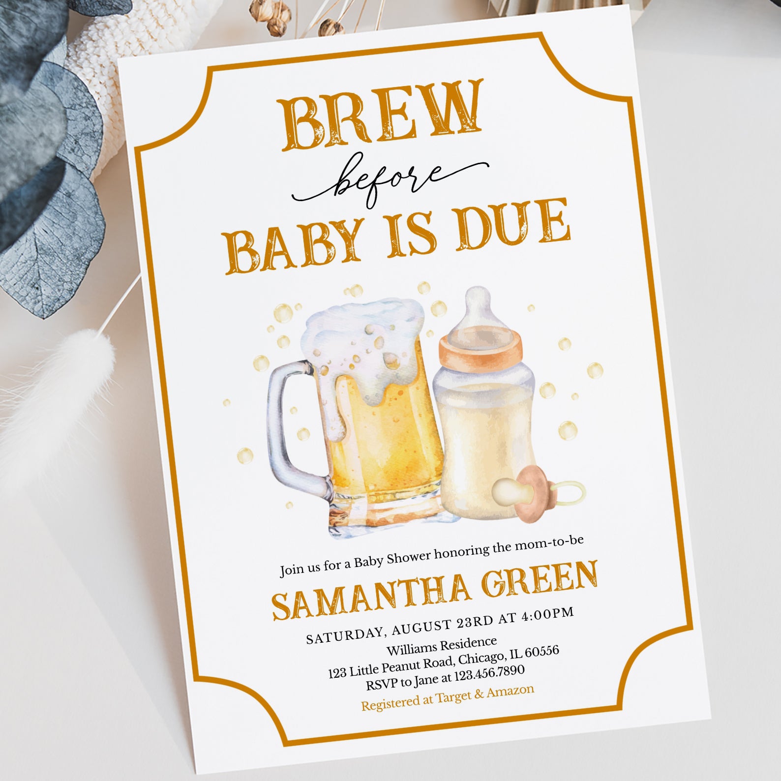 - Purchase this Beer Themed Baby Shower Invite: Brew Before Baby Is Due template