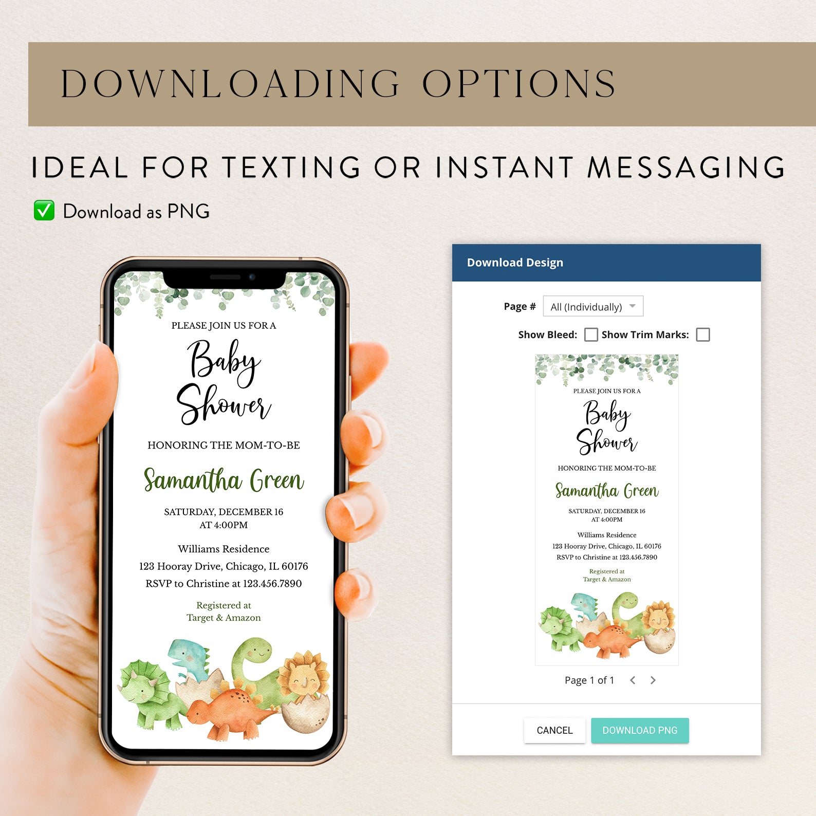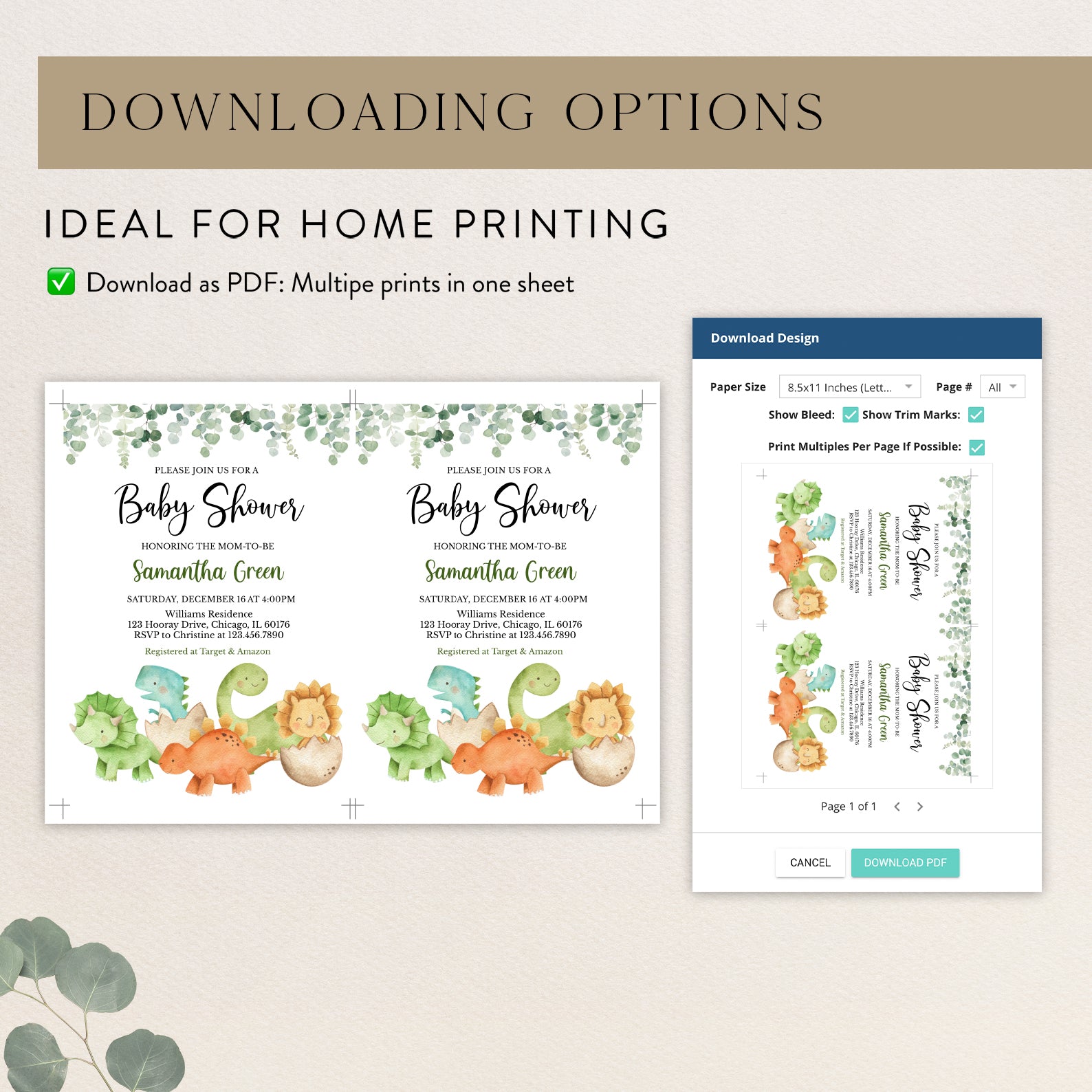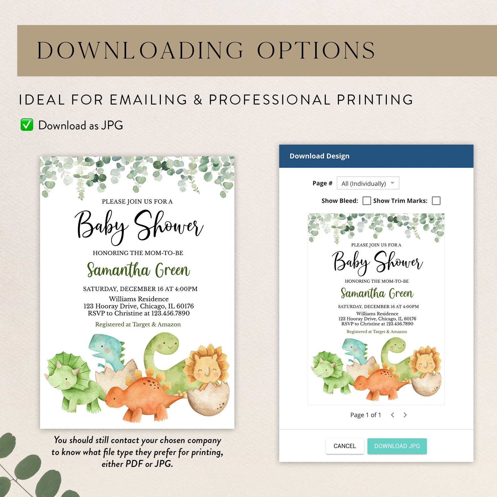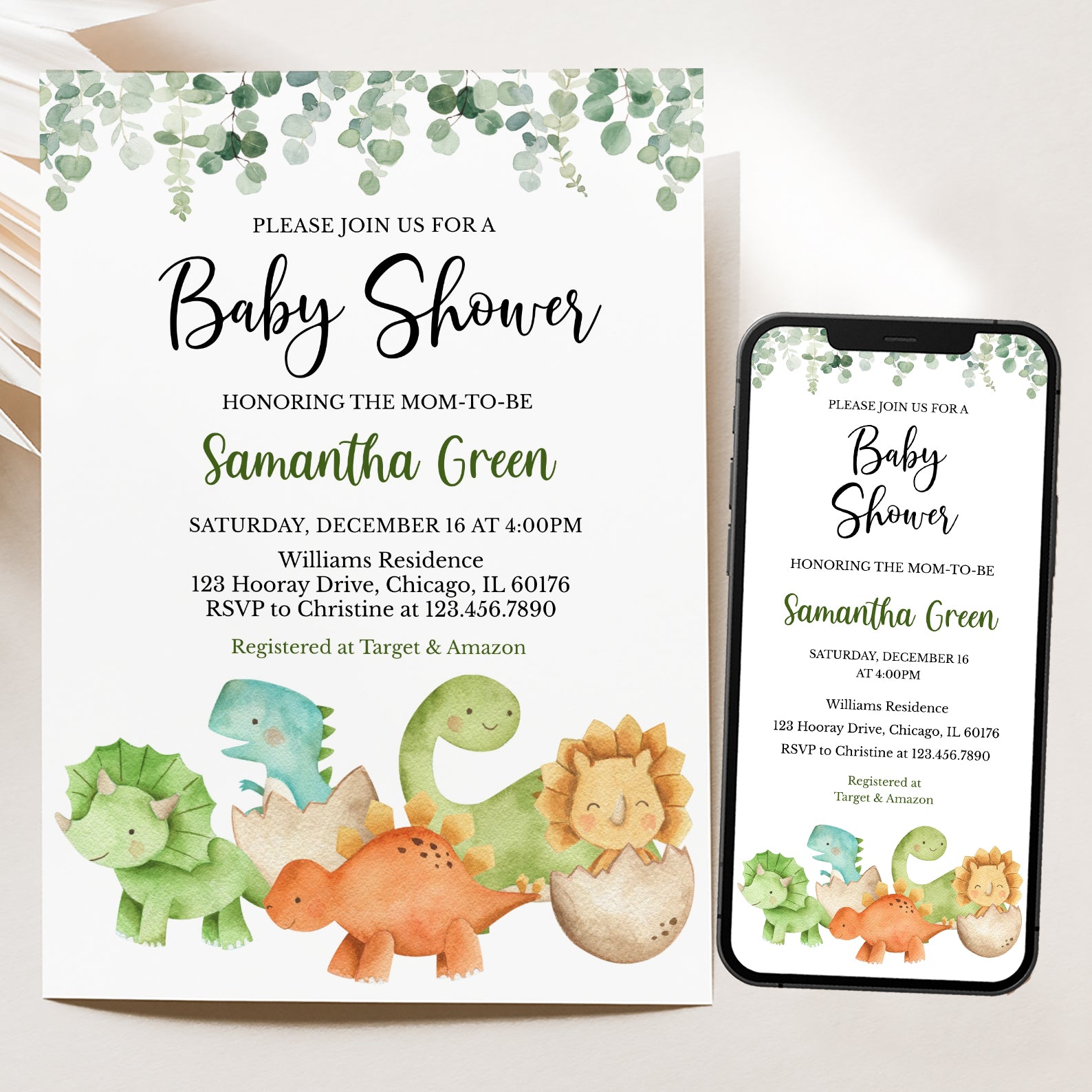 - Purchase this Dinosaur Baby Shower Invitation with Greenery & Cute Dinos template