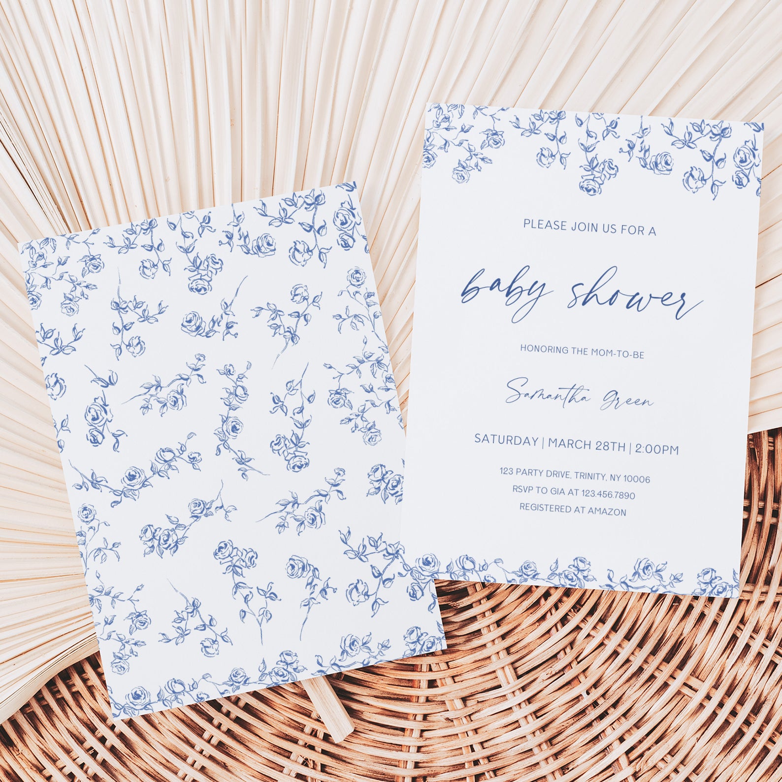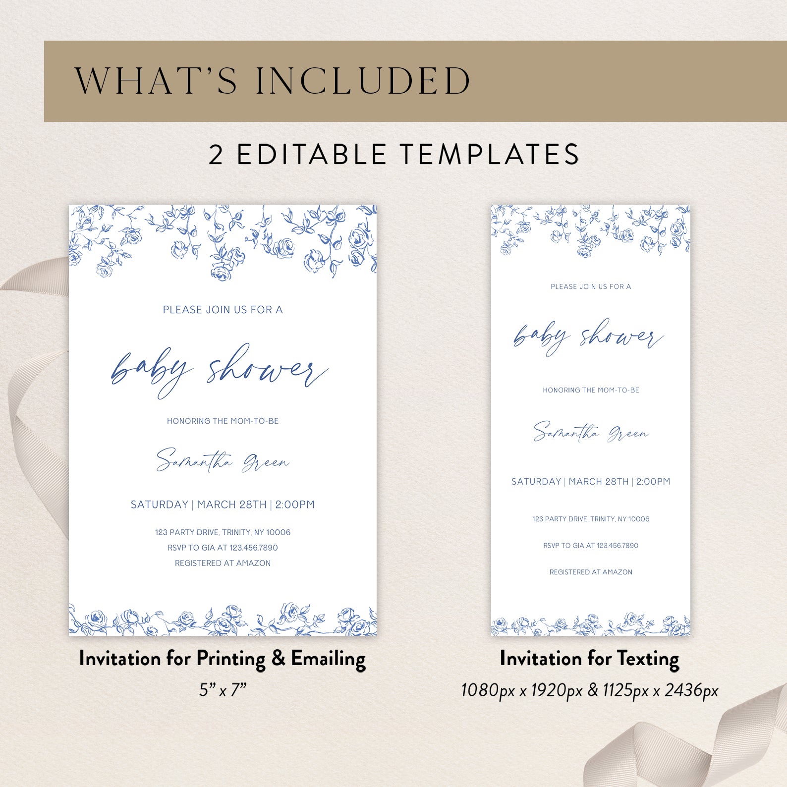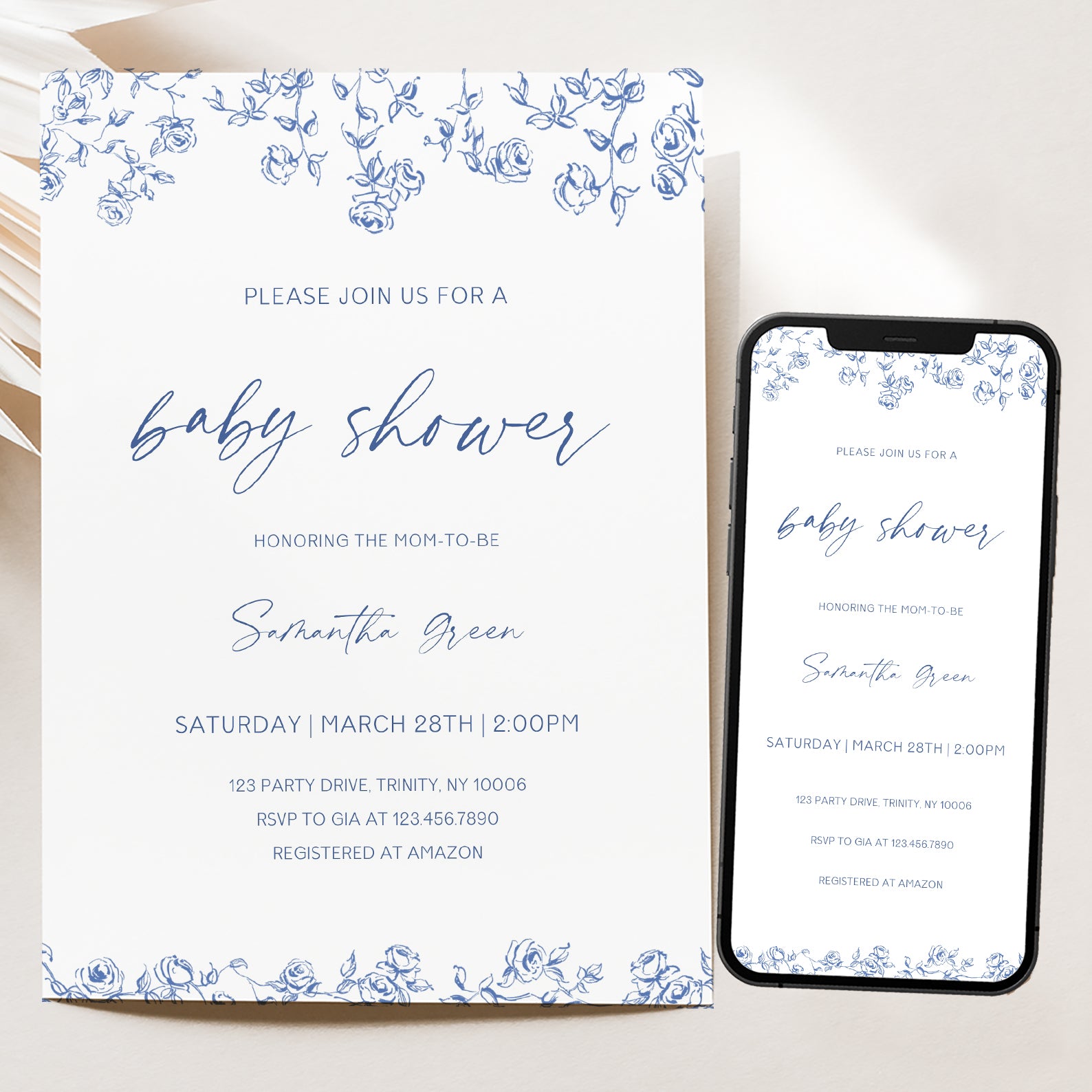 - Purchase this Elegant Blue Floral Baby Shower Digital Invitation template