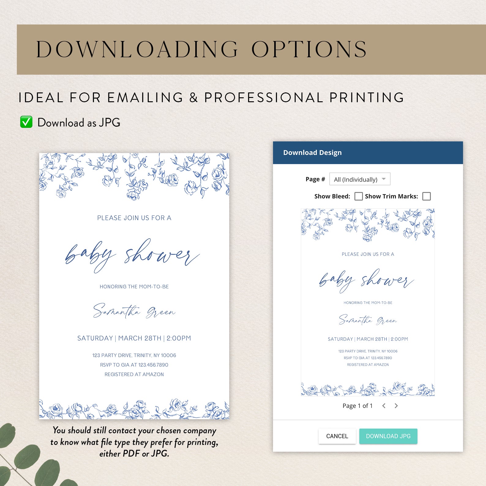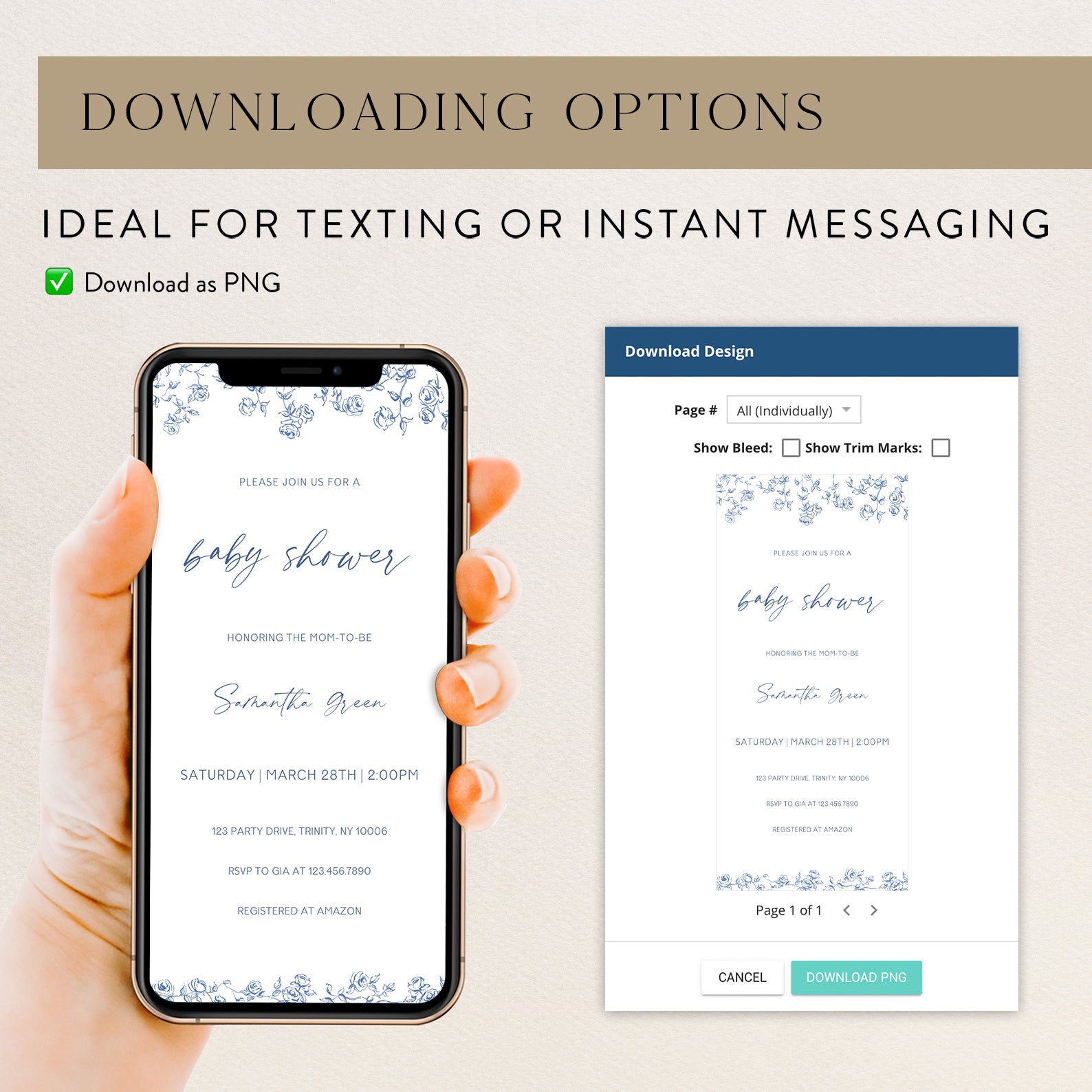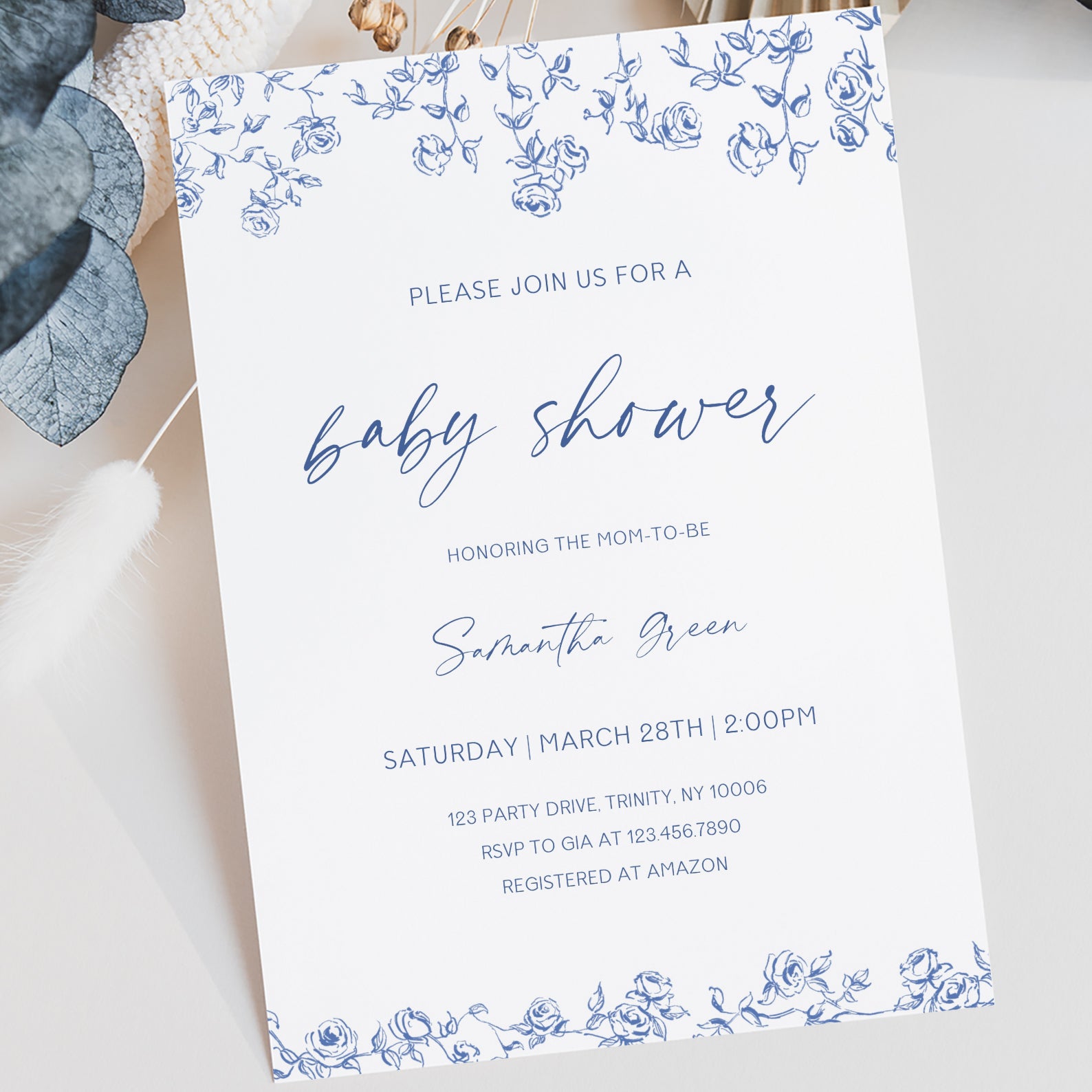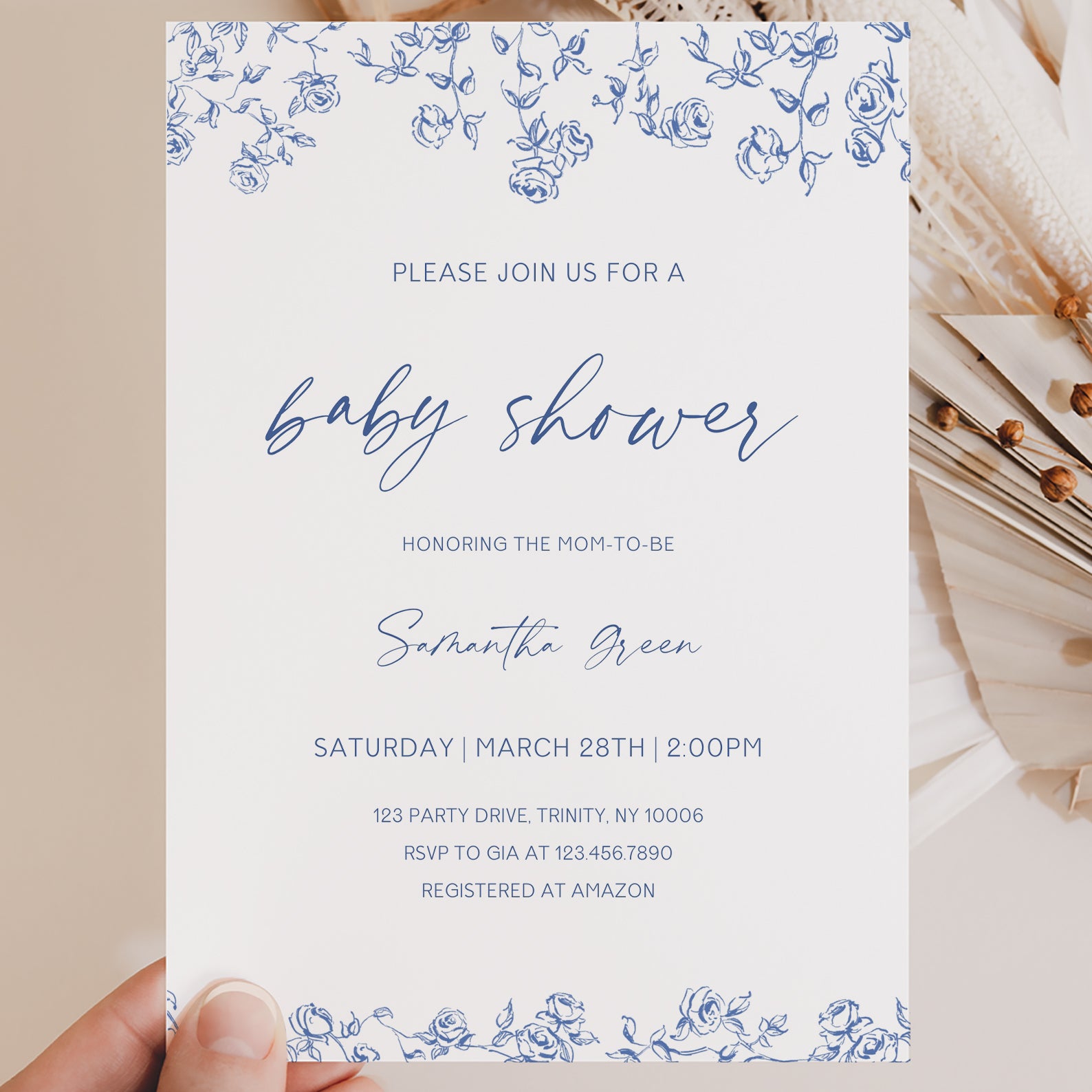- Purchase this Elegant Blue Floral Baby Shower Digital Invitation template