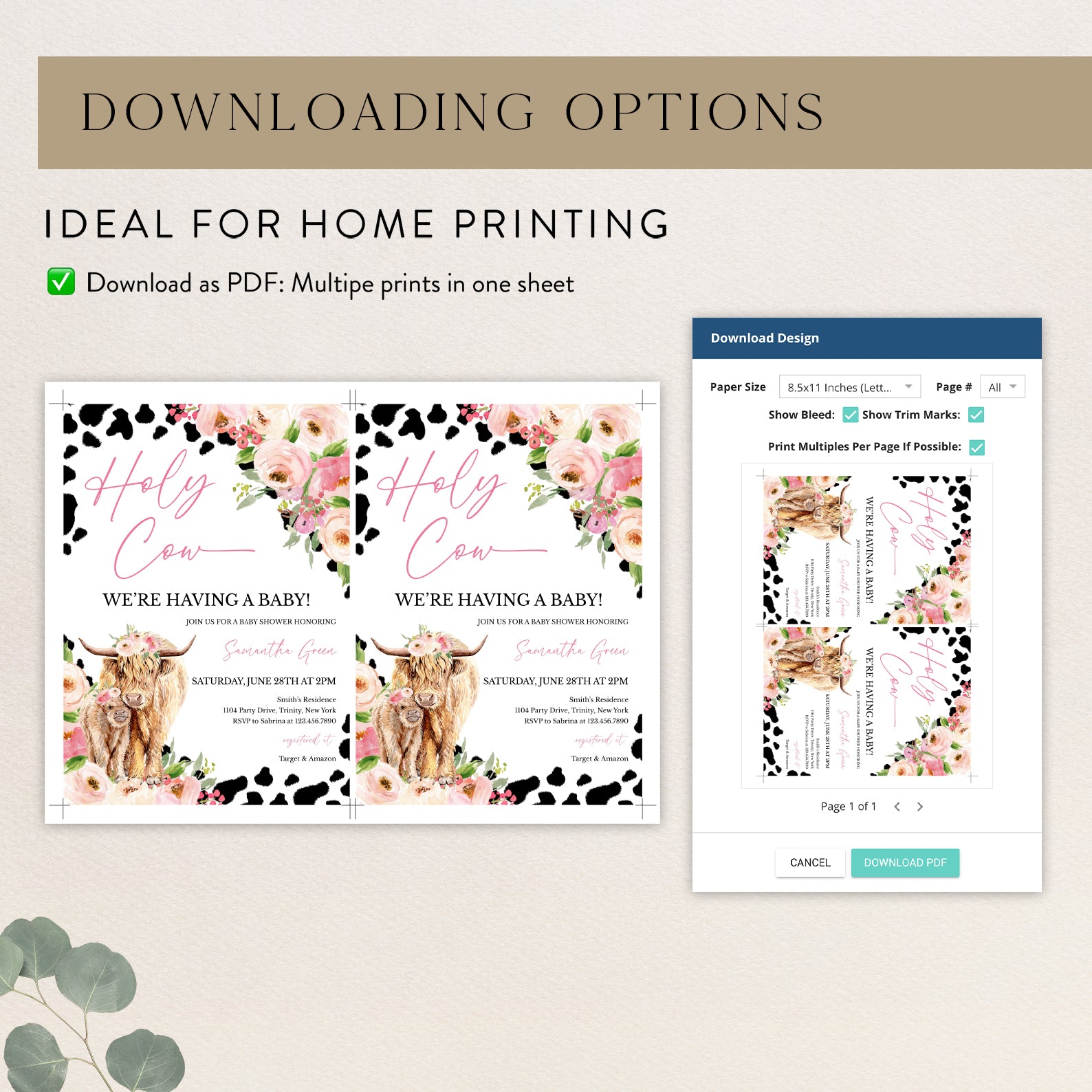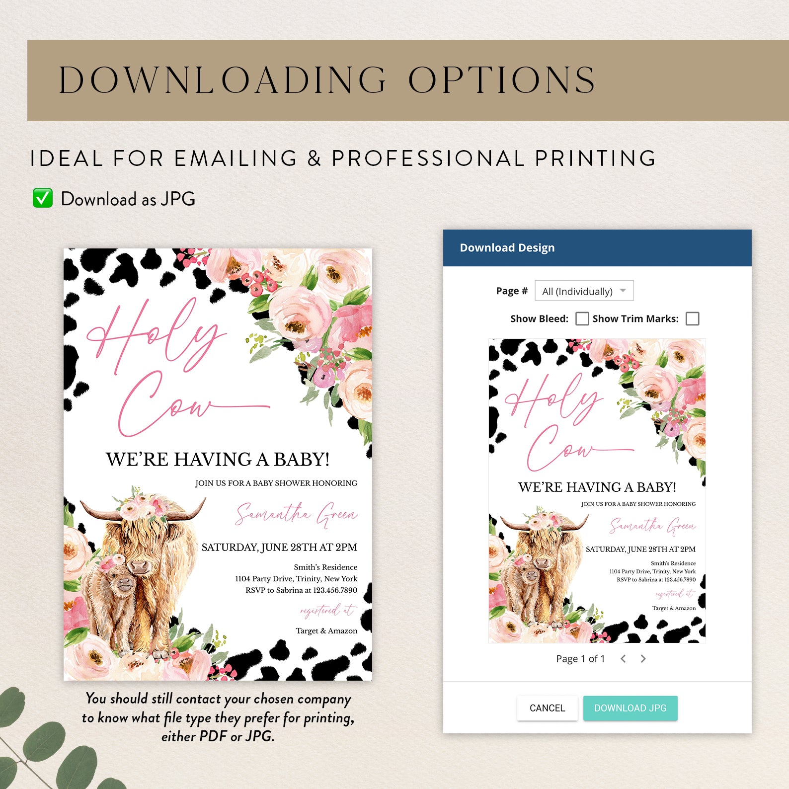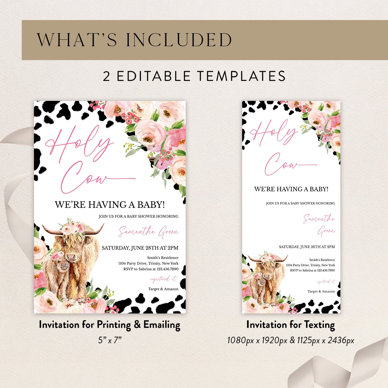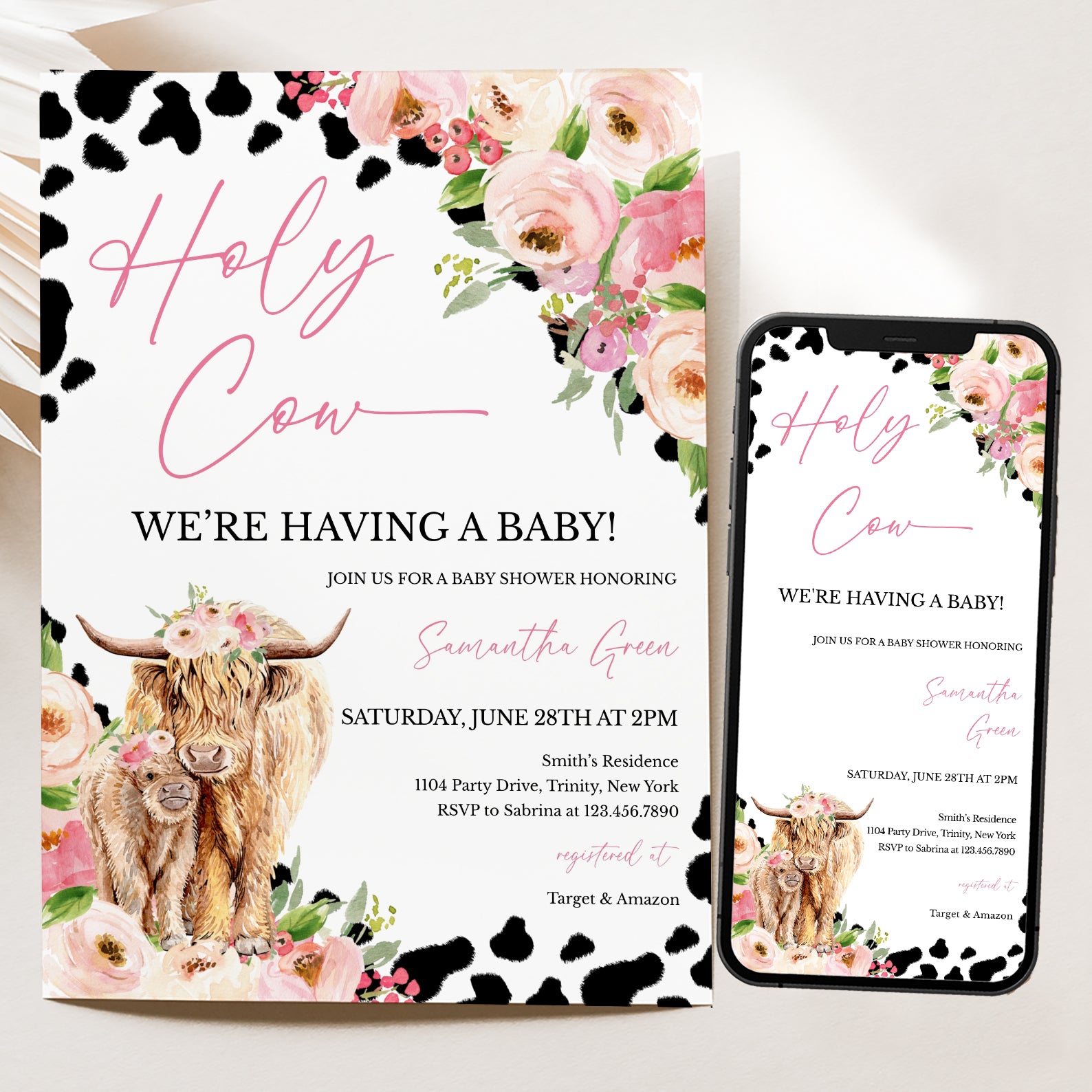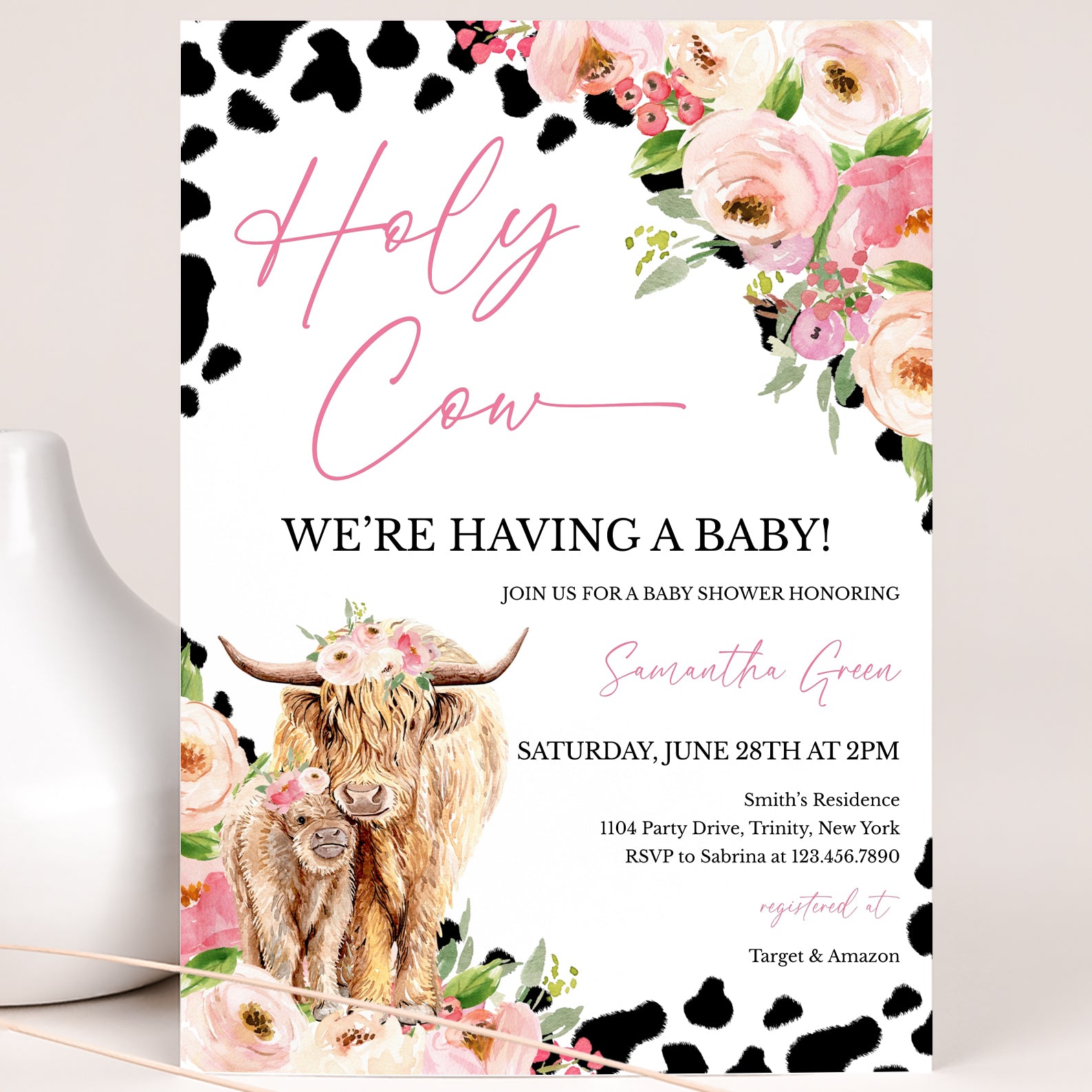 - Purchase this Holy Cow Baby Shower Invite: Pink Floral Cow Design template