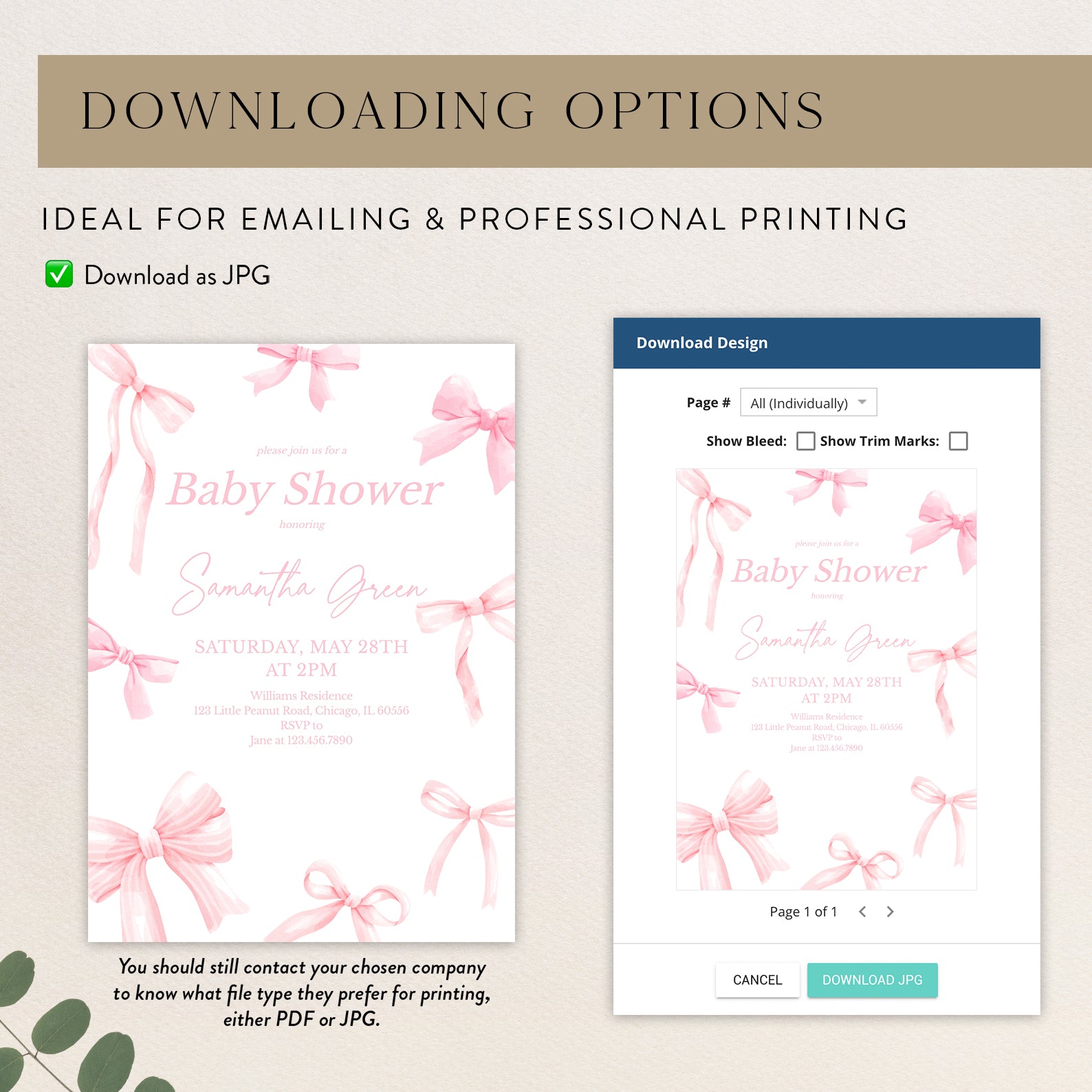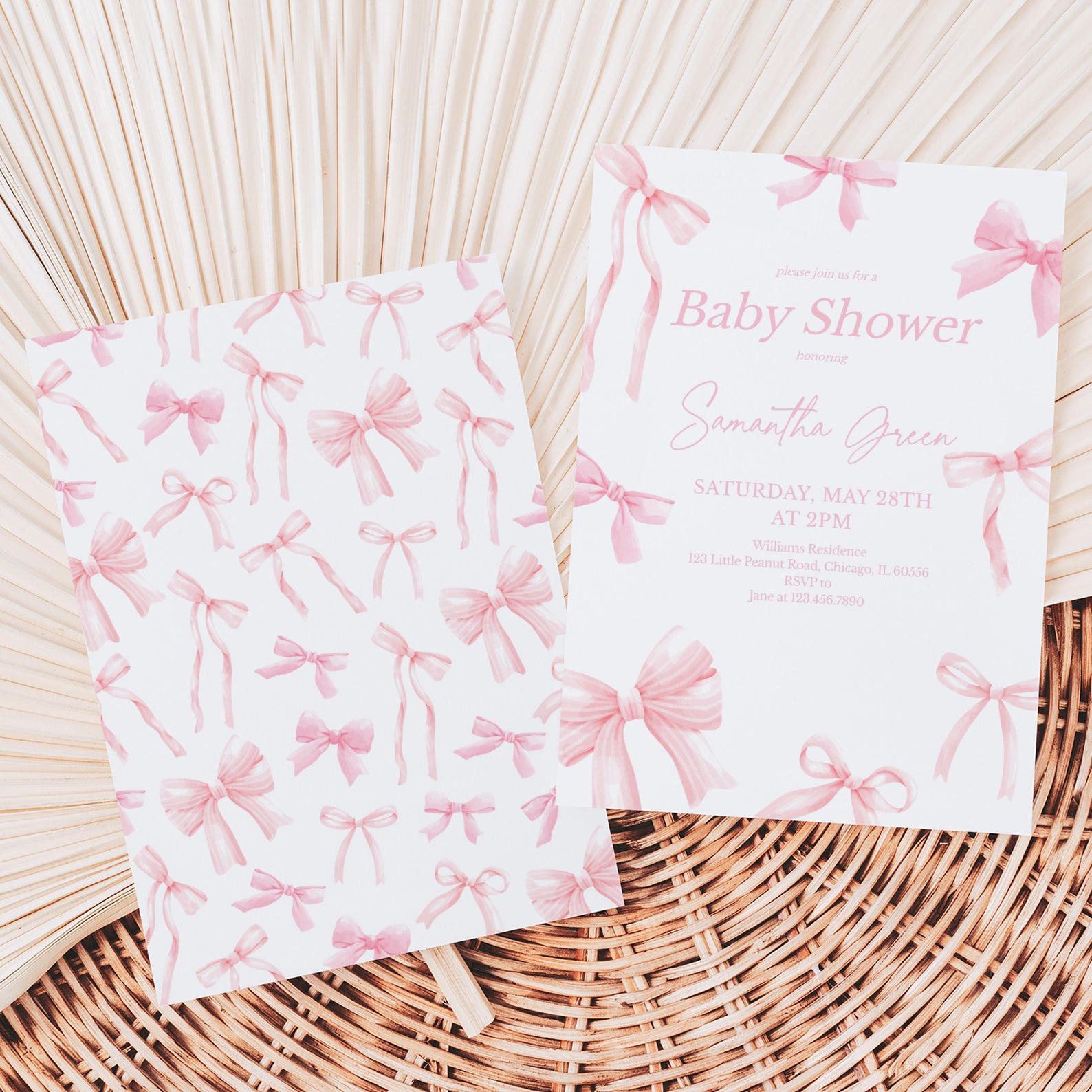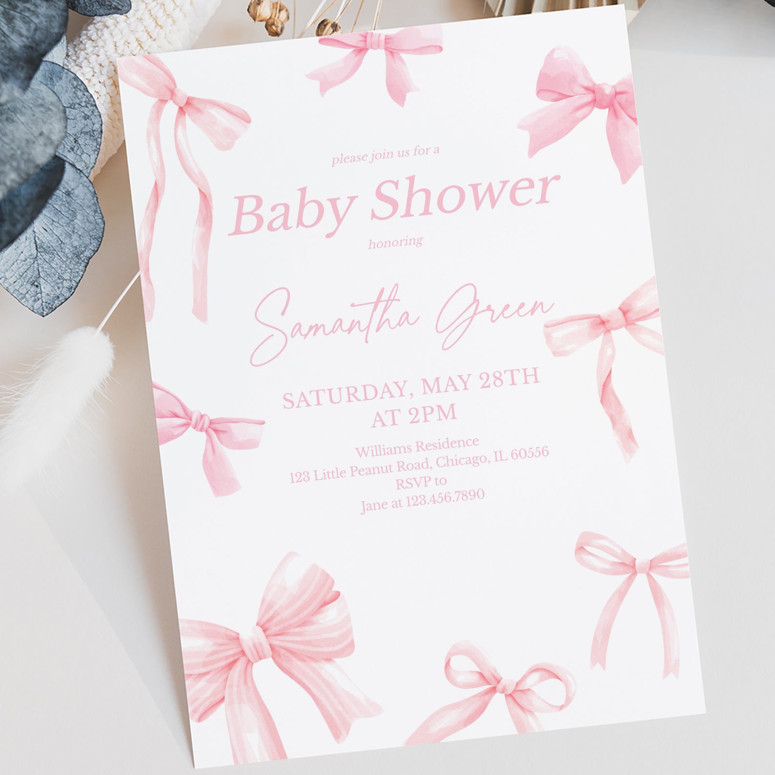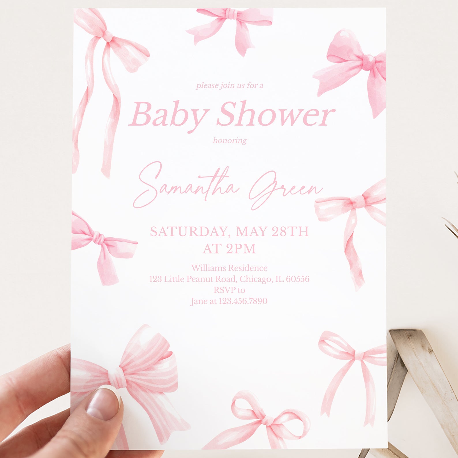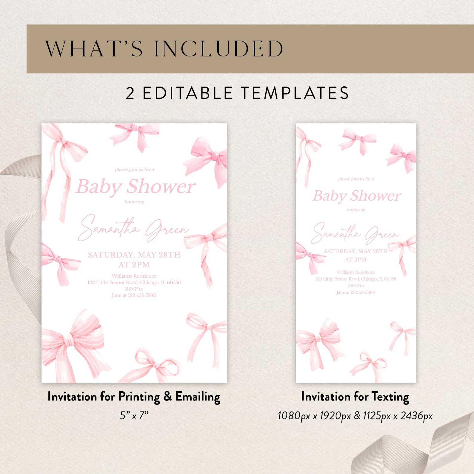 - Purchase this Pink-Themed Baby Shower Digital Invitation with Ribbons template
