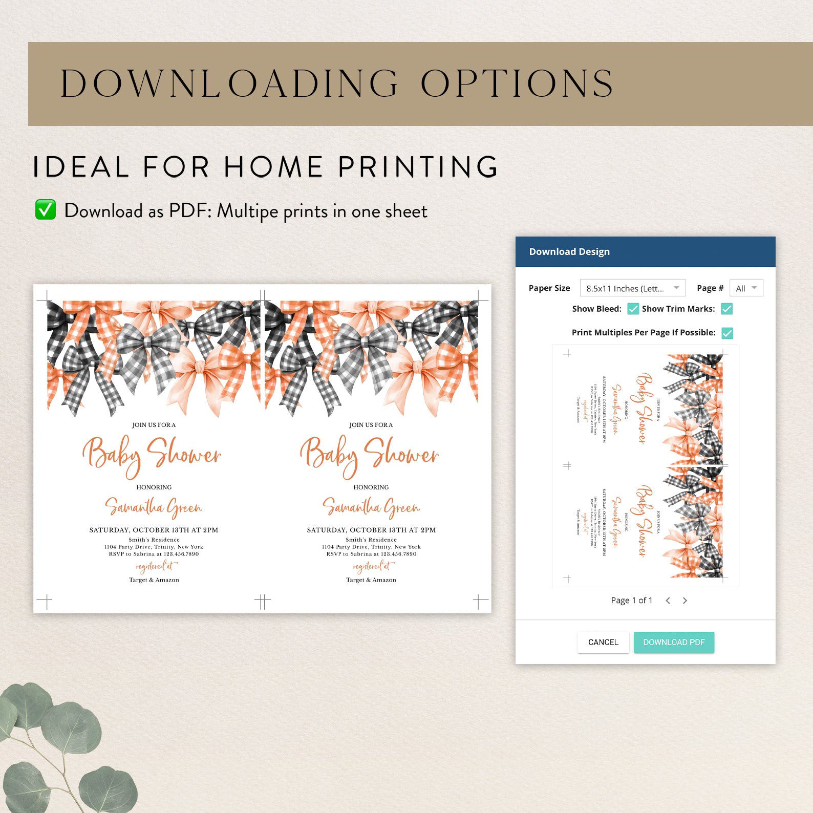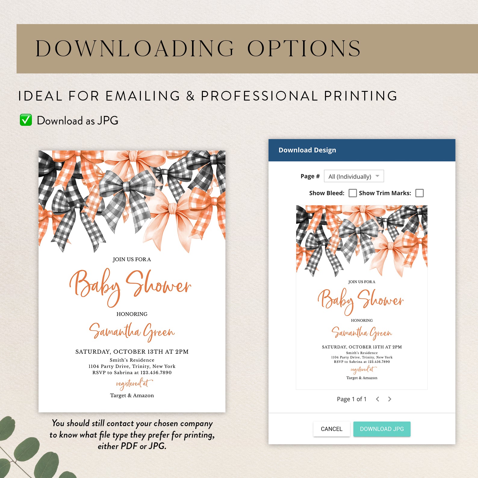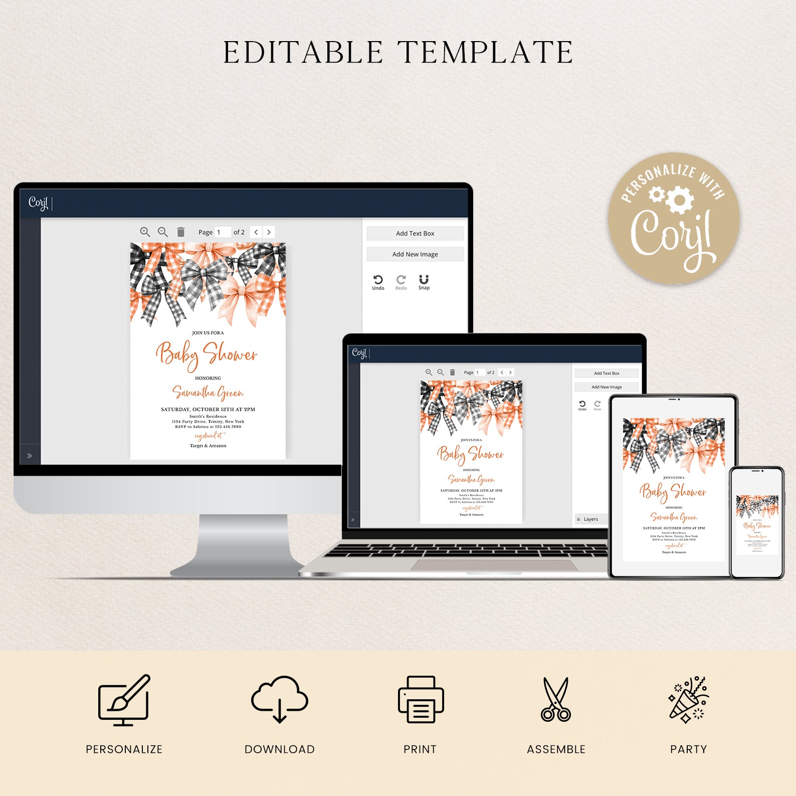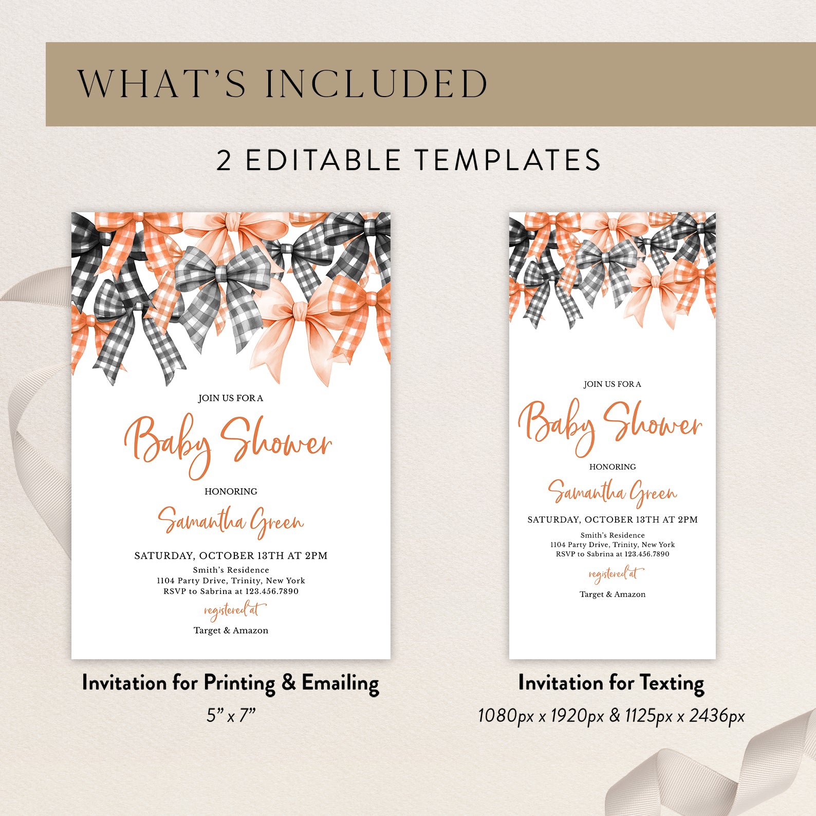 - Purchase this Plaid Ribbon Baby Shower Invite: Orange & Black Theme template