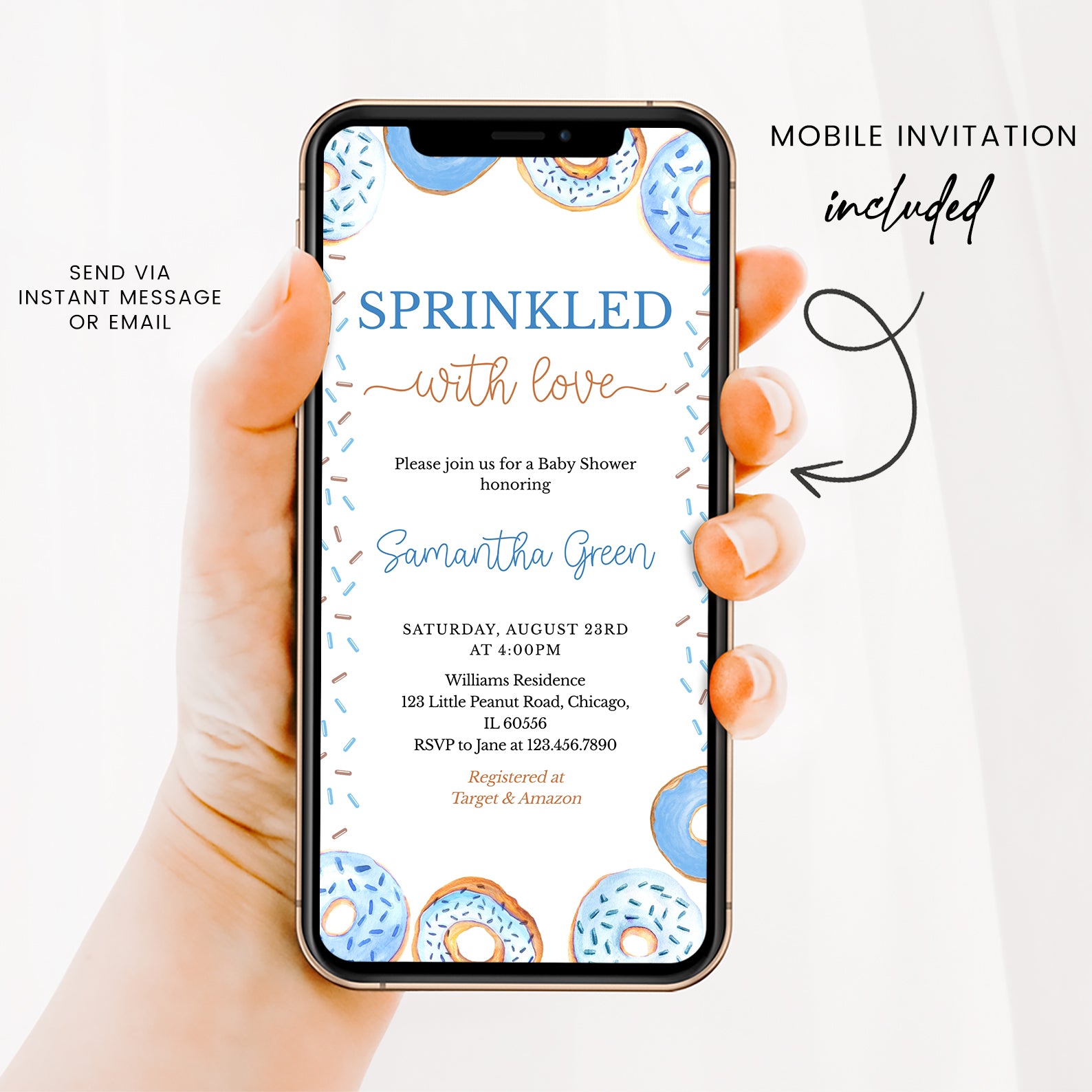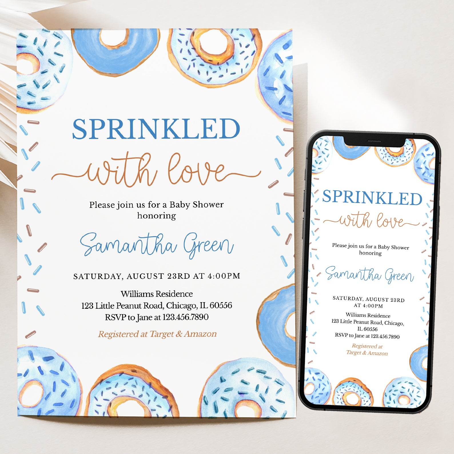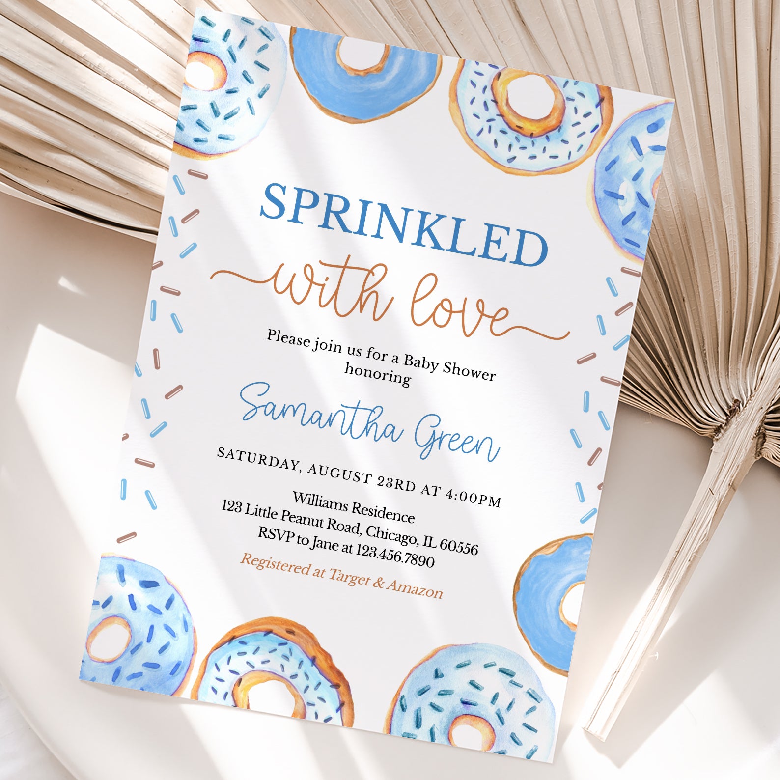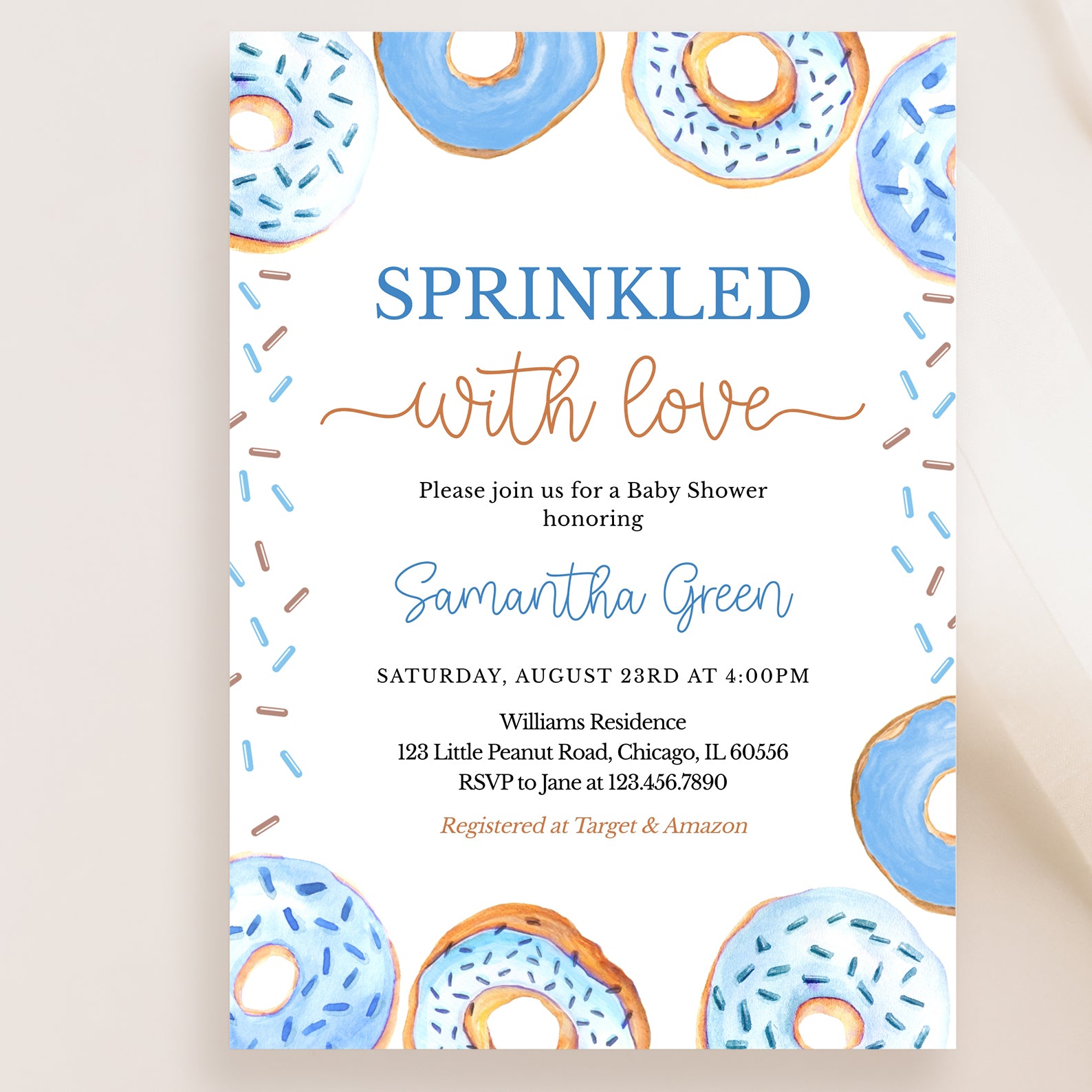 - Purchase this Sprinkled with Love Blue Baby Shower Digital Invitation template