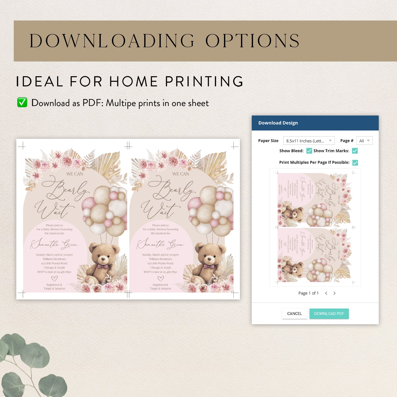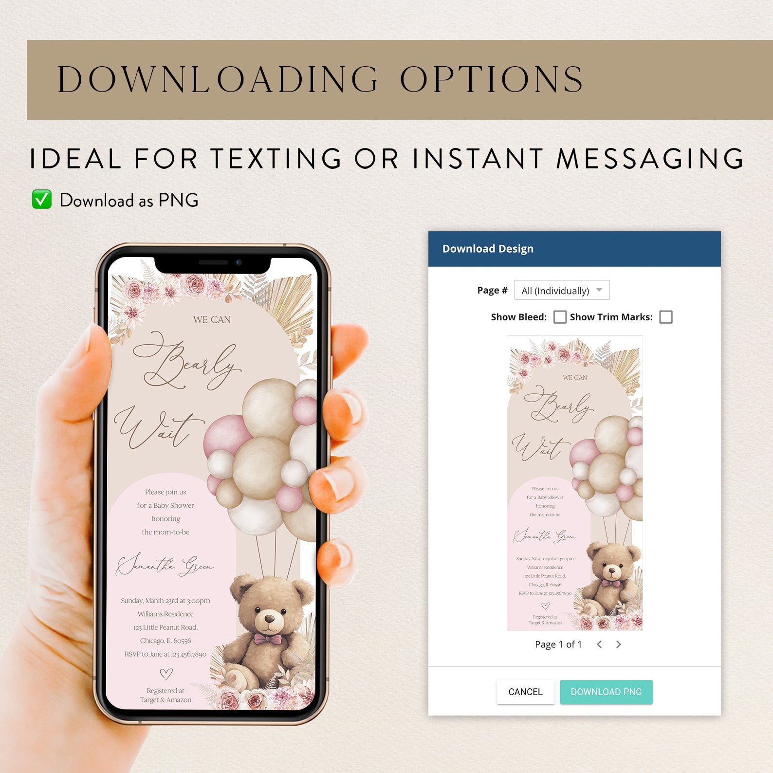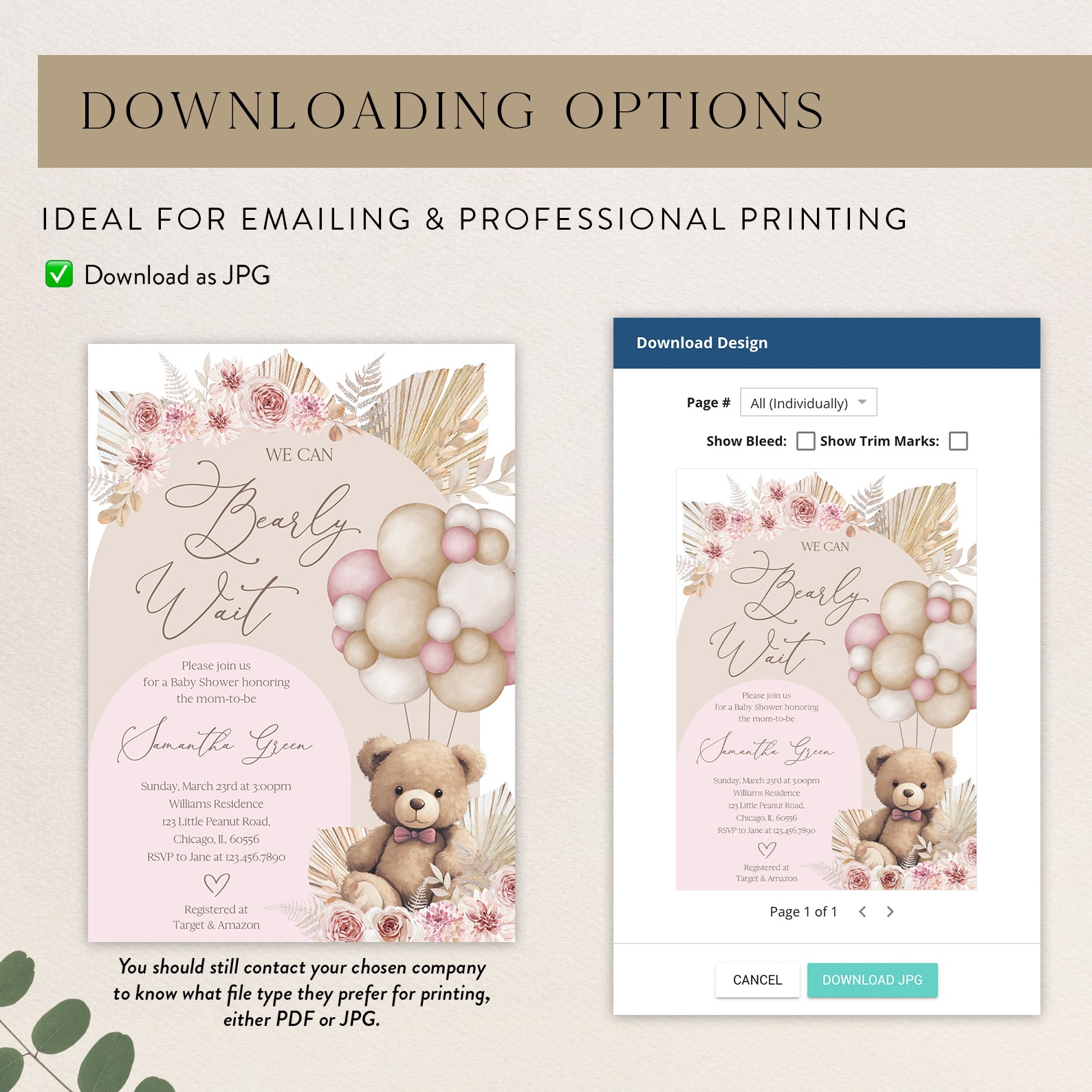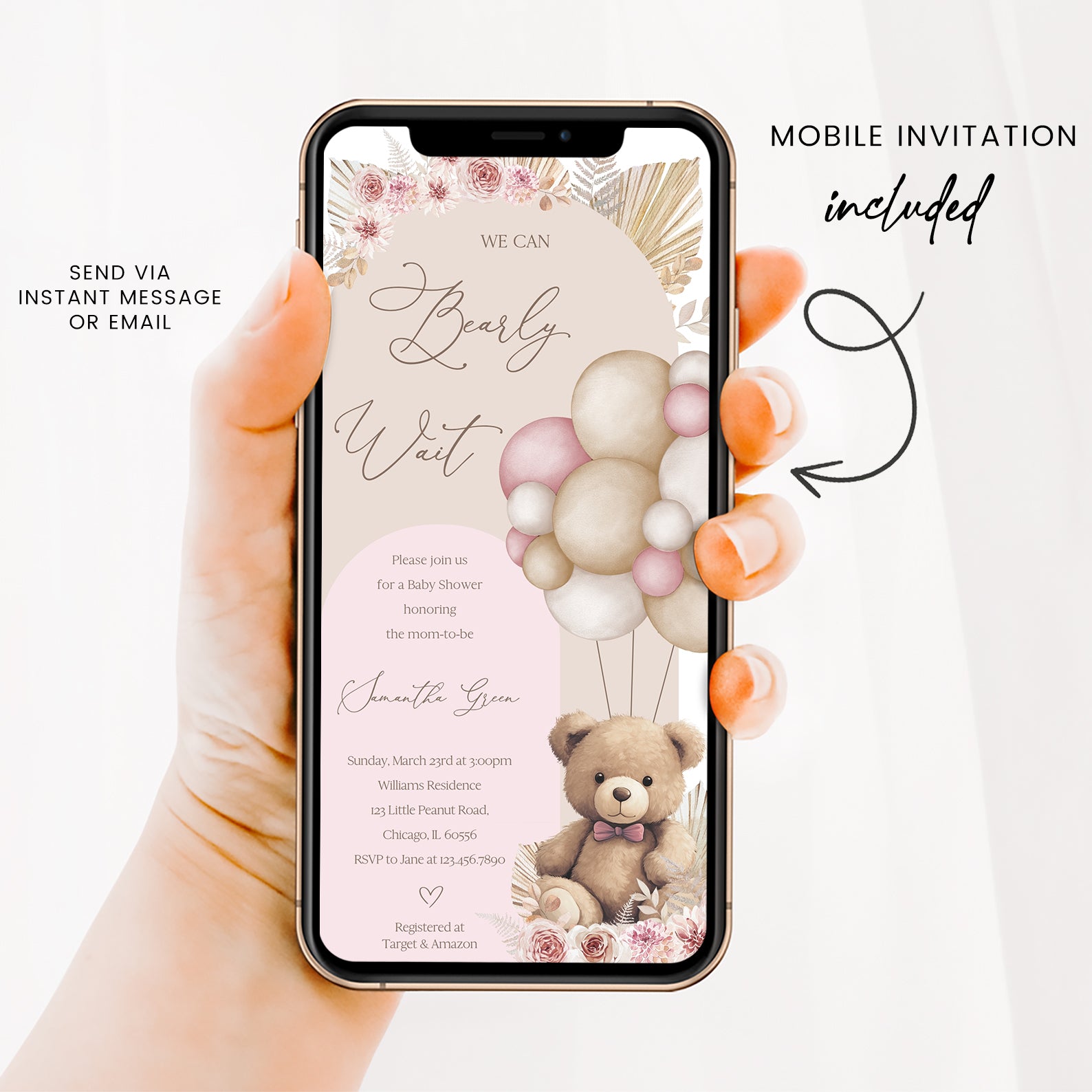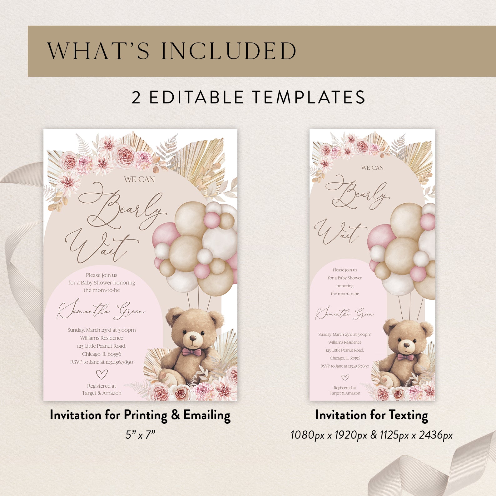 - Purchase this We Can Bearly Wait Teddy Bear Baby Shower Invite, Pink Boho template