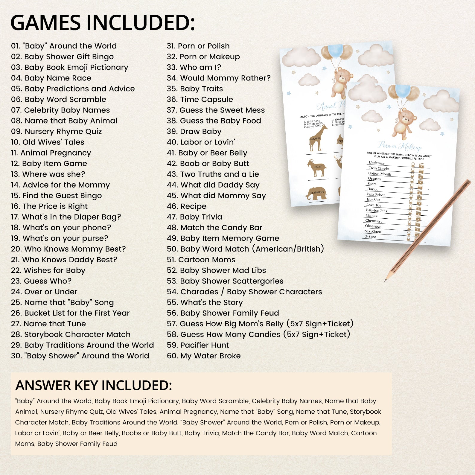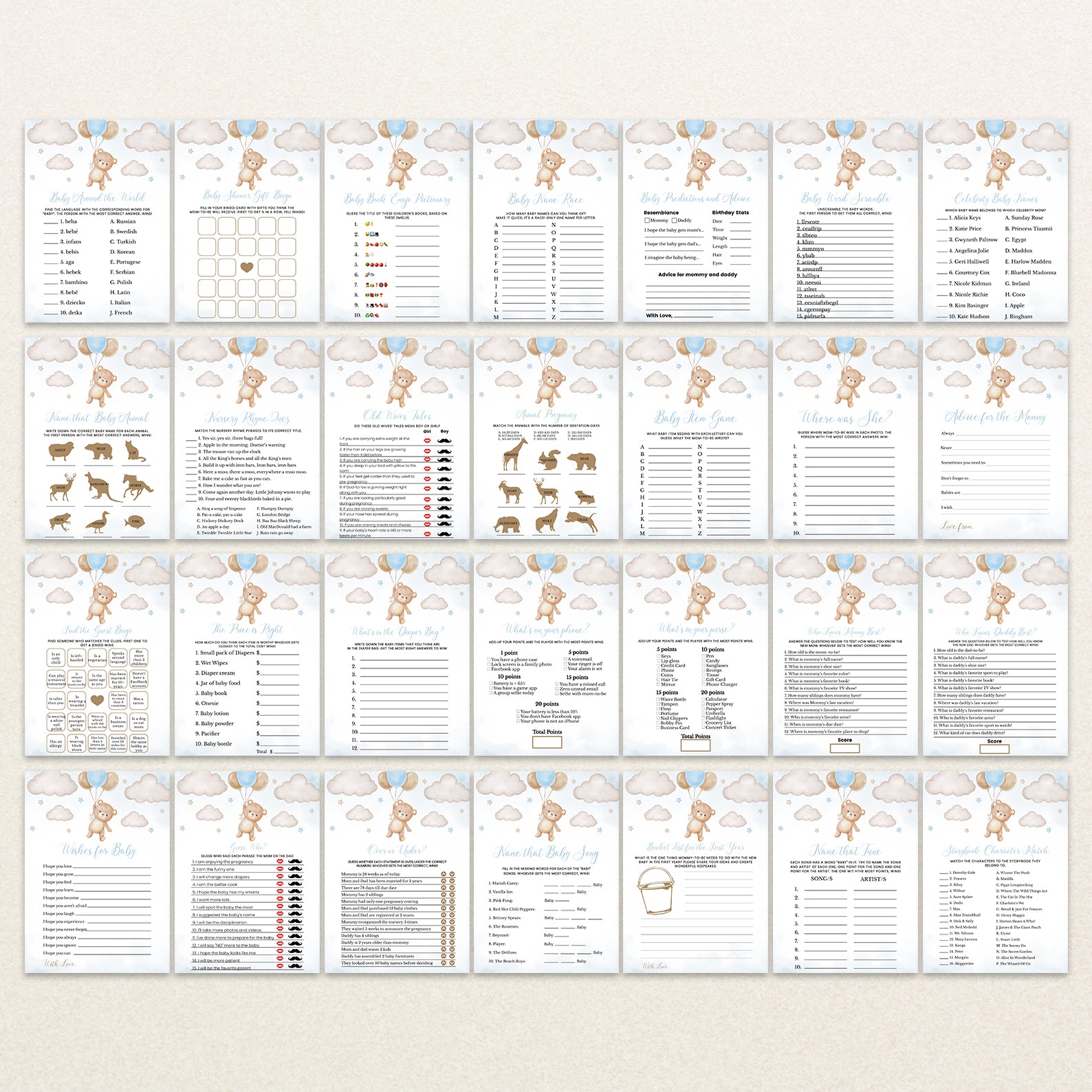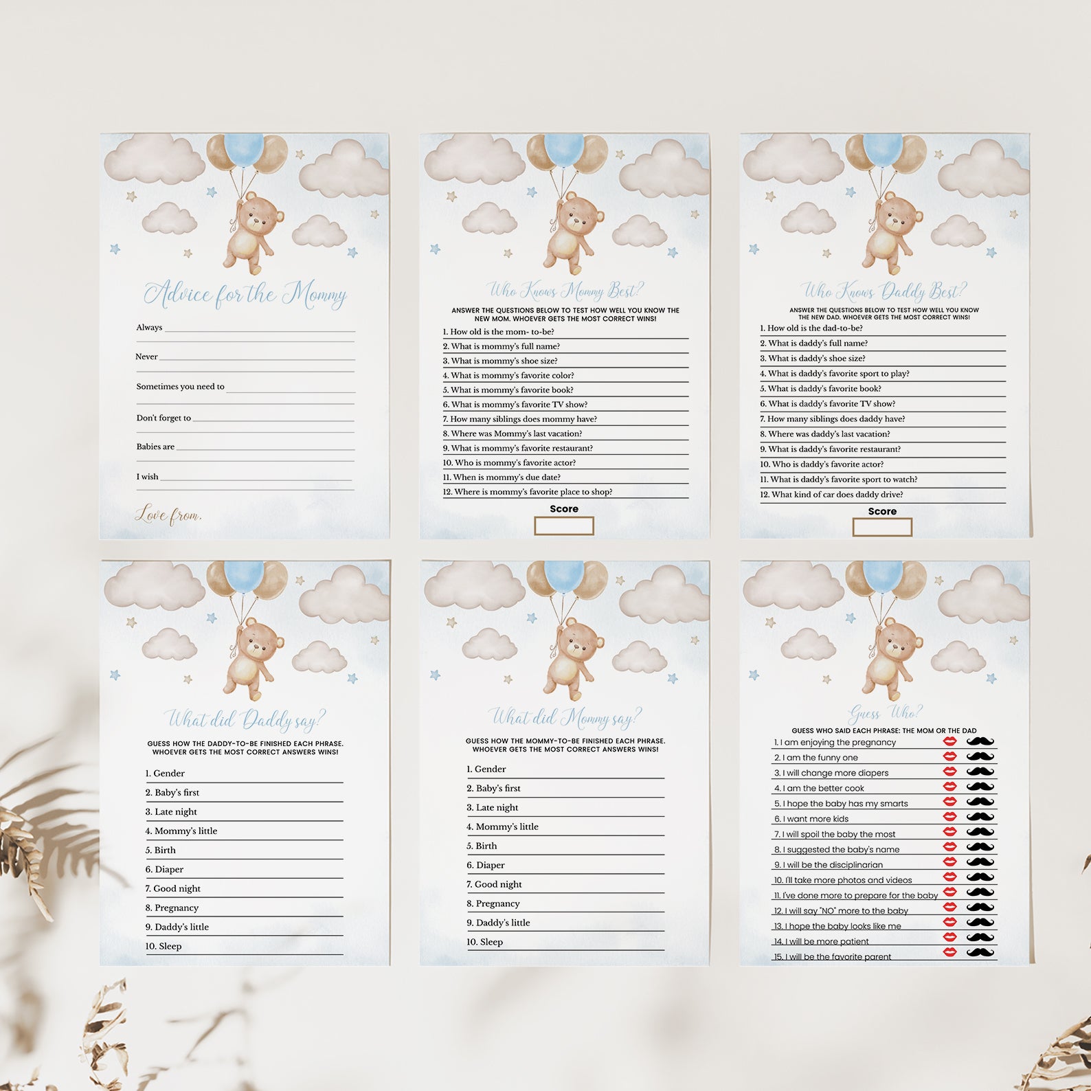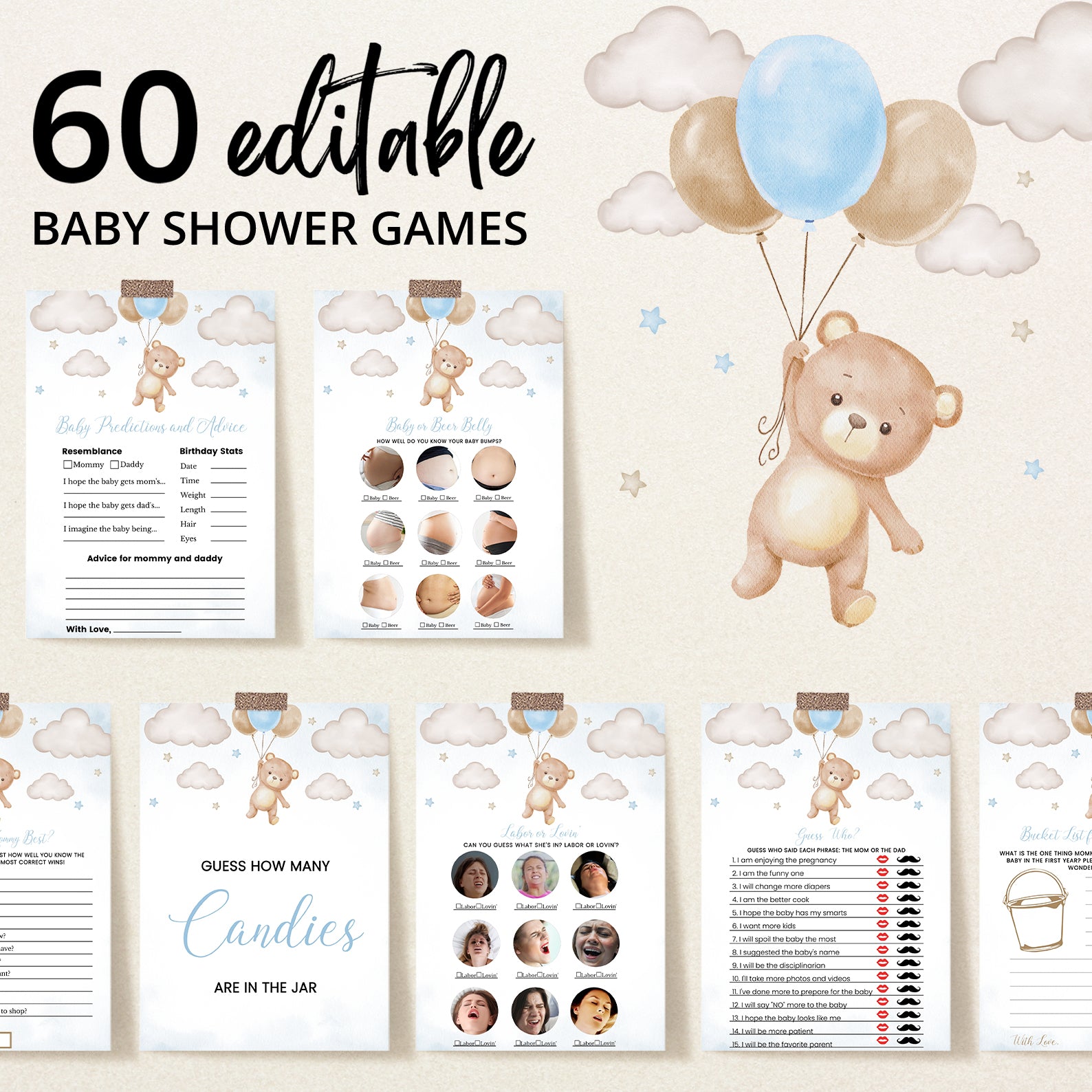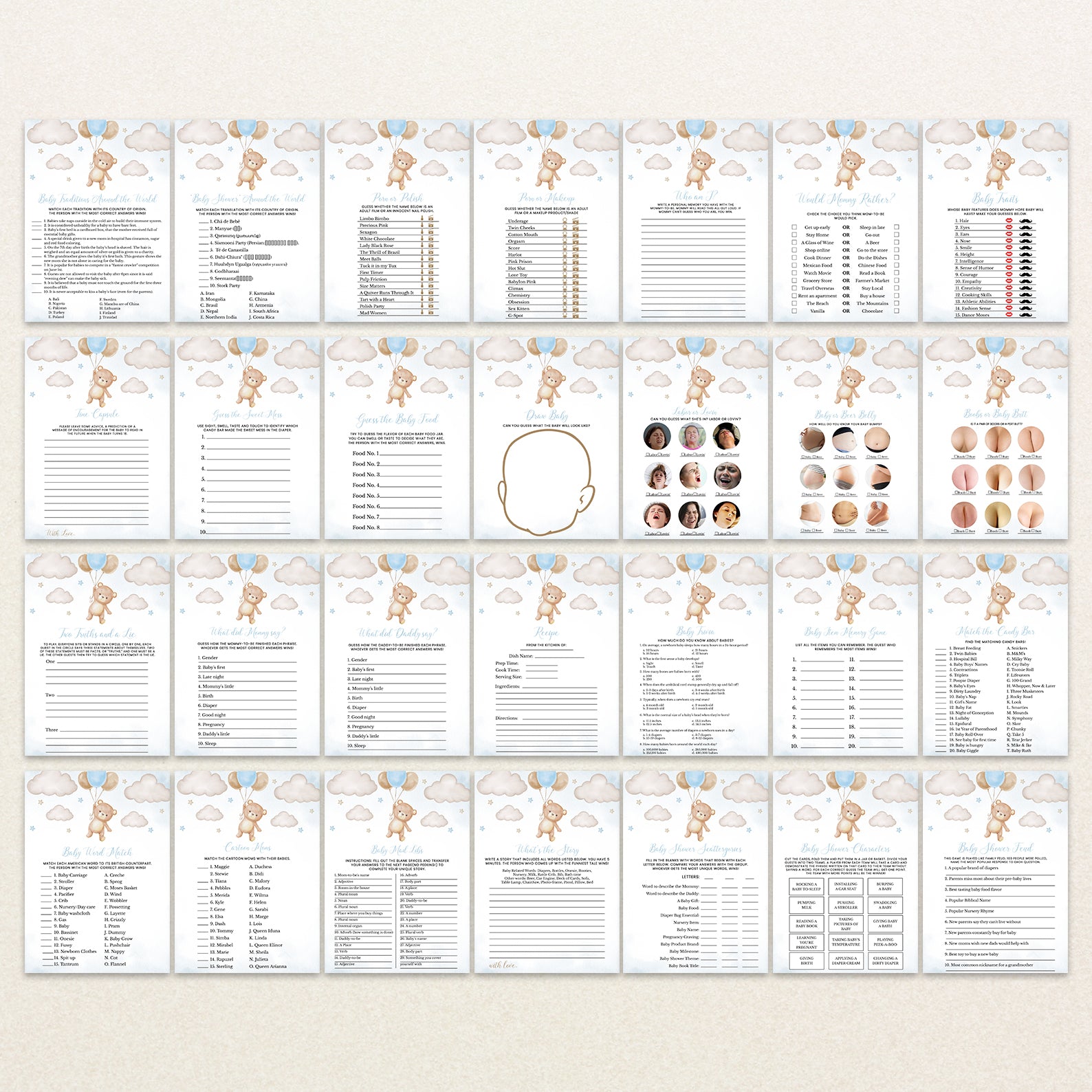 - Purchase this Flying Teddy Bear Blue Baby Shower Game Bundle: We Can Bearly Wait template
