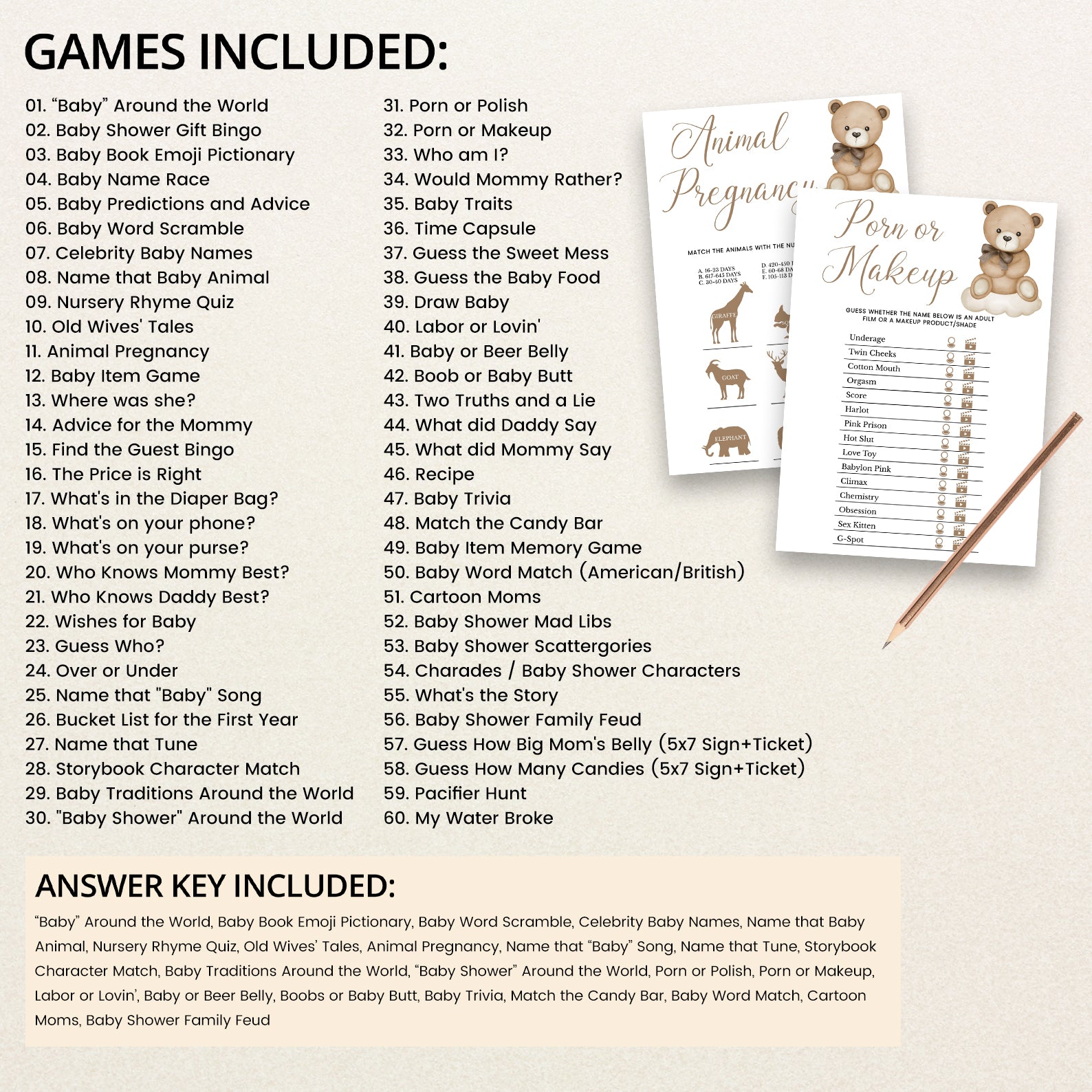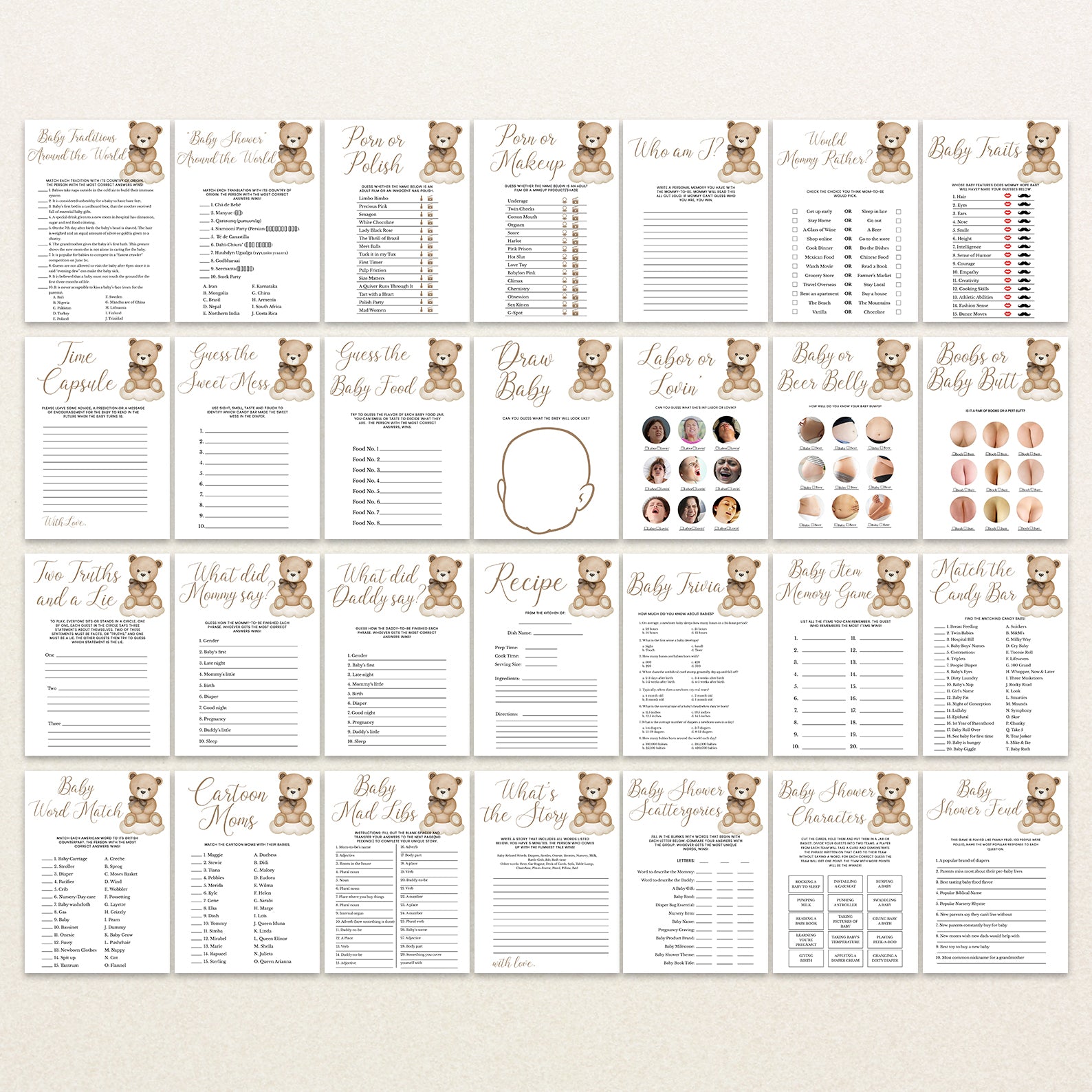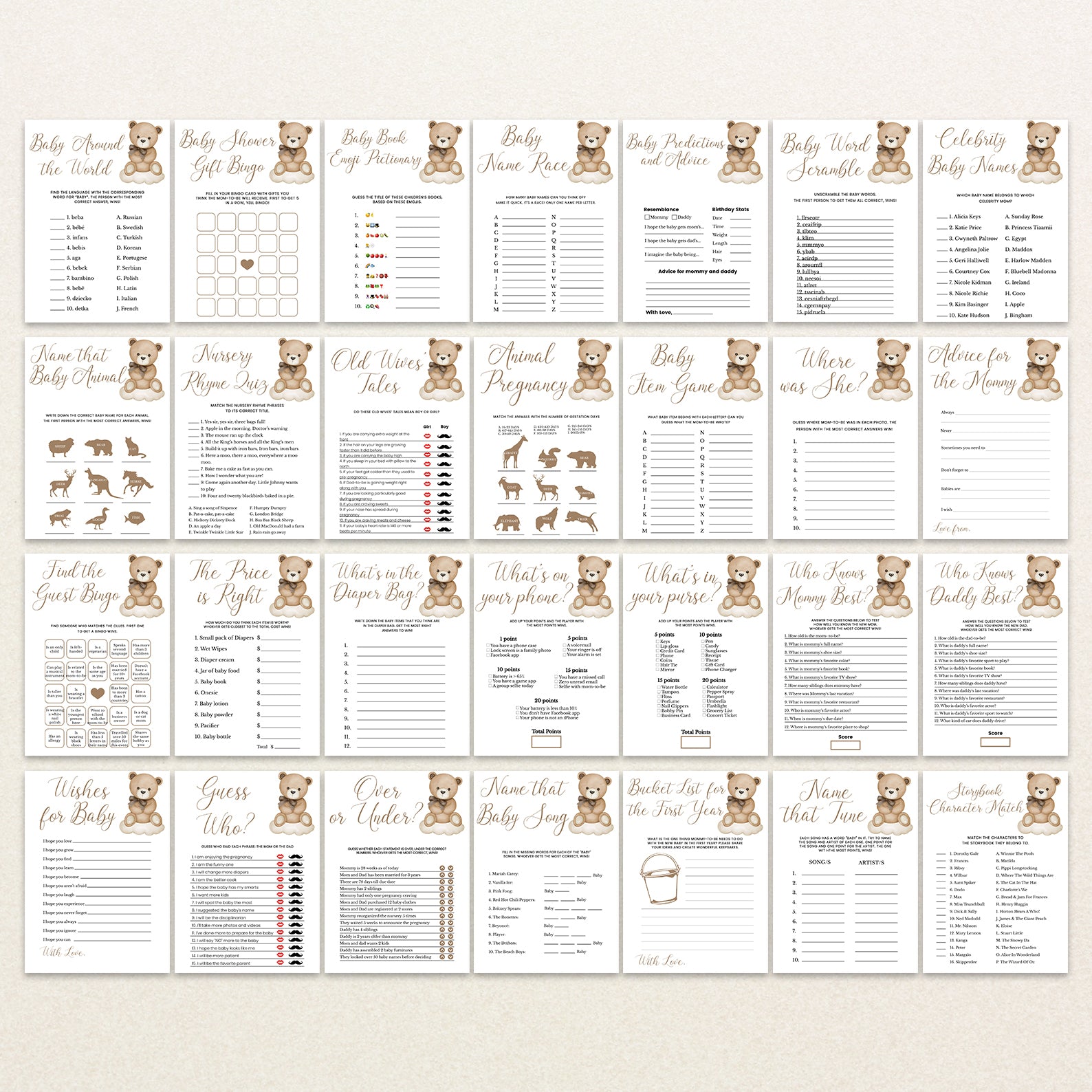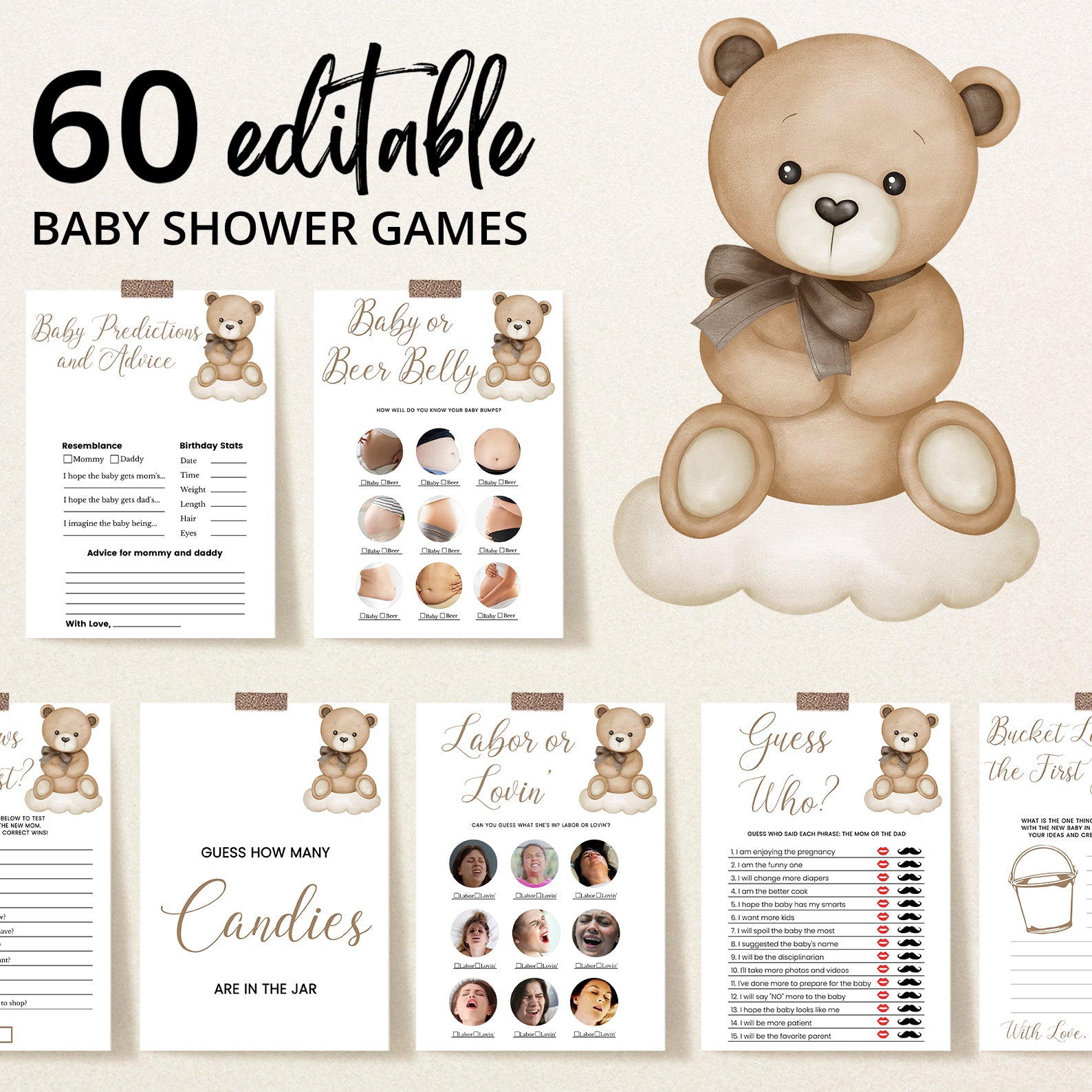 Celebrate your little one's arrival in style with our 'We Can Bearly Wait' Baby Shower Game Bundle! Inspired by the charming teddy bear design, this bundle features 60 editable and customizable games that will add a playful and whimsical touch to your celebration. From classic favorites to fresh new ideas, these games will ensure your guests have a blast while celebrating your new bundle of joy. Easy to customize and share, this bundle captures the warmth and excitement of your special day, making your baby shower an unforgettable event!