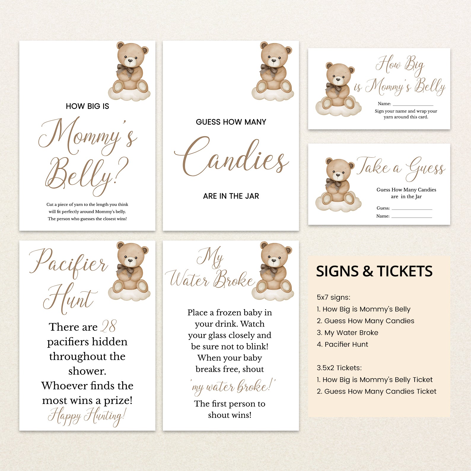We Can Bearly Wait Baby Shower Digital Game Bundle: Teddy on Cloud