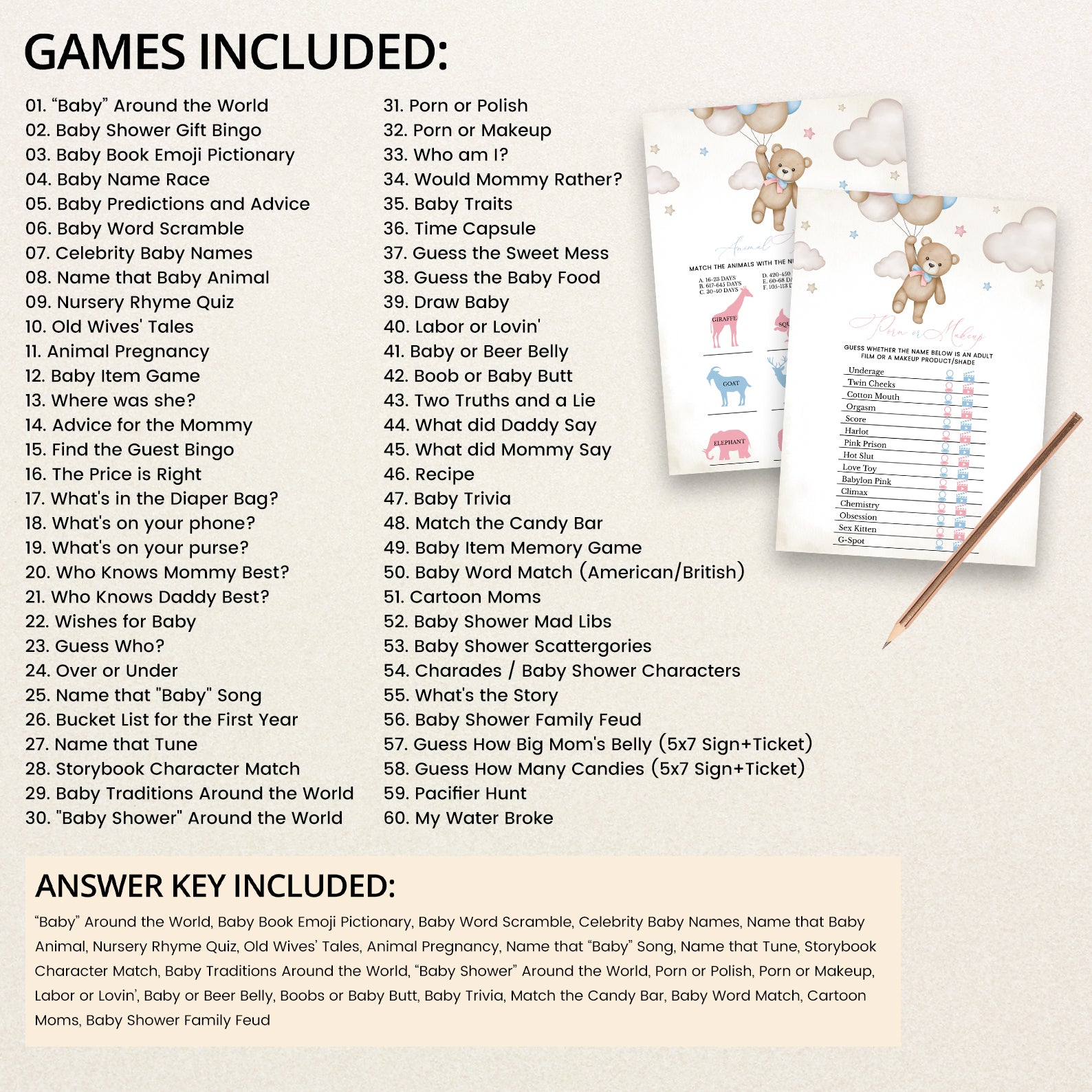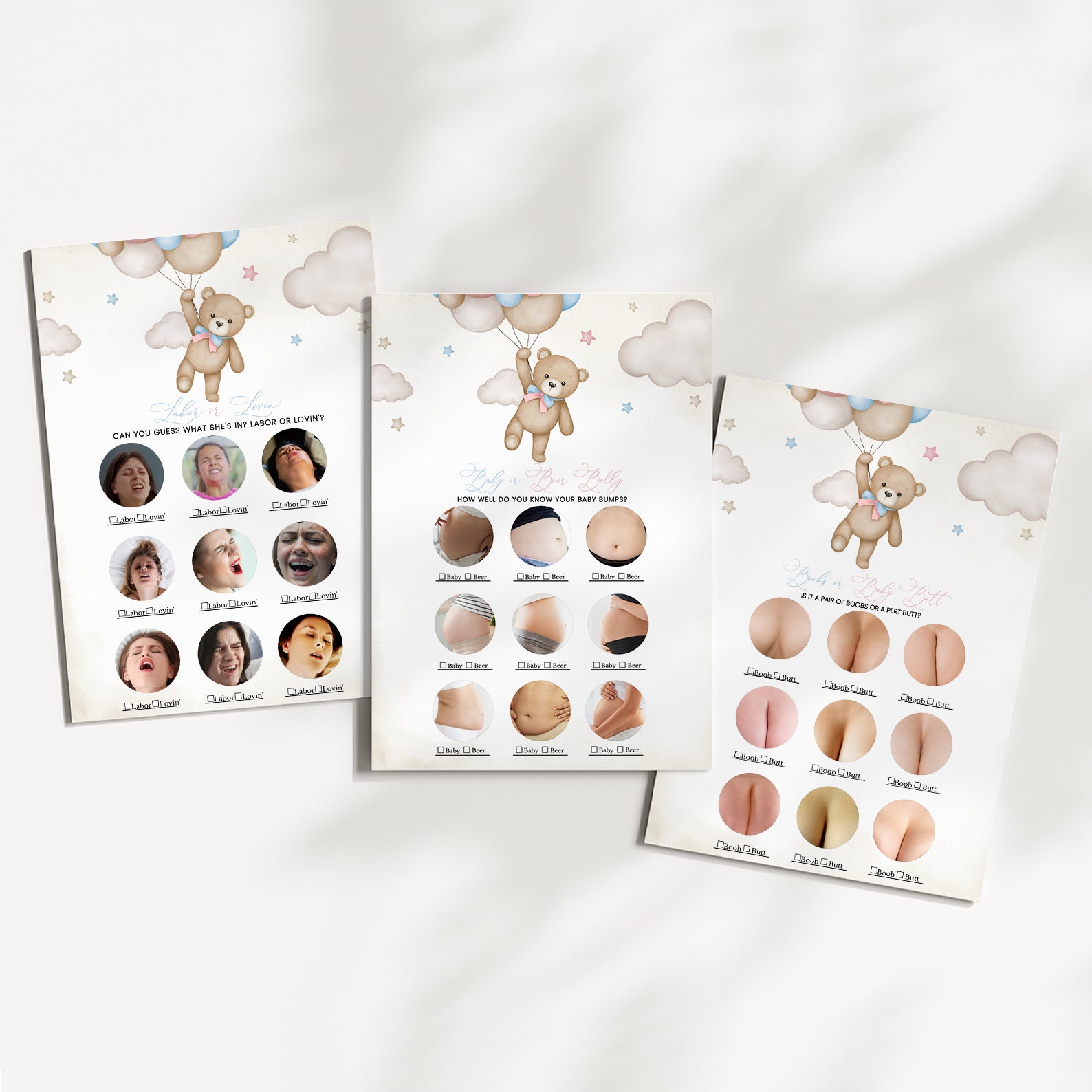 We Can Bearly Wait Gender Reveal Game Bundle: Bear & Balloons