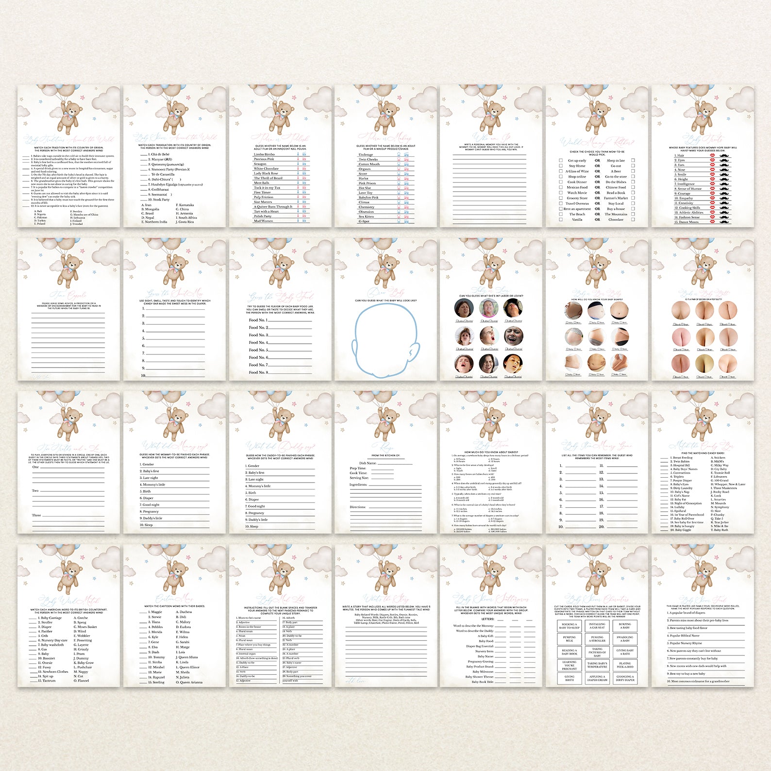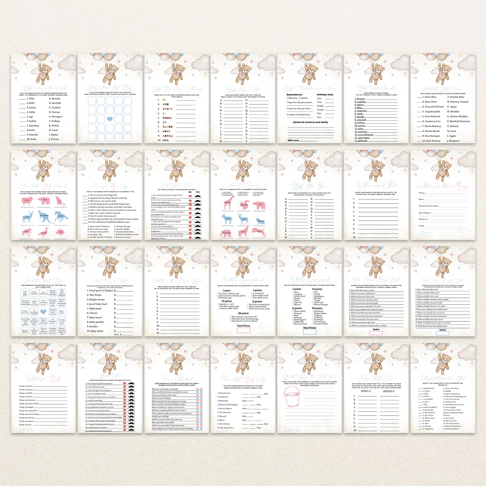 Get ready to celebrate in style with our 'We Can Barely Wait' Baby Shower Game Bundle! This collection features 60 engaging and editable games, perfect for keeping your guests entertained as you count down to the arrival of your little one. Inspired by the playful spirit of our 'We Can Barely Wait' invitation, featuring a teddy bear with vibrant balloons, this bundle adds a fun, exciting touch to your gender reveal celebration. With a mix of classic baby shower games and fresh new ideas, it’s easy to customize and share, ensuring a joyful and memorable experience for everyone. Make your baby shower unforgettable with this delightful game bundle that captures the excitement of your special day!