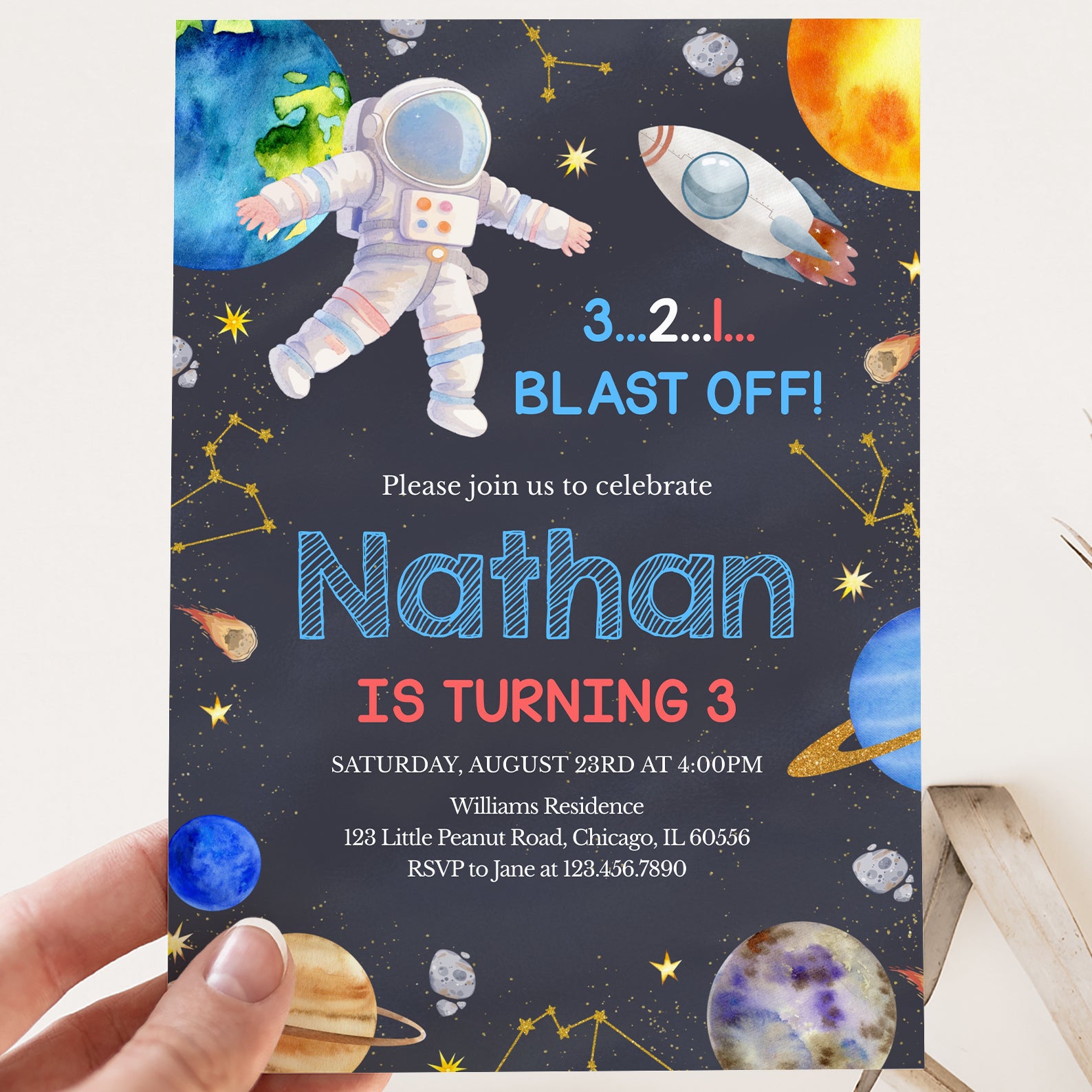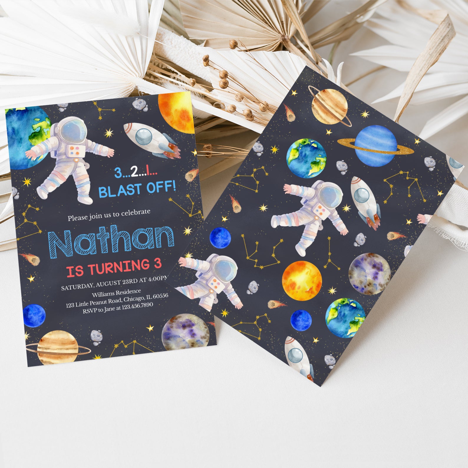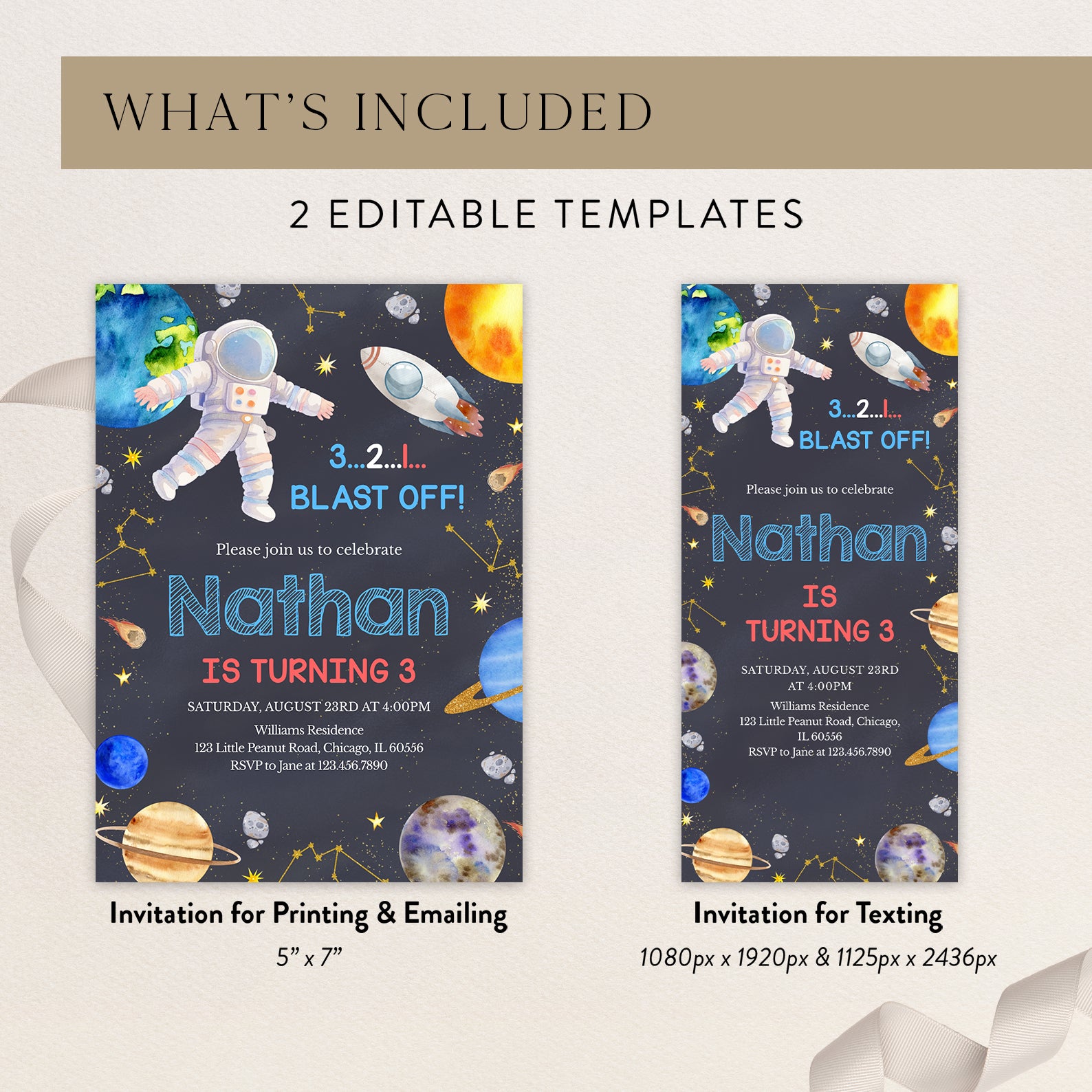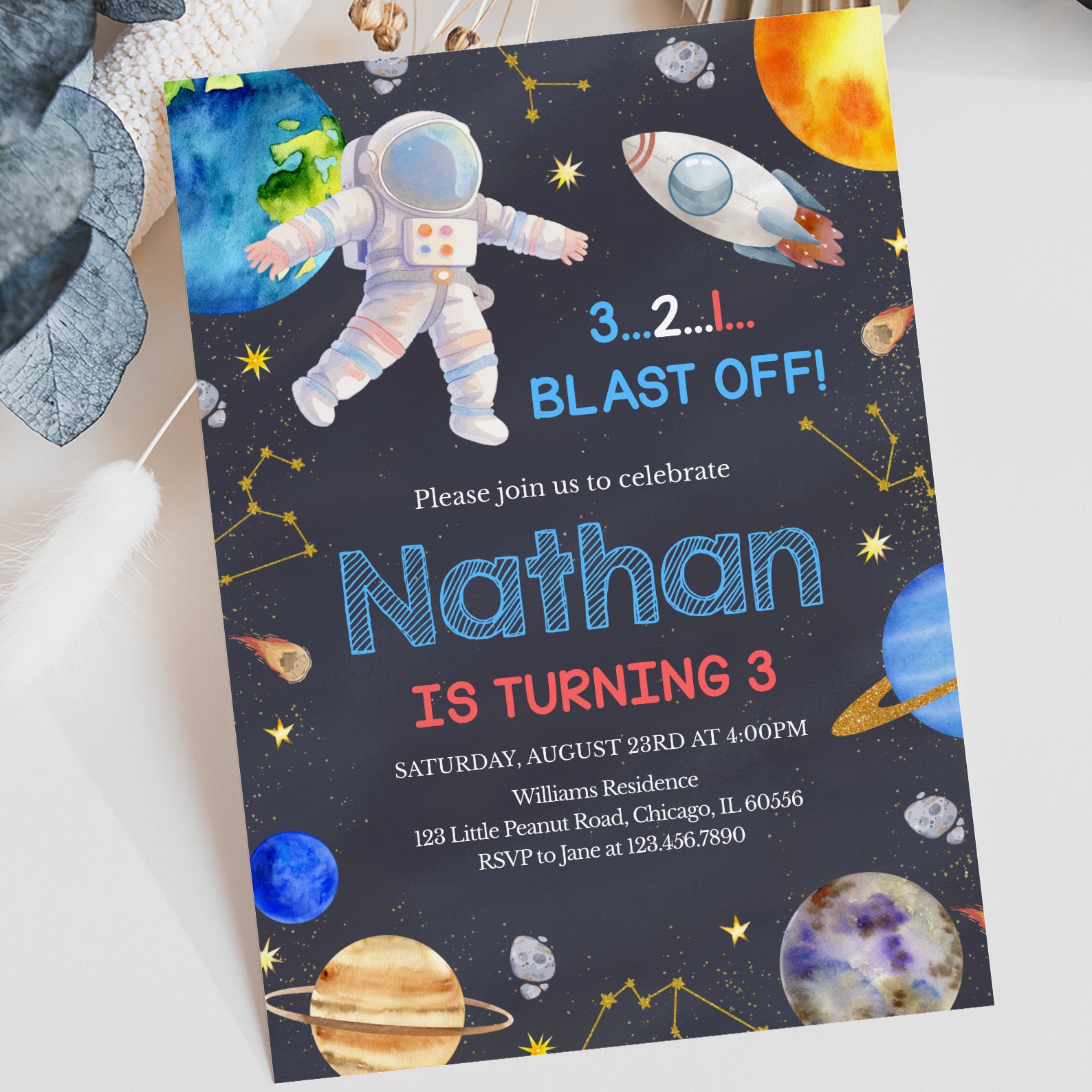 - Purchase this 3rd Birthday Space Invite: Astronaut & Planets Theme template