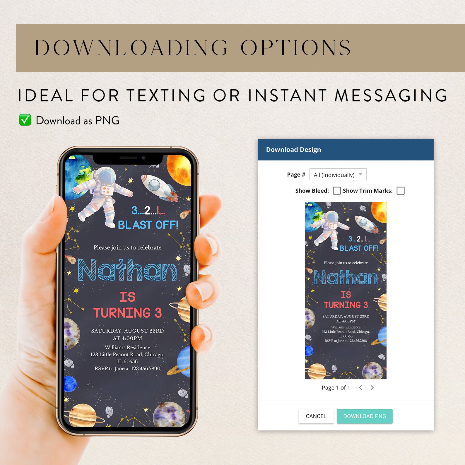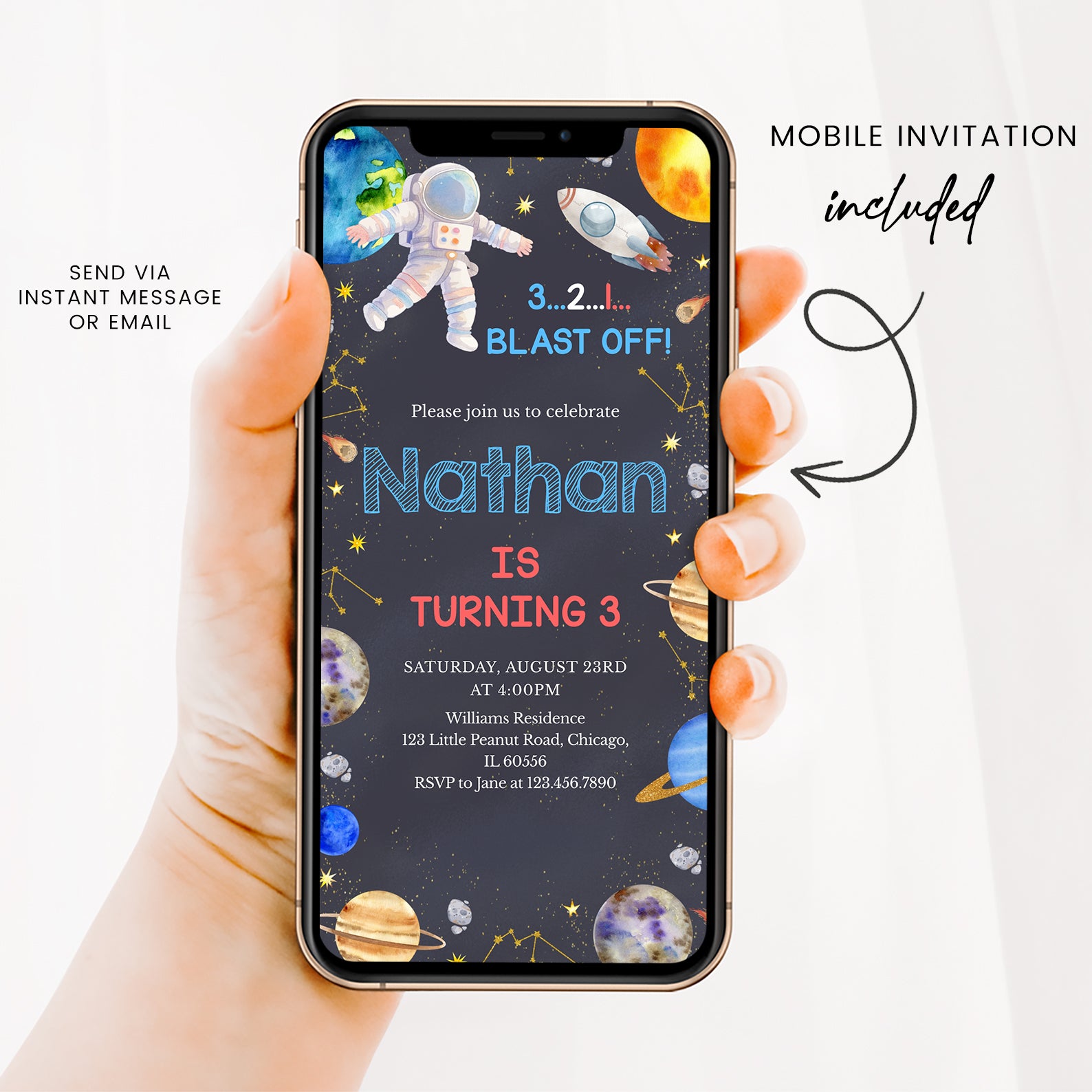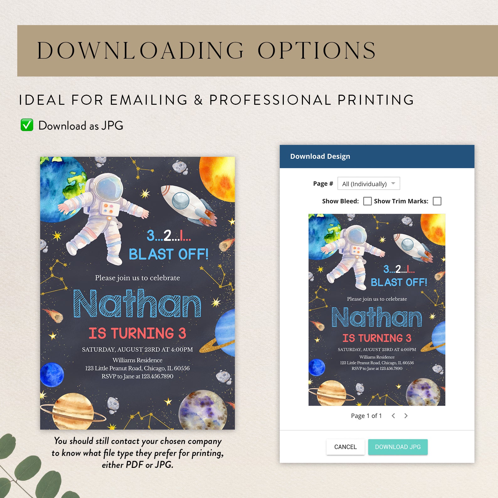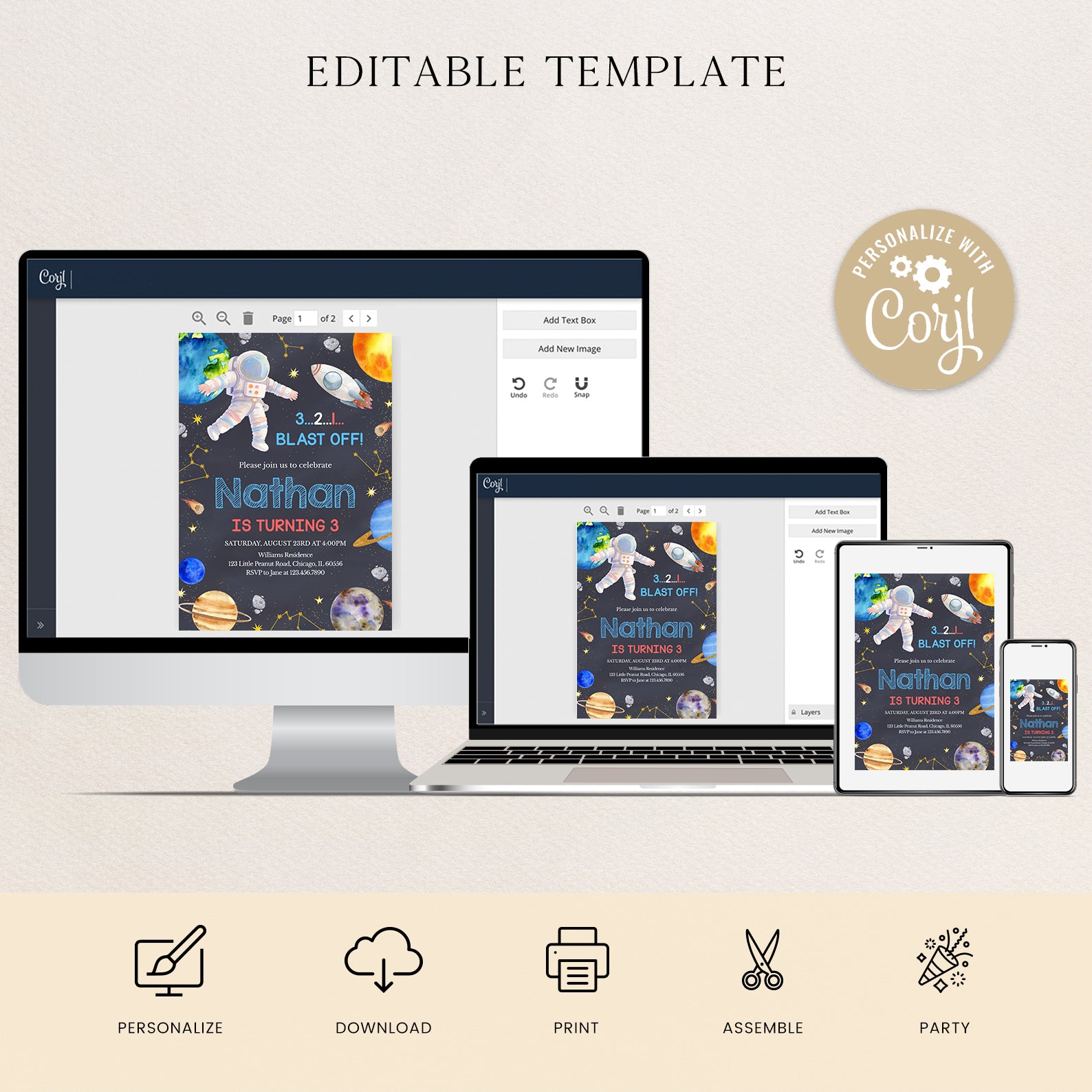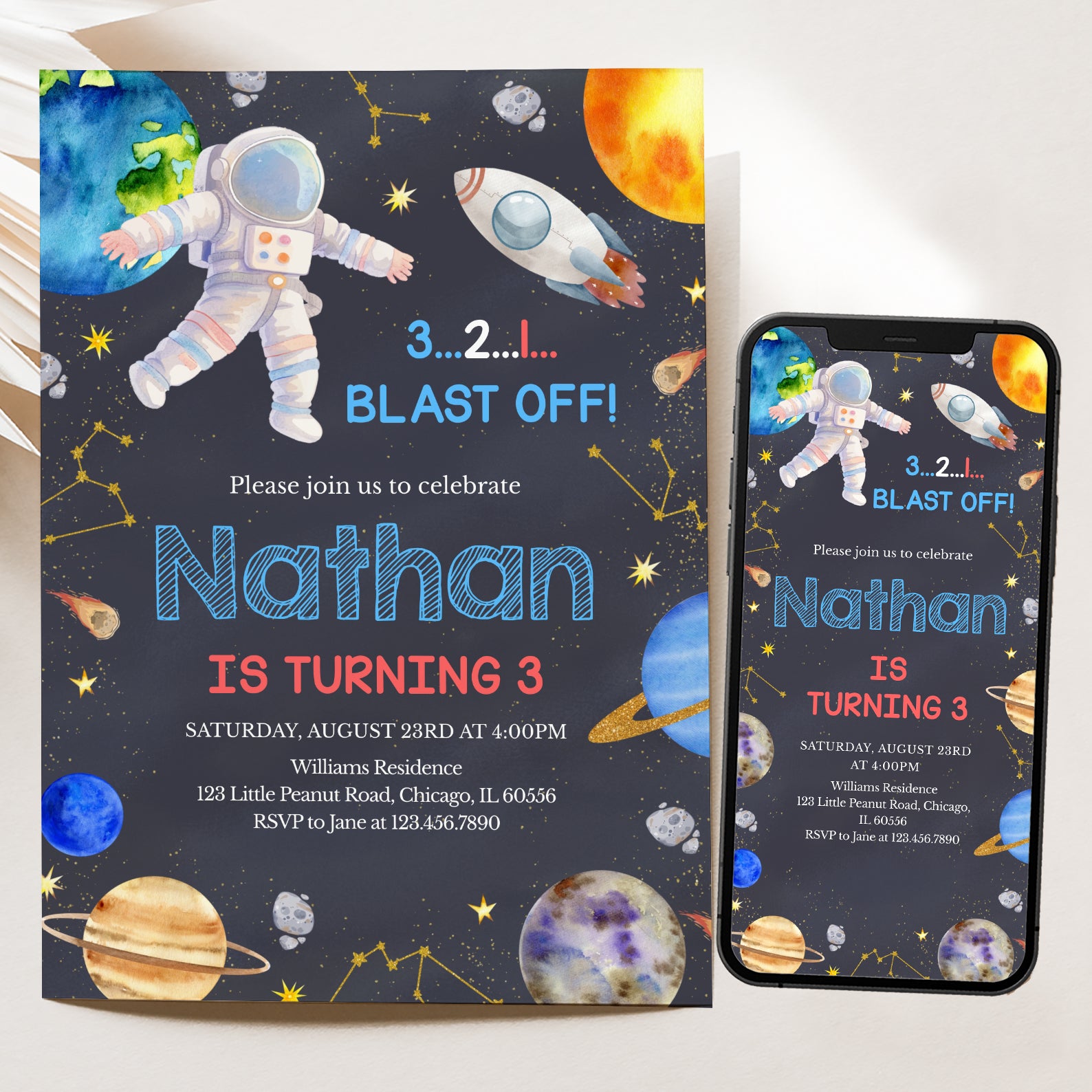 - Purchase this 3rd Birthday Space Invite: Astronaut & Planets Theme template