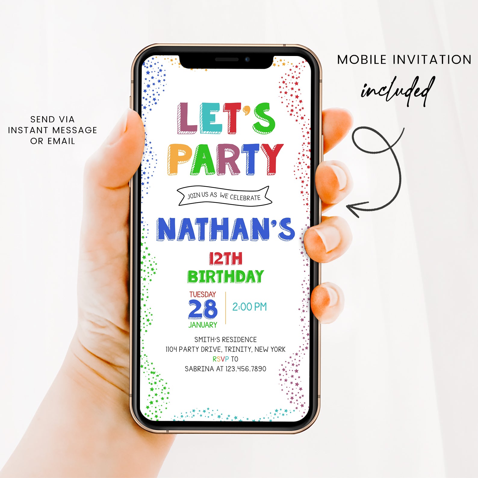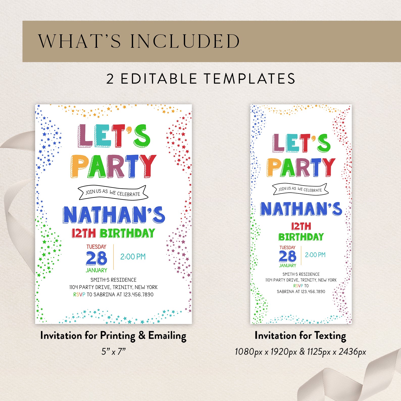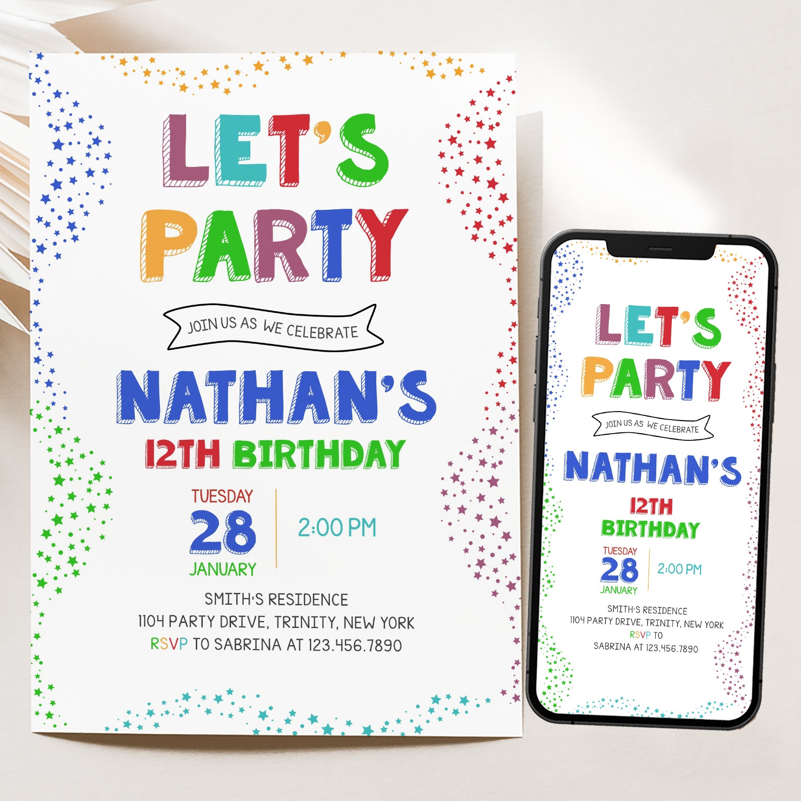 - Purchase this Colorful 12th Birthday Invite: Let's Party with Stars template