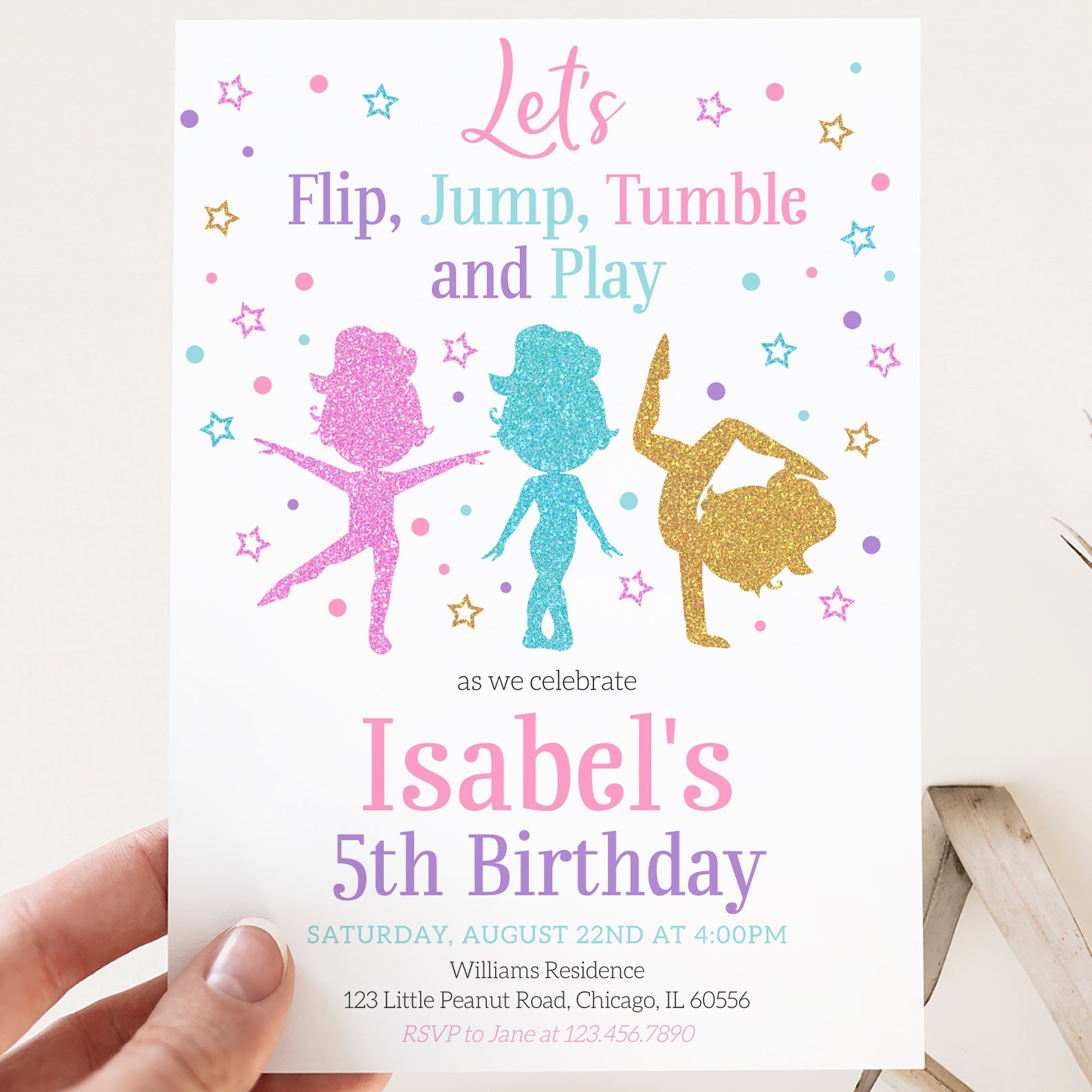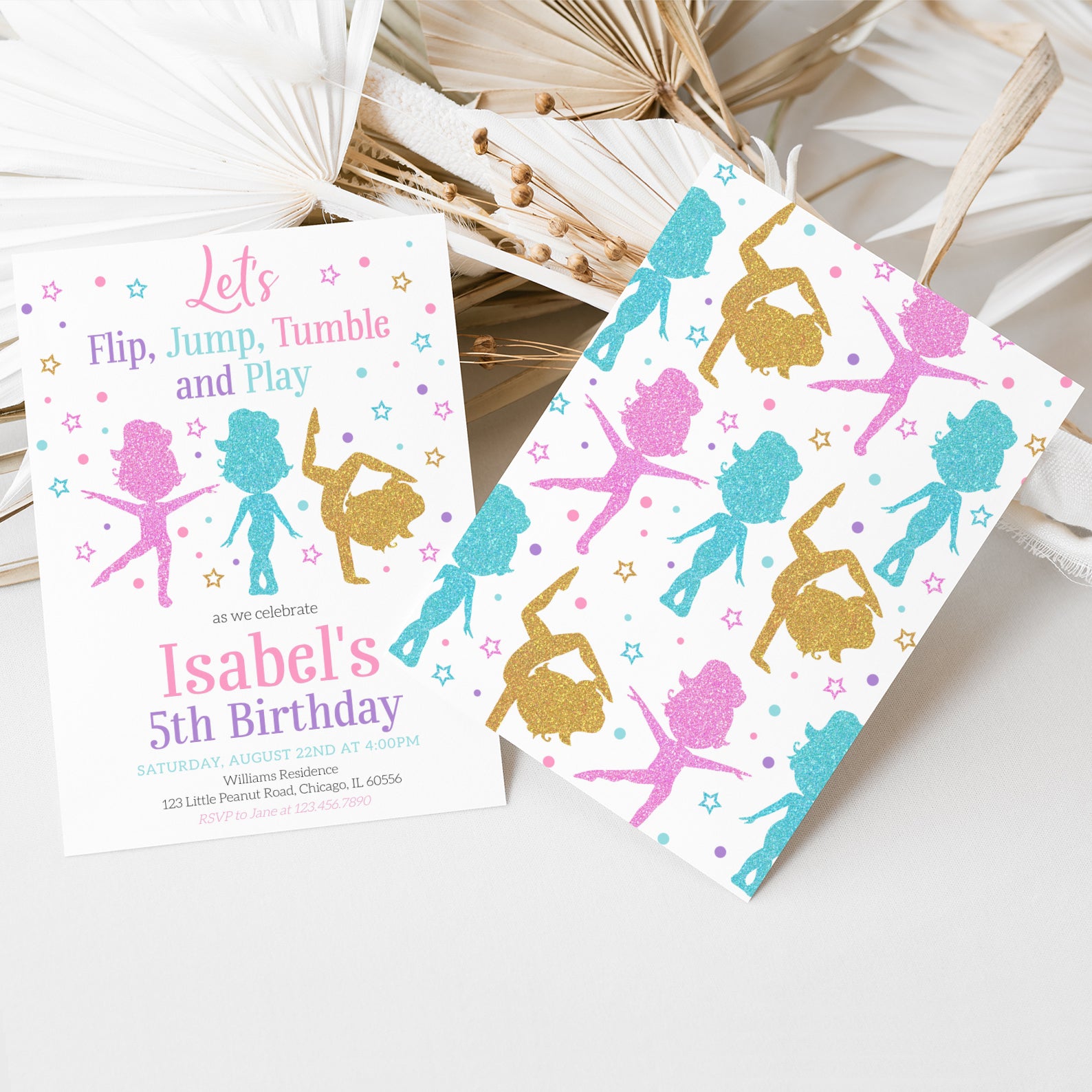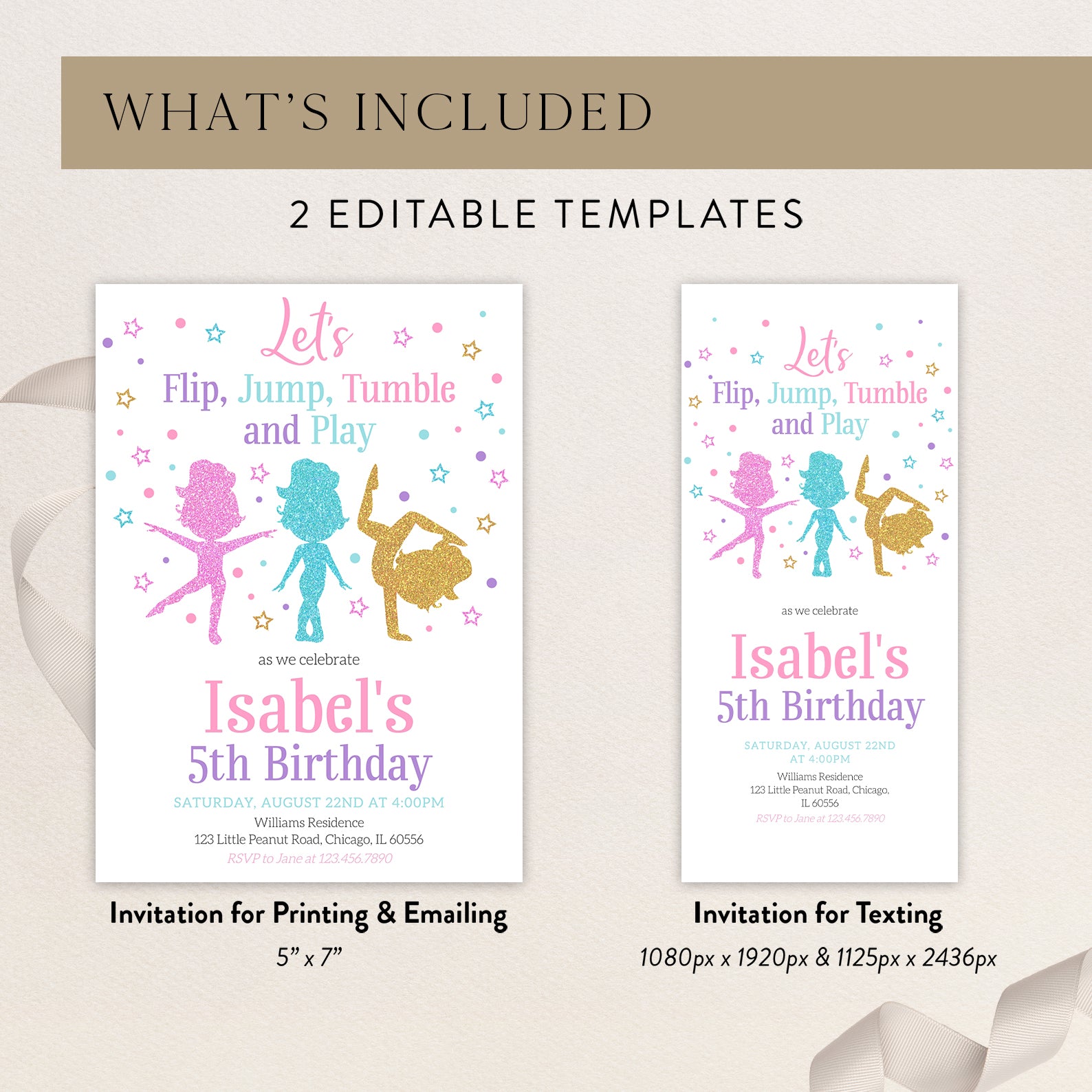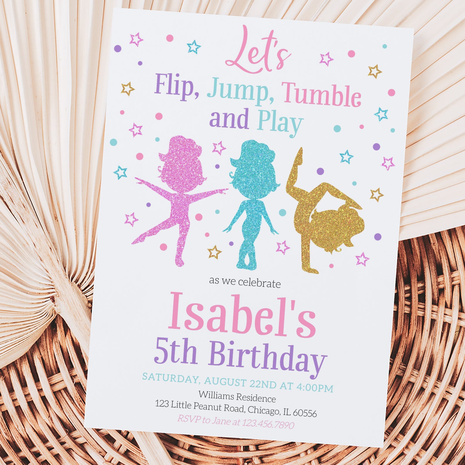 - Purchase this Flip, Jump & Tumble: 5th Birthday Gymnastics Invite template