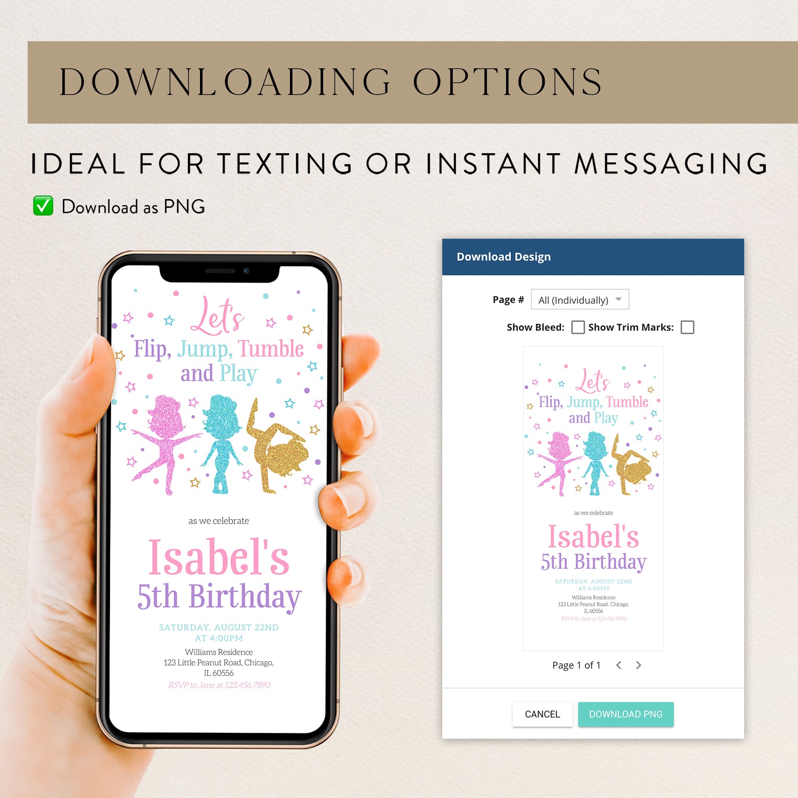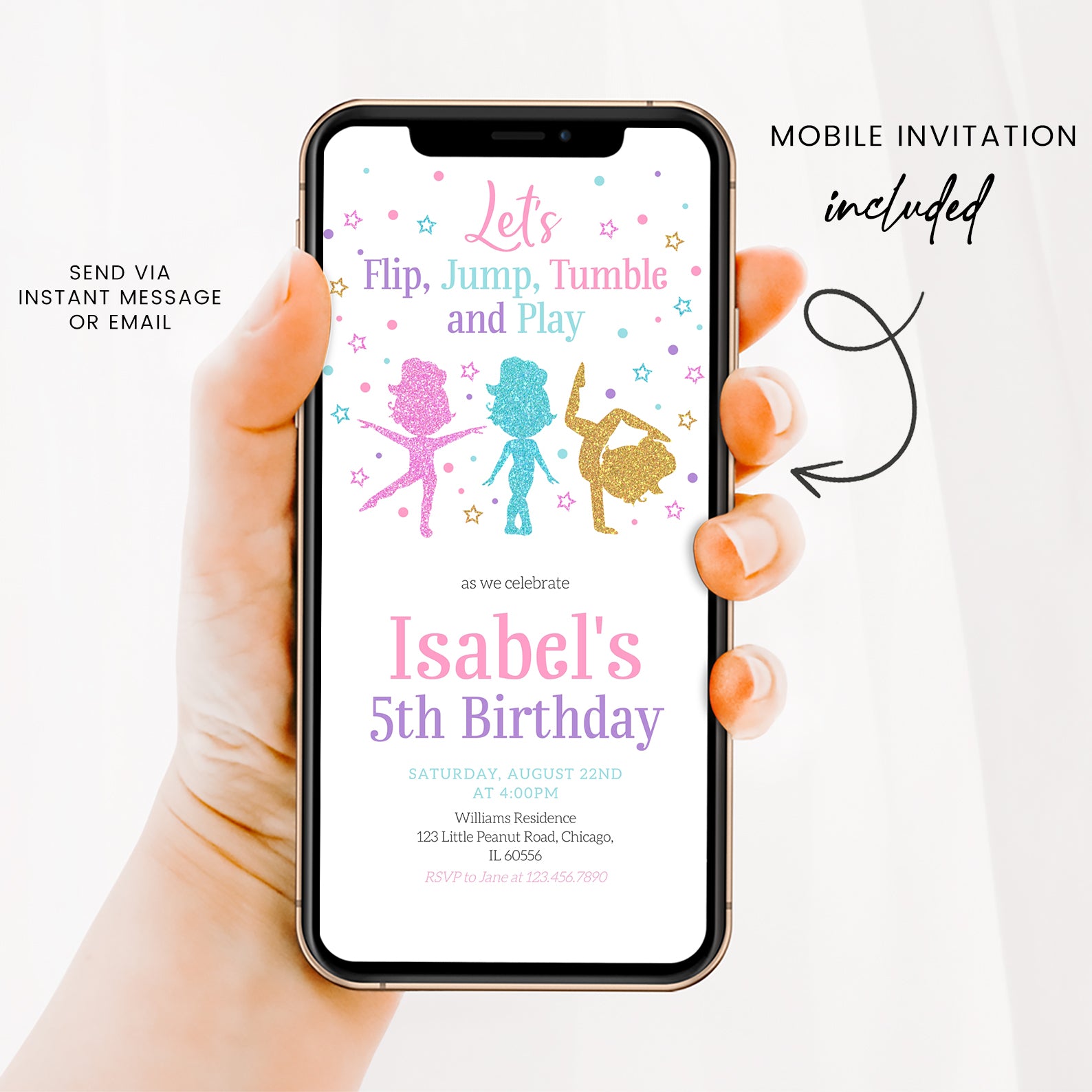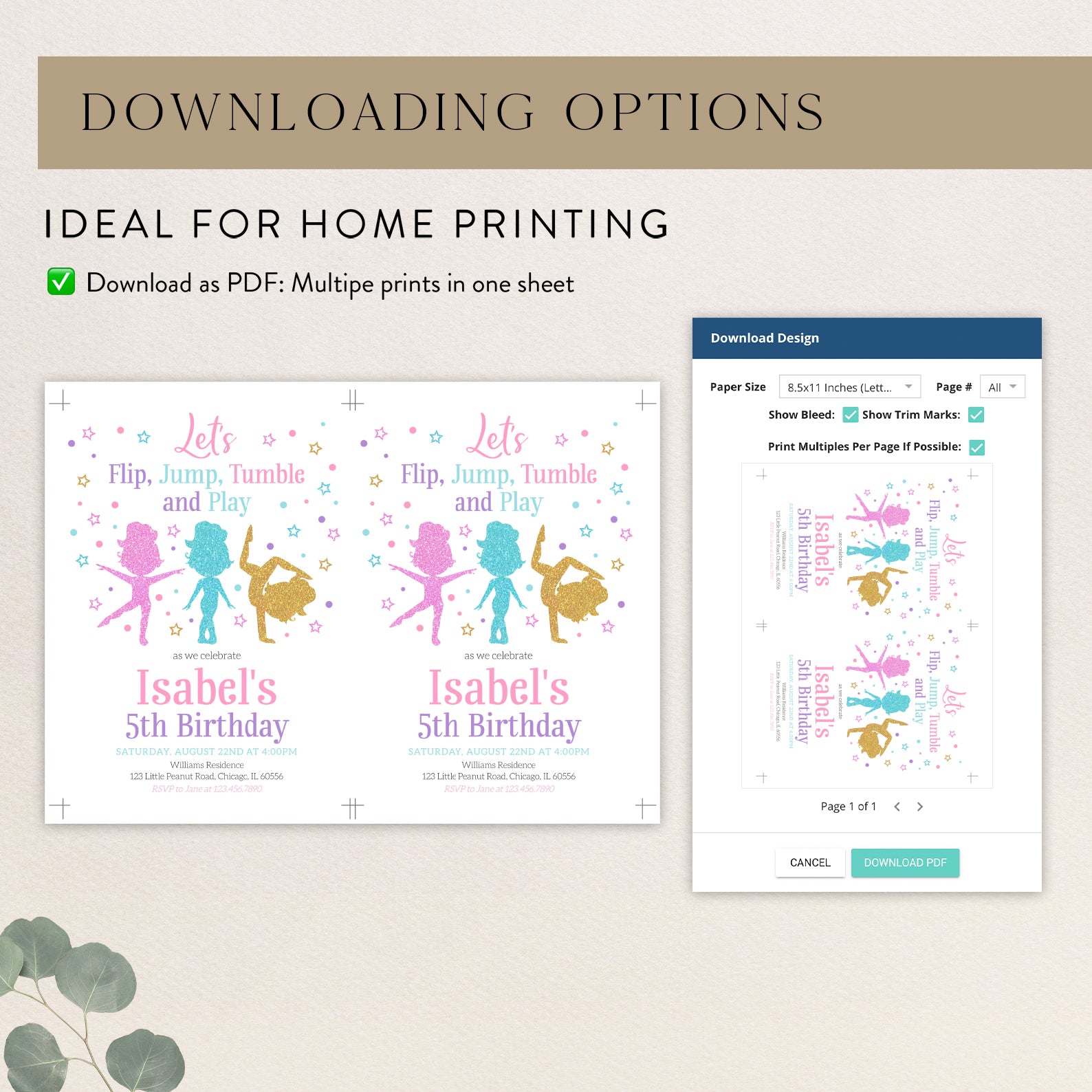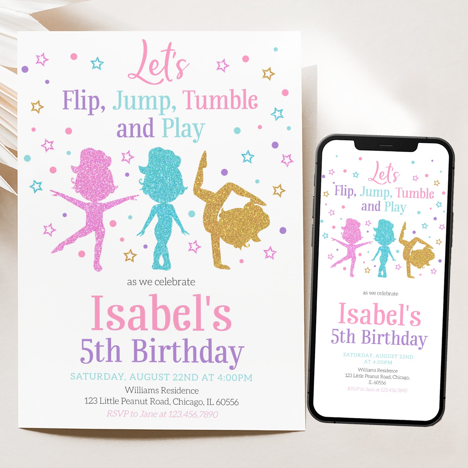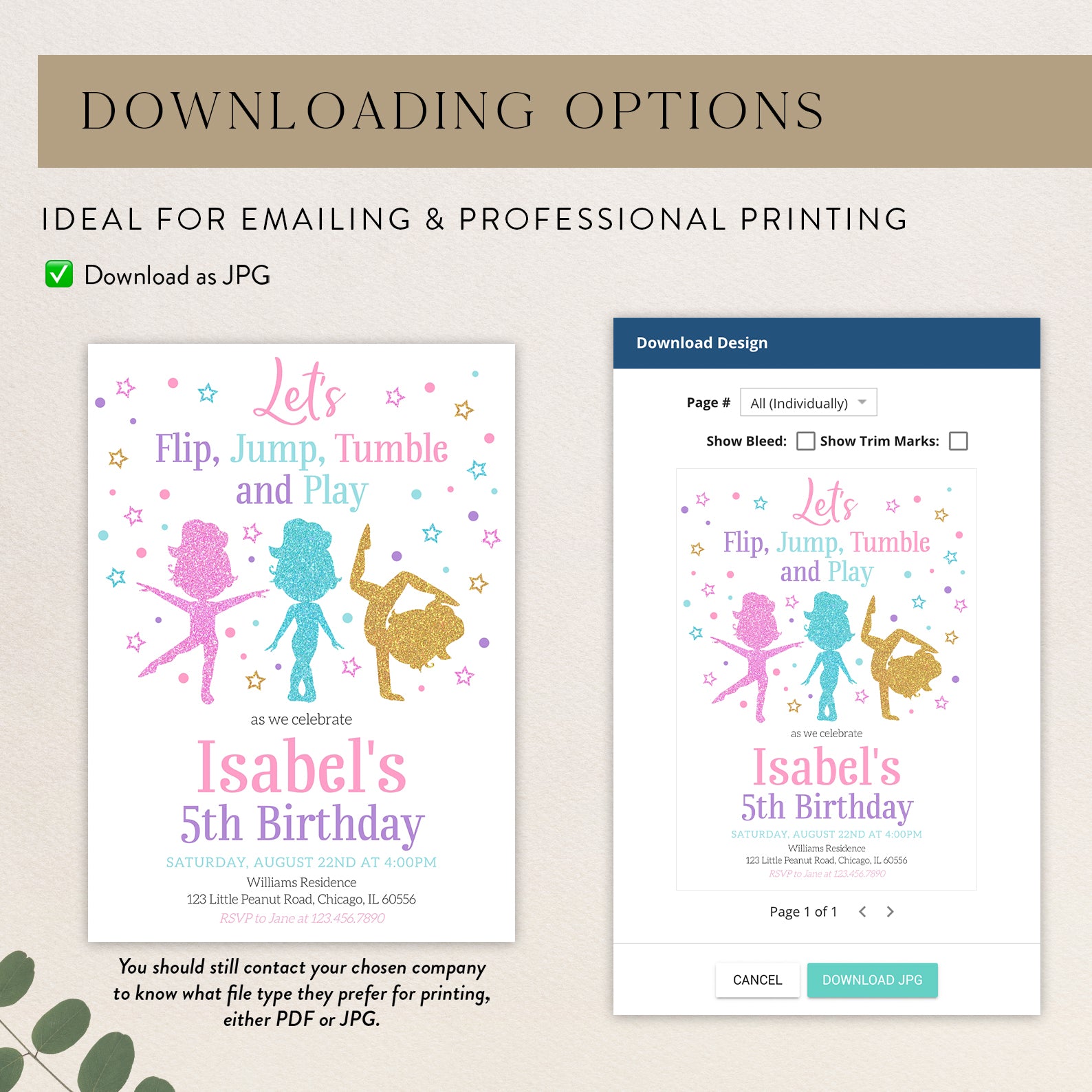 - Purchase this Flip, Jump & Tumble: 5th Birthday Gymnastics Invite template