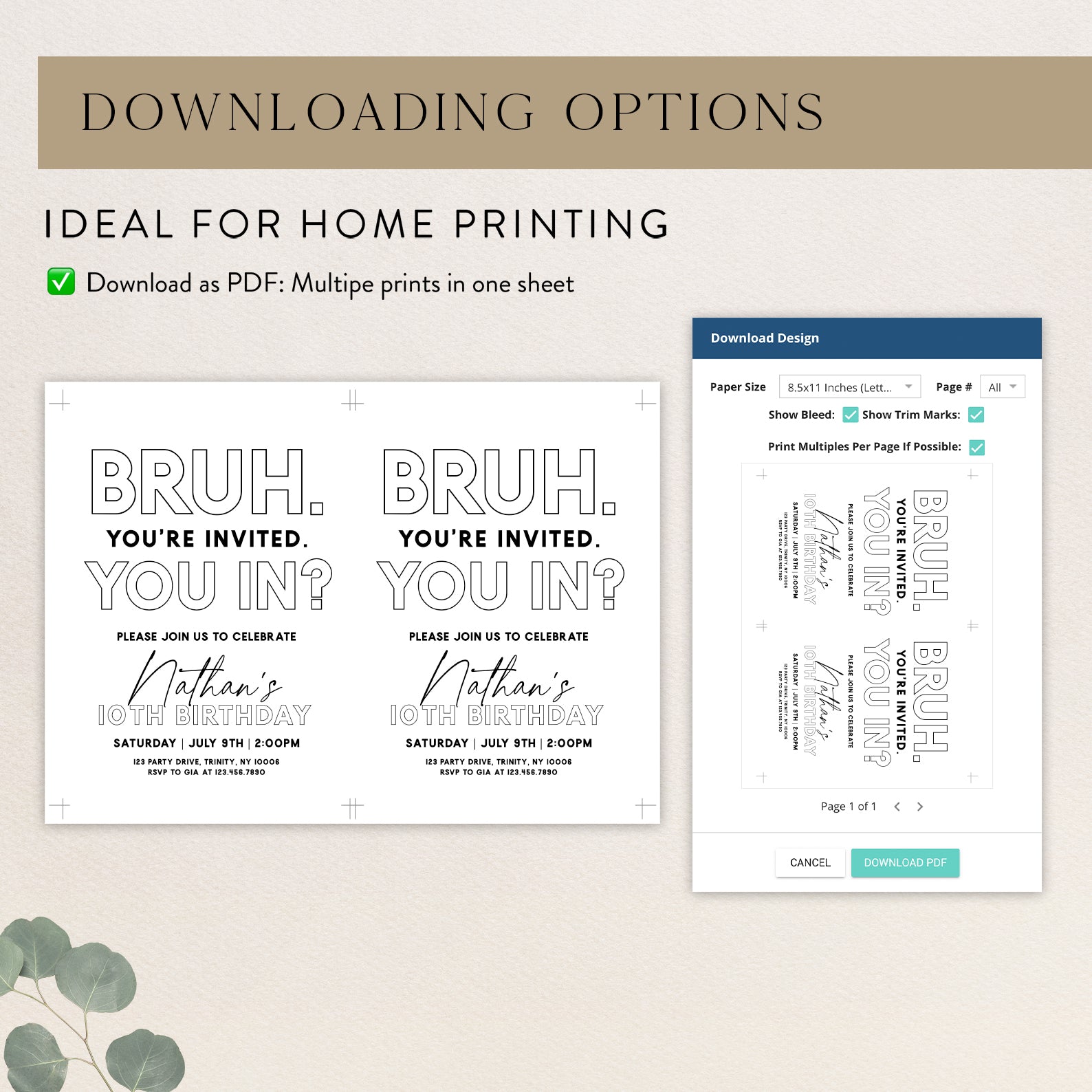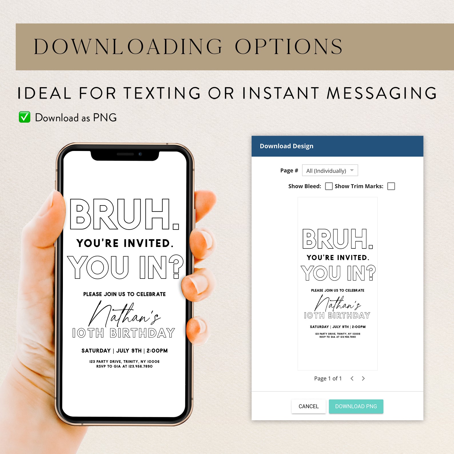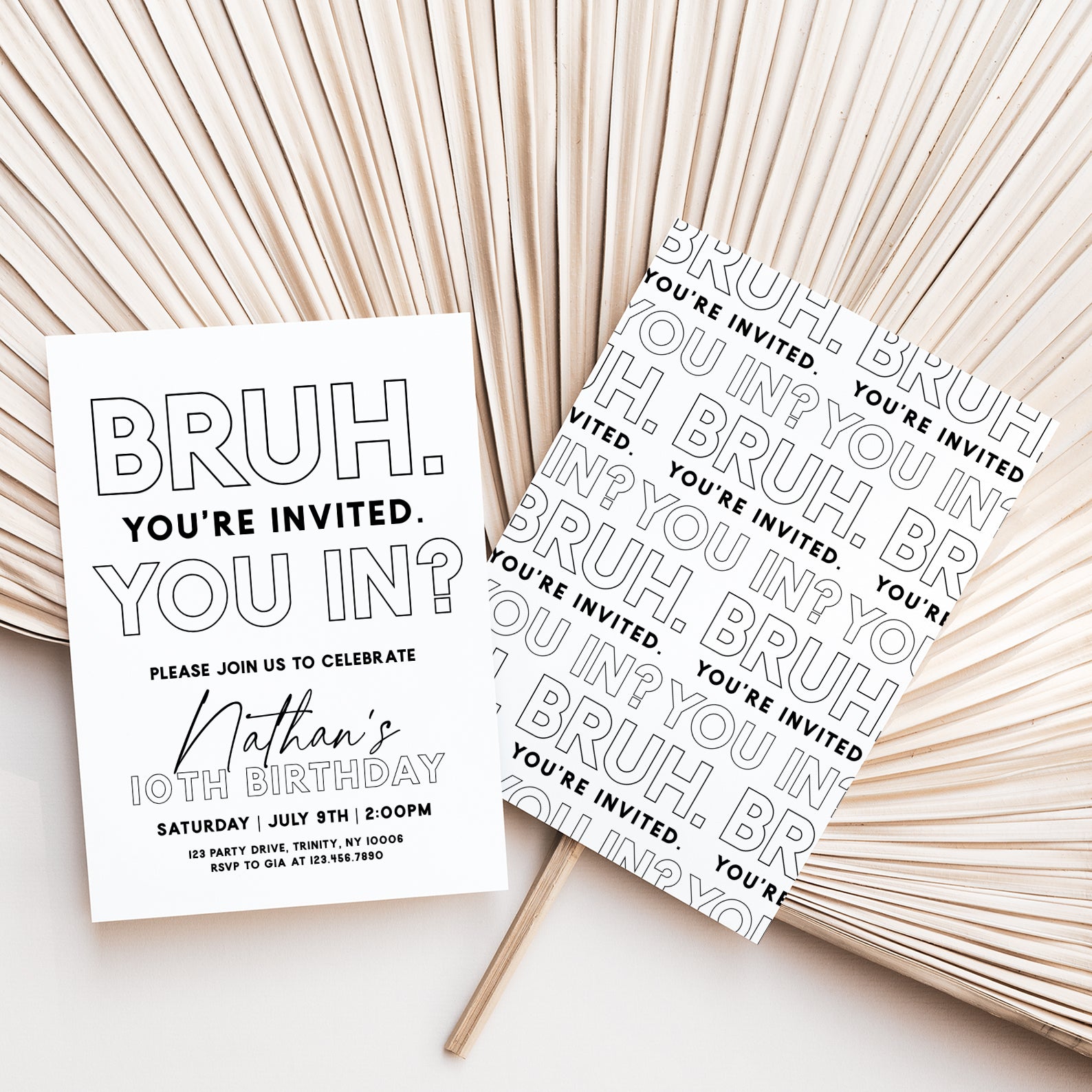 - Purchase this Minimalist 'Bruh You're Invited' 10th Birthday Digital Invite template