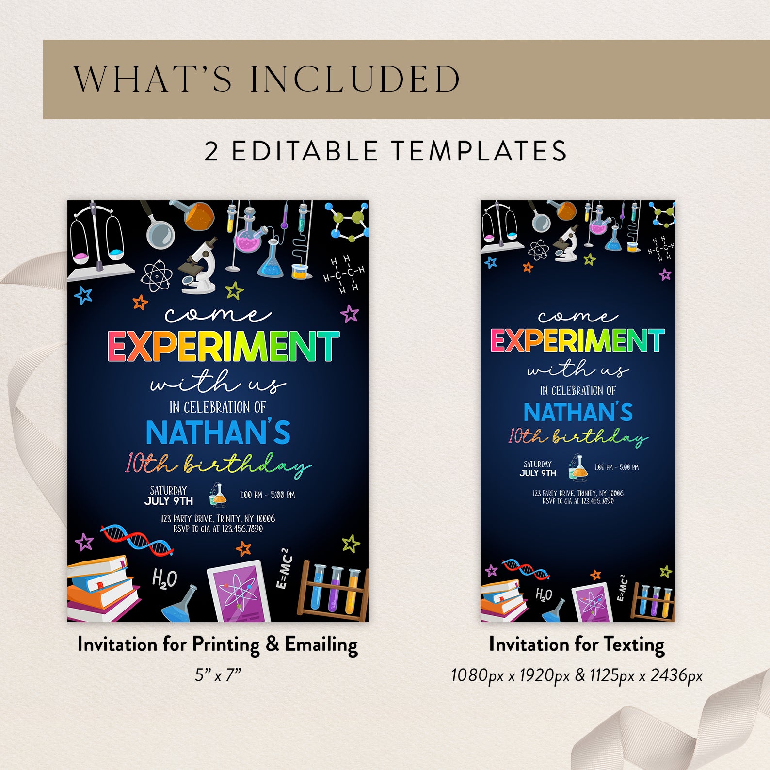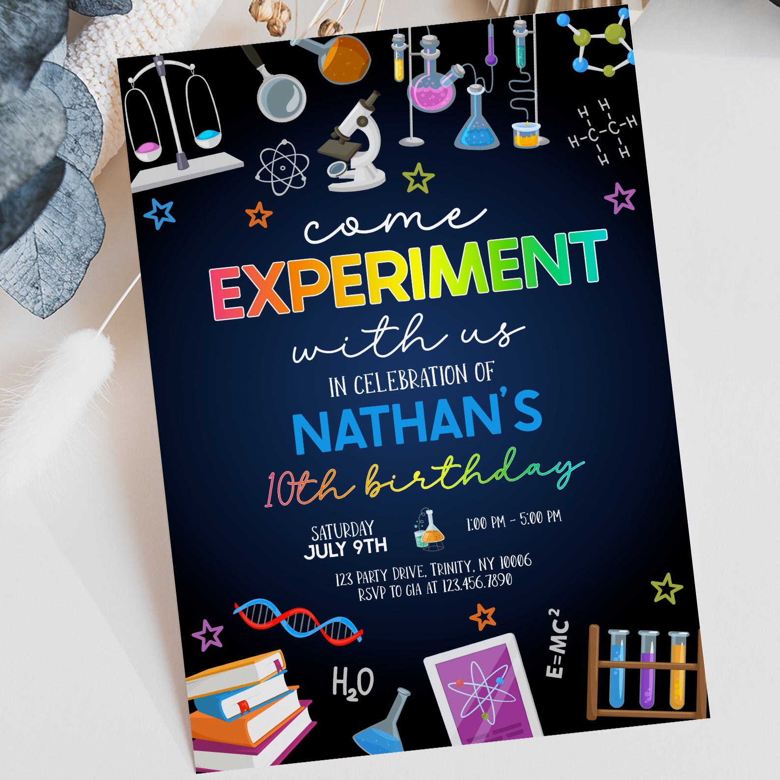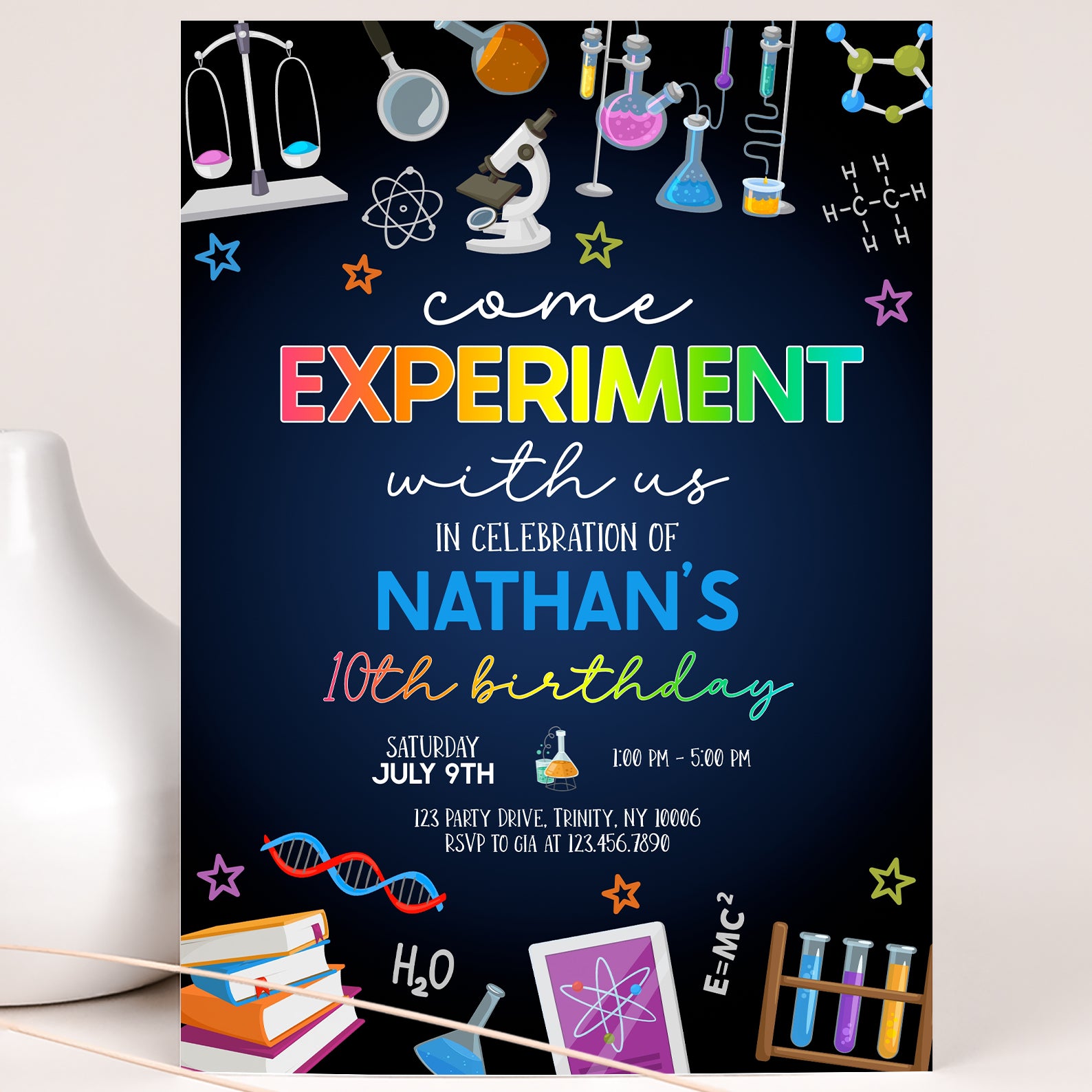 - Purchase this Science Lab 10th Birthday Invite: Experiment Theme template