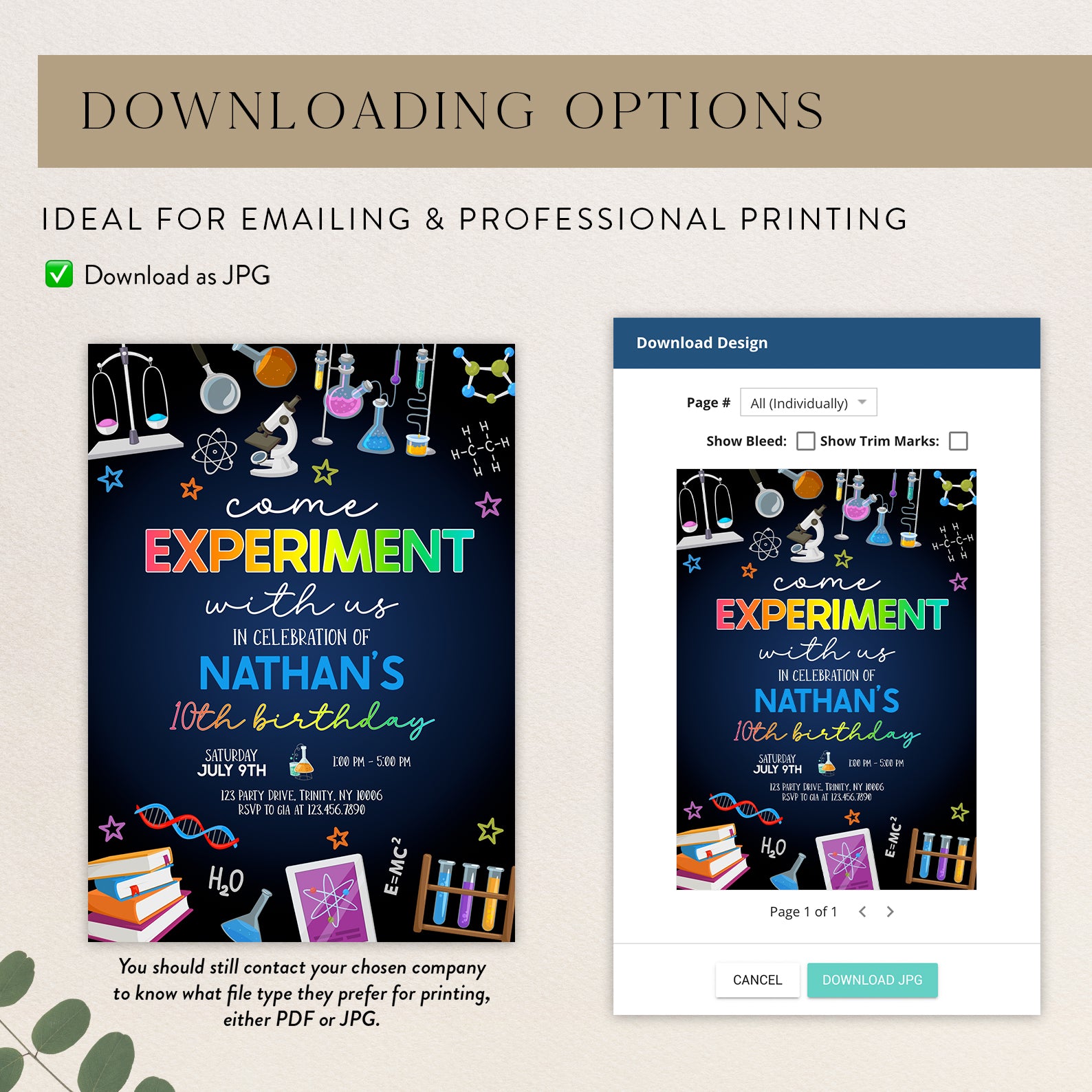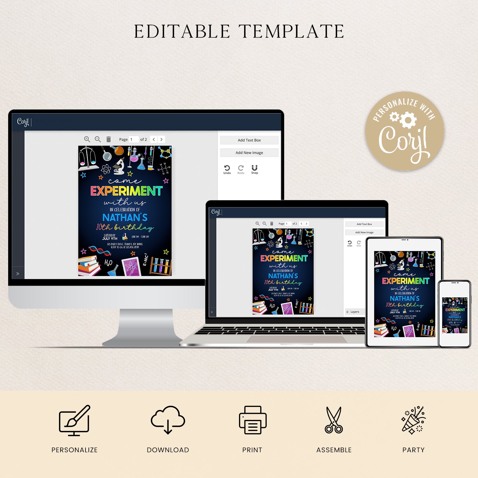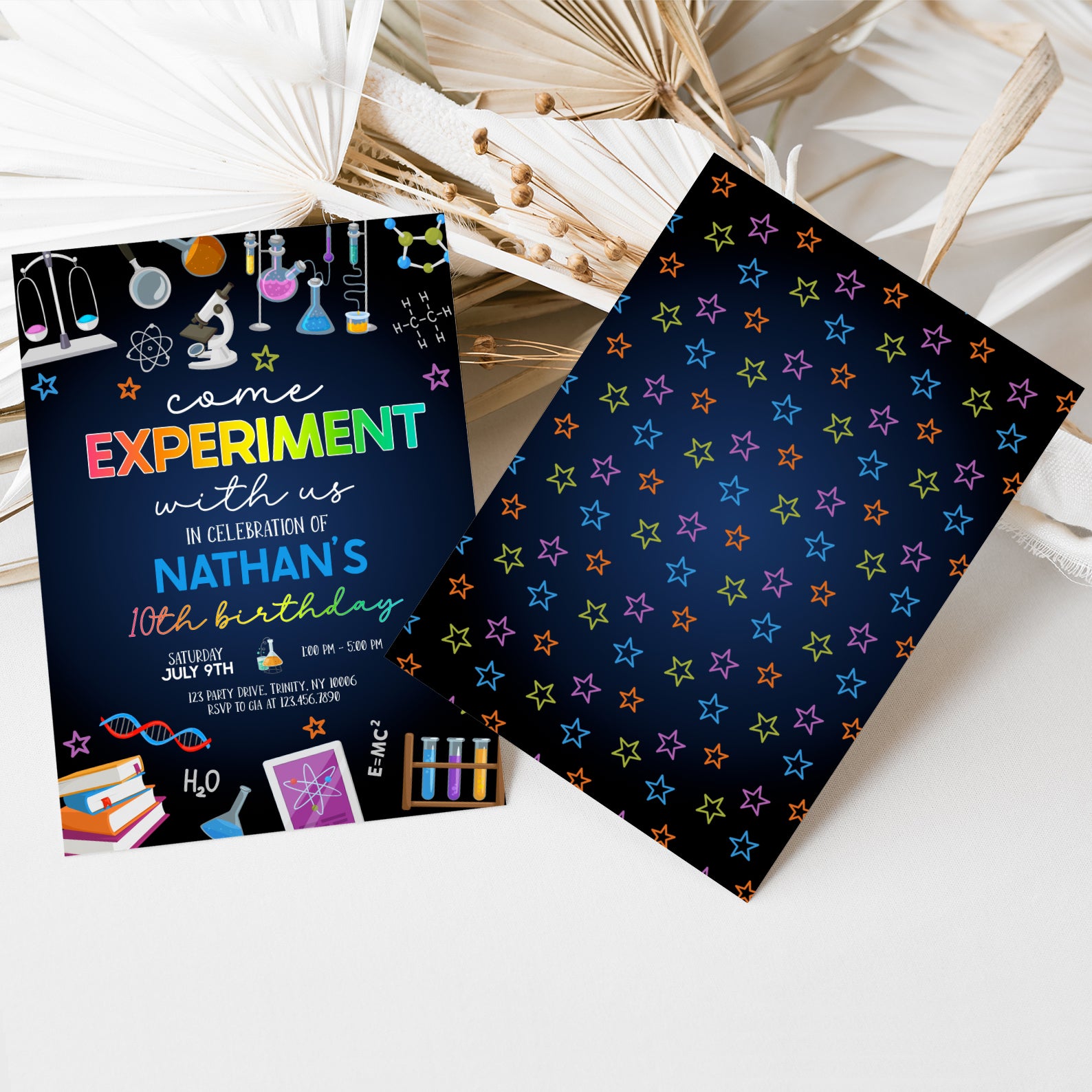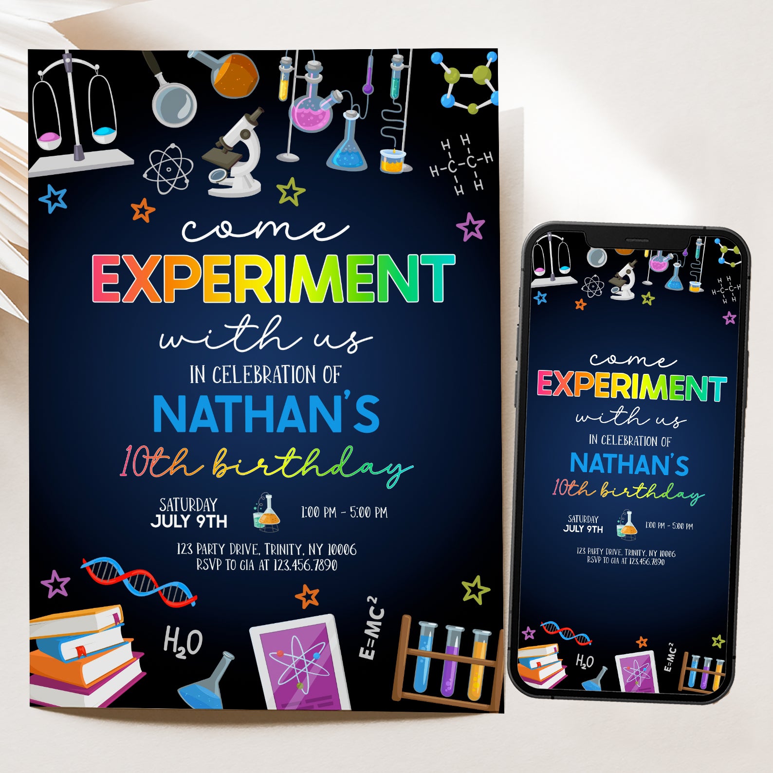 - Purchase this Science Lab 10th Birthday Invite: Experiment Theme template