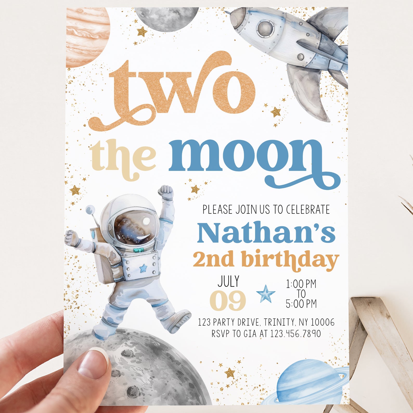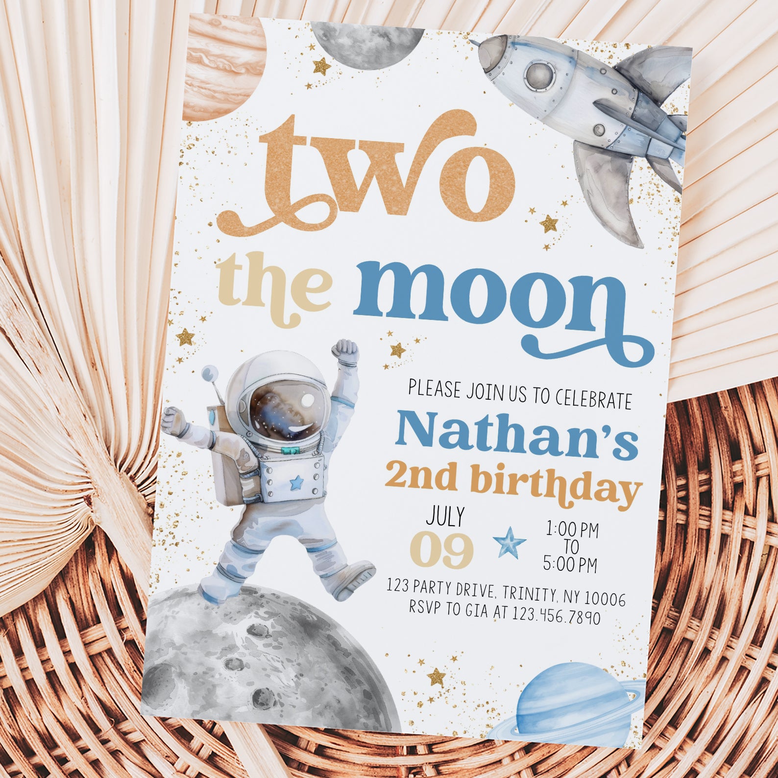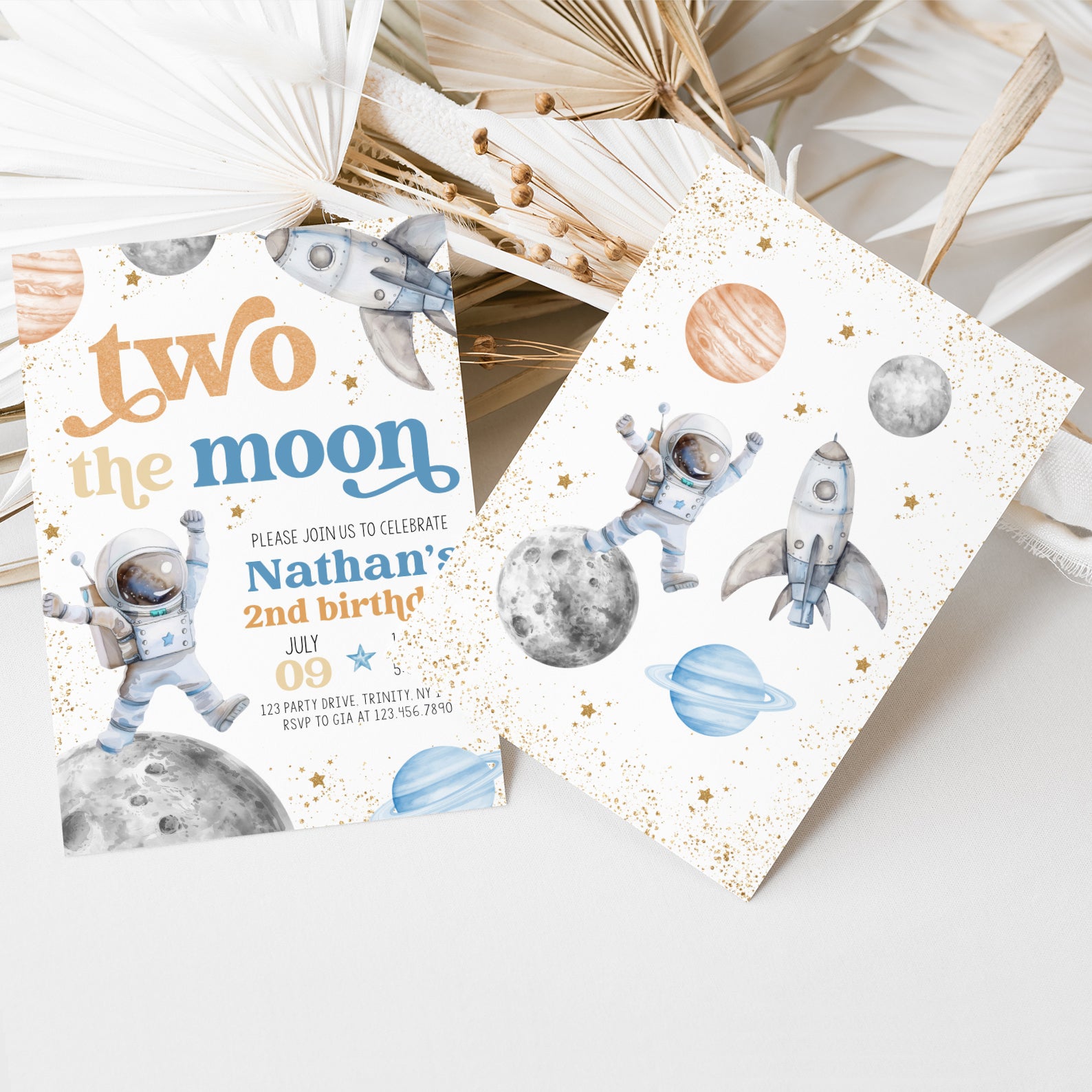 - Purchase this Two the Moon 2nd Birthday Invite: Astronaut & Stars Blue Theme template