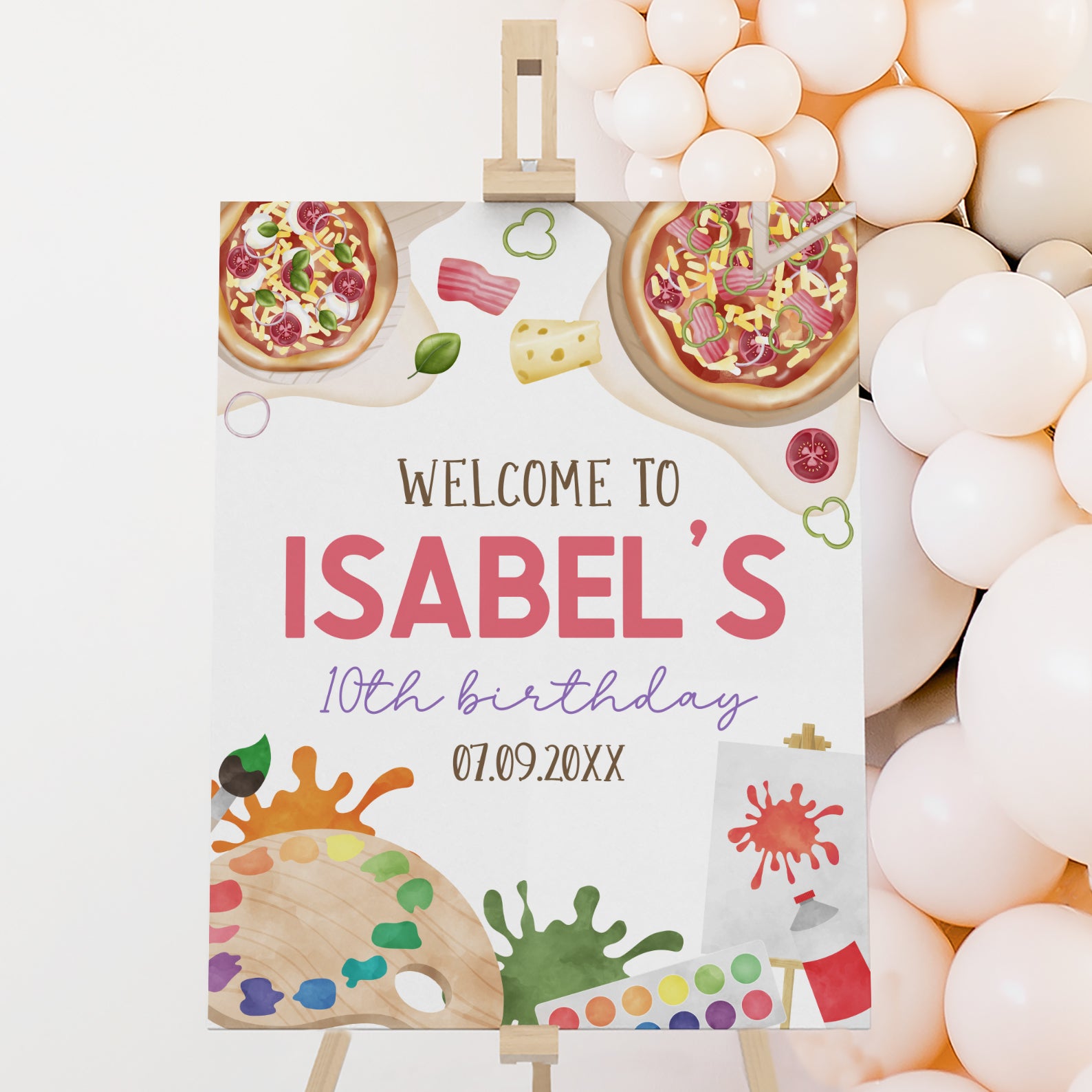 - Purchase this 10th Birthday Paint and Pizza Party Digital Welcome Sign template