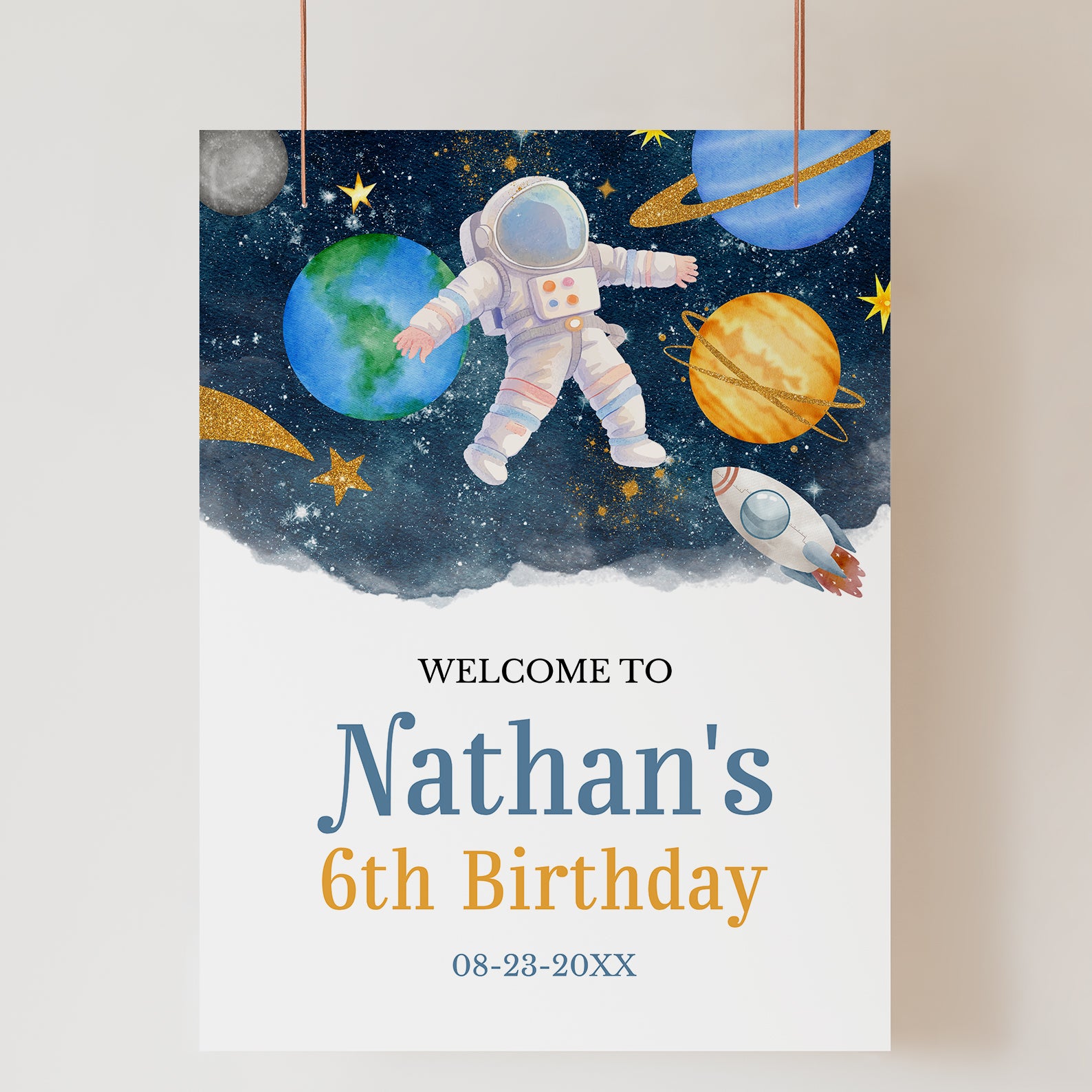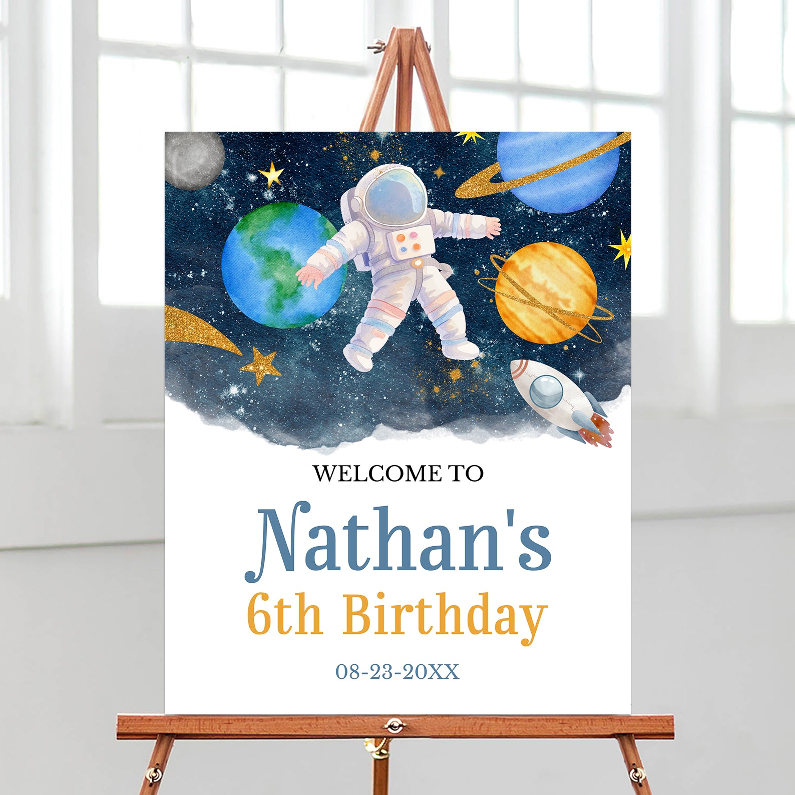 - Purchase this Blast Off! 6th Birthday Welcome Sign: Space & Astronaut Theme template