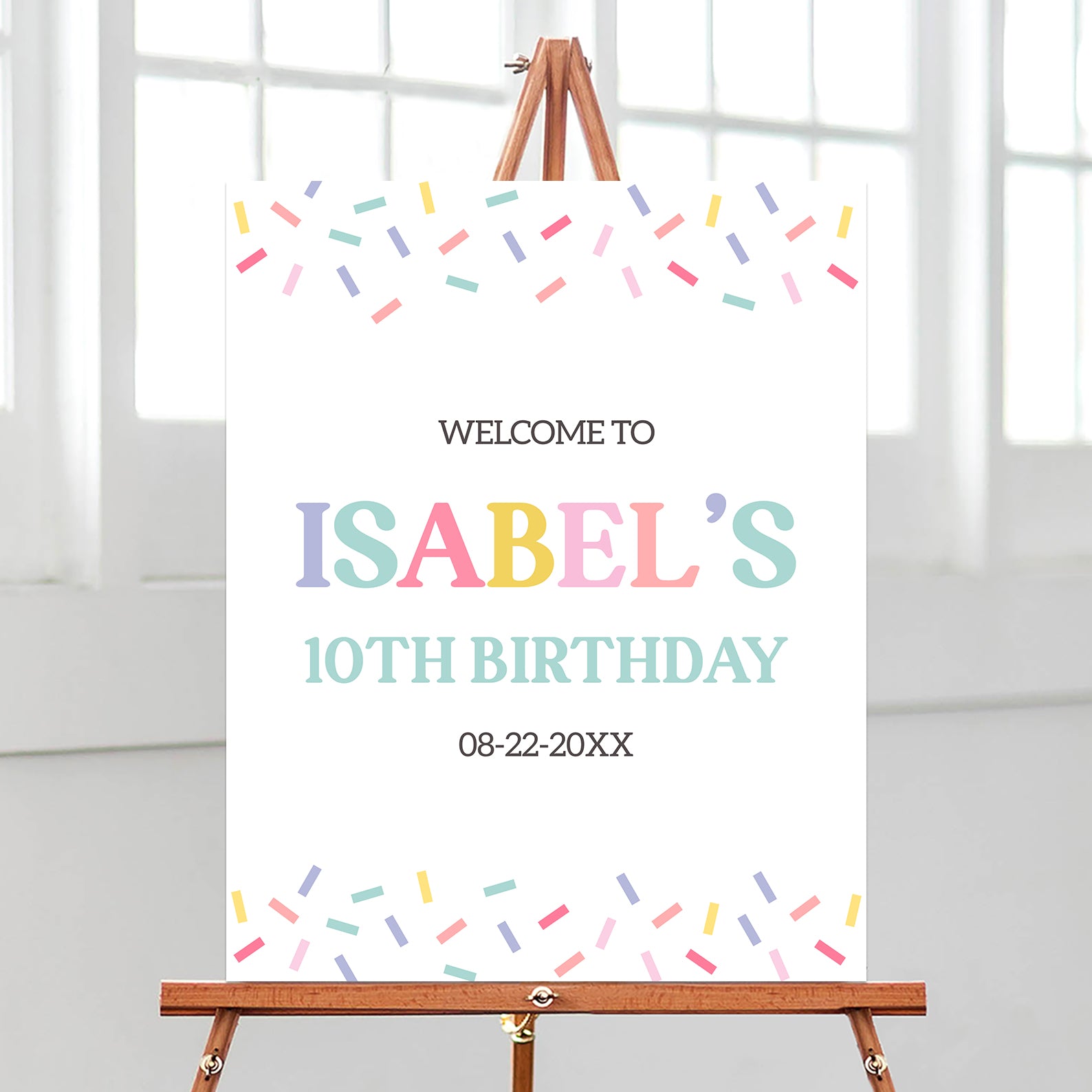 - Purchase this Digital 10th Birthday Welcome Sign: Sprinkle Party Theme template