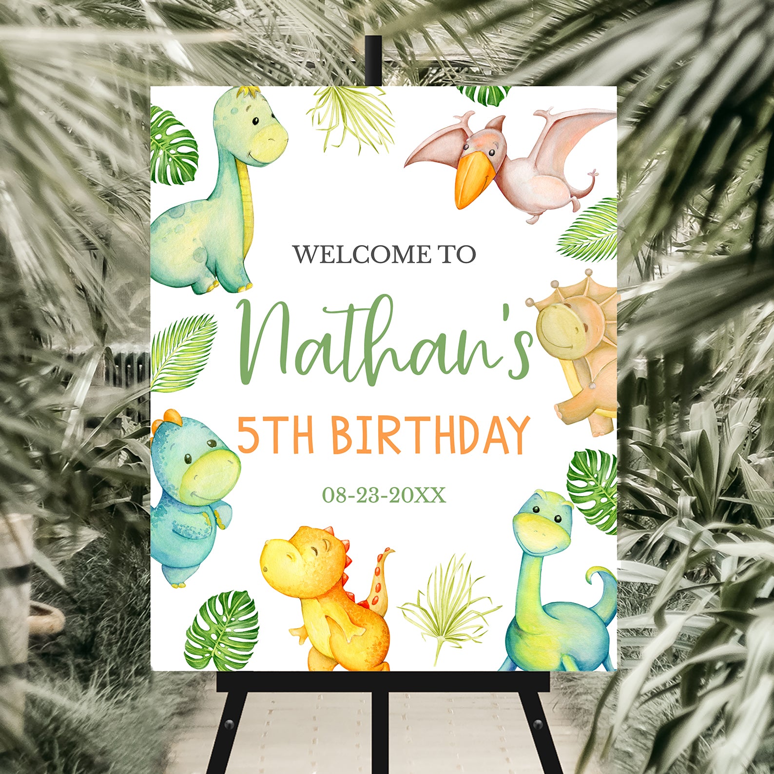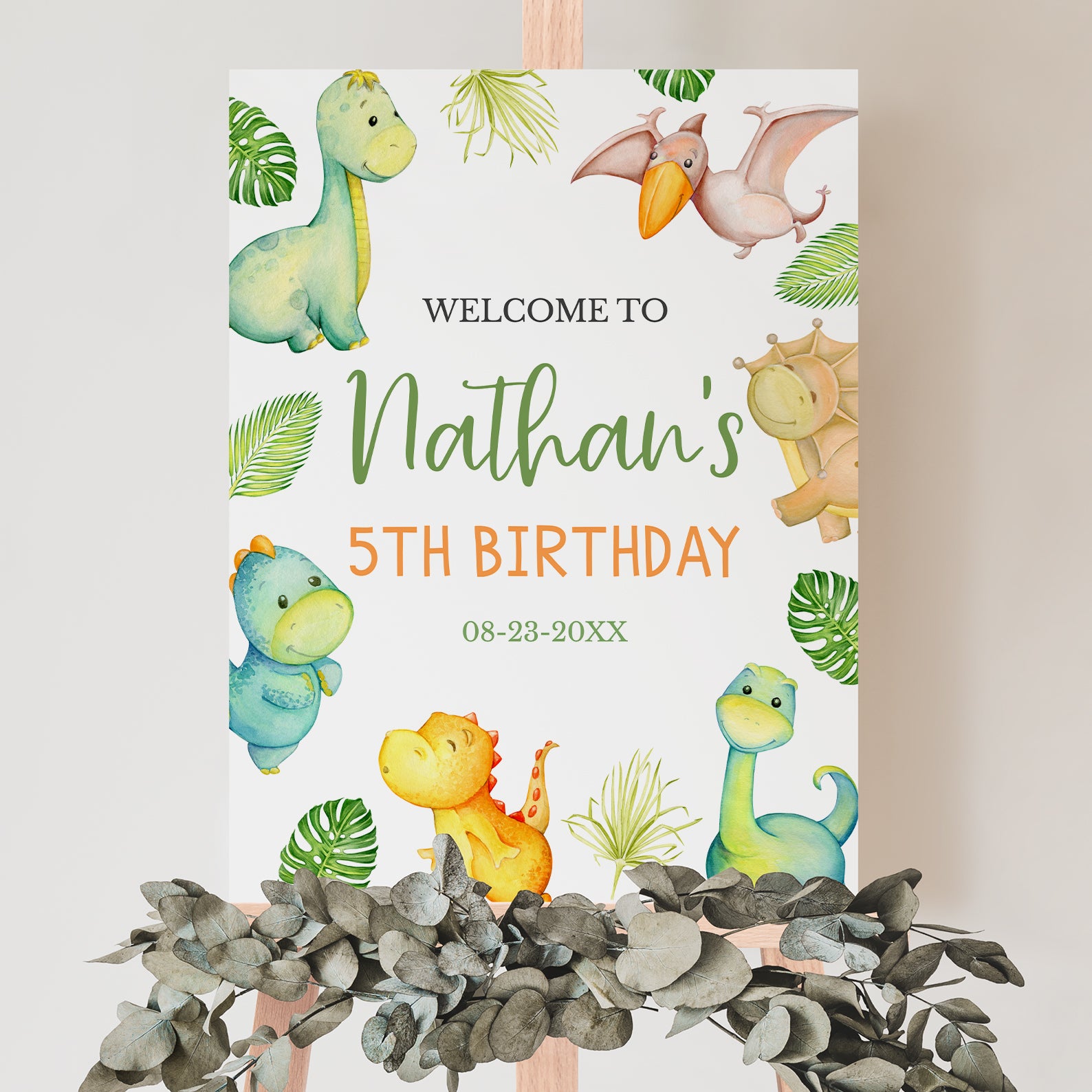 - Purchase this Digital Dino 5th Birthday Welcome Sign: Stomp Chomp Roar template