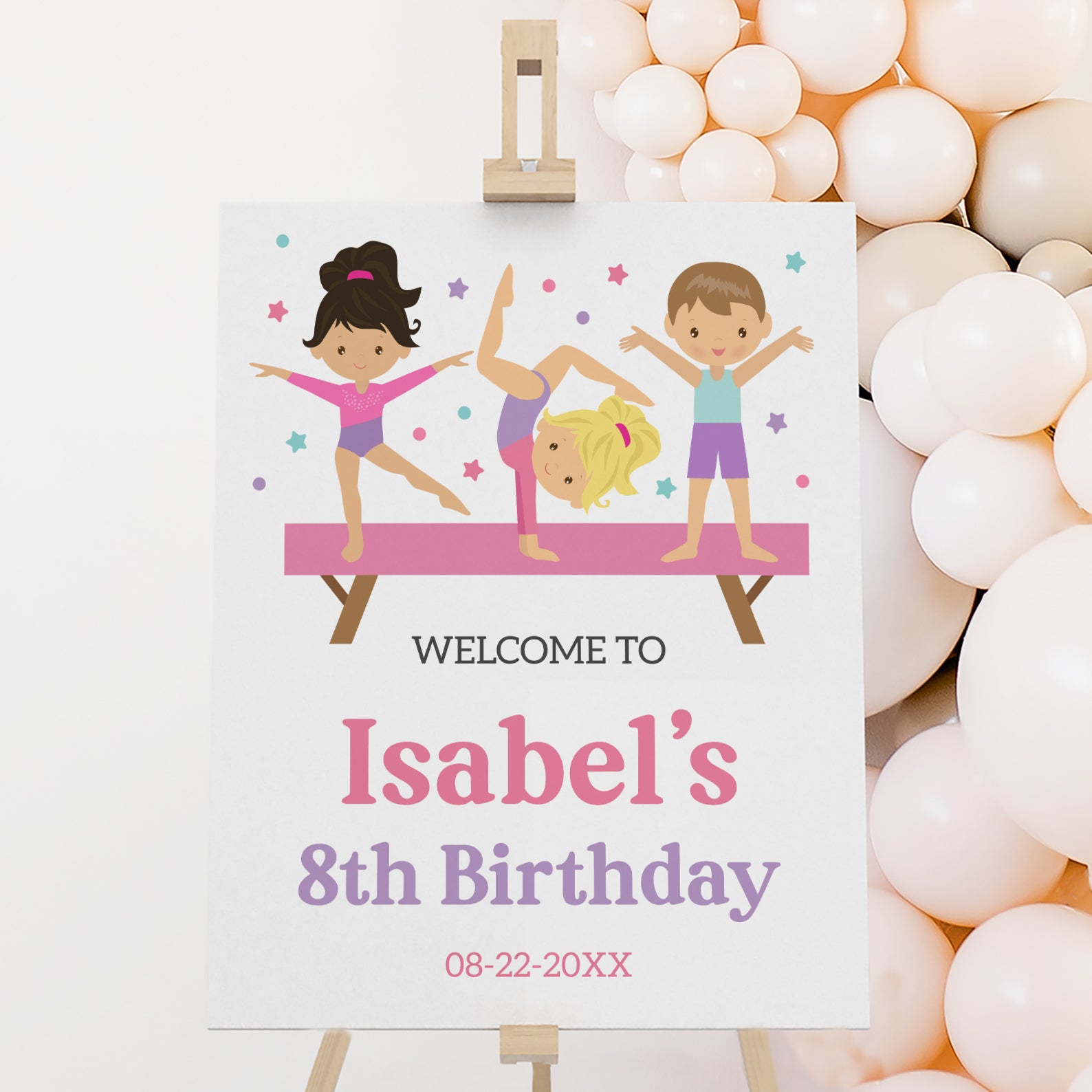 - Purchase this Flip, Tumble & Play: 8th Gymnastics Party Welcome Sign template