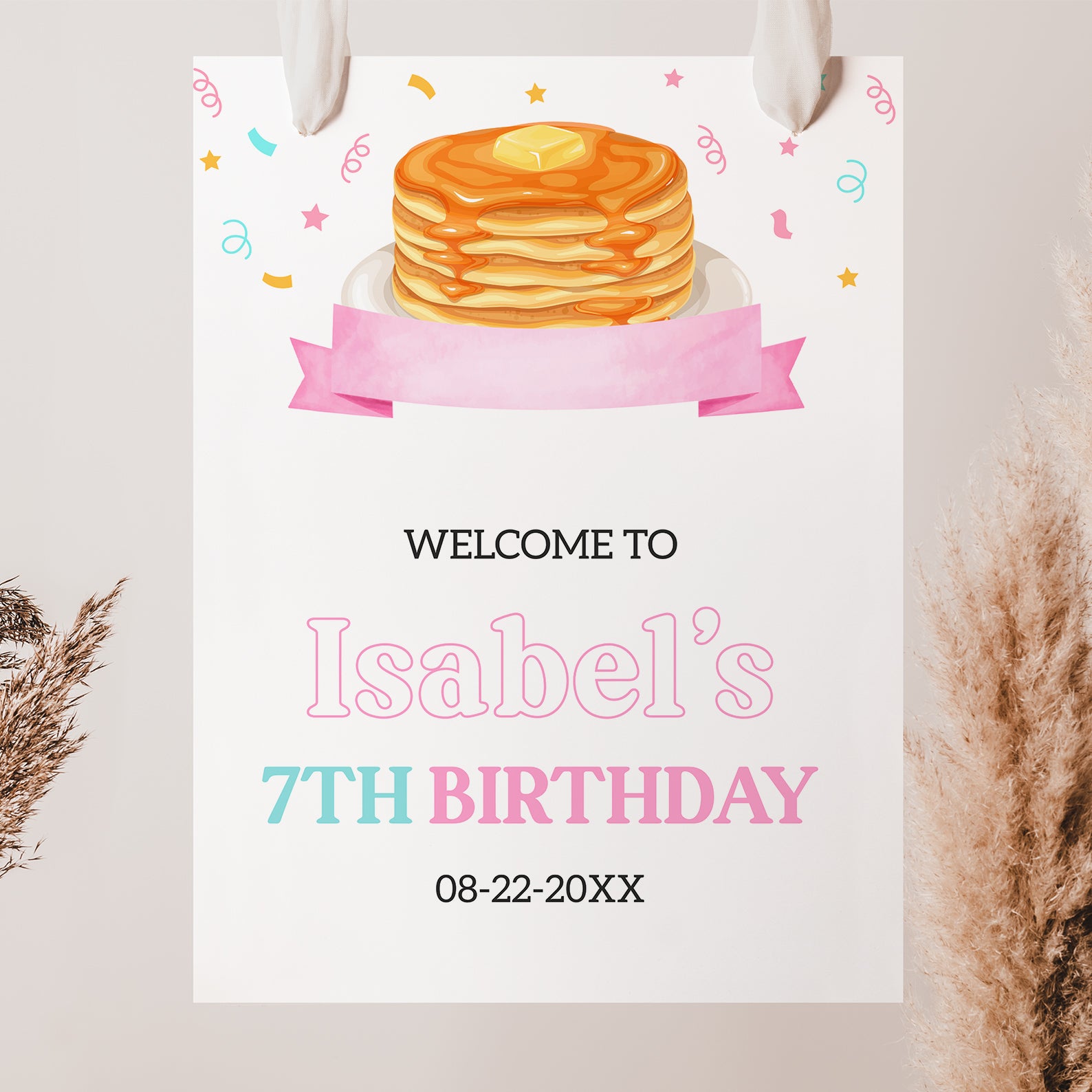 - Purchase this Pancakes & Pajamas 7th Birthday Welcome Sign: Confetti Fun template