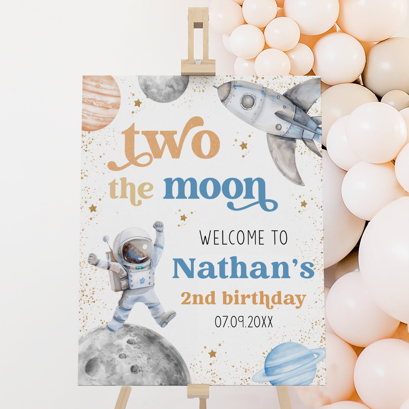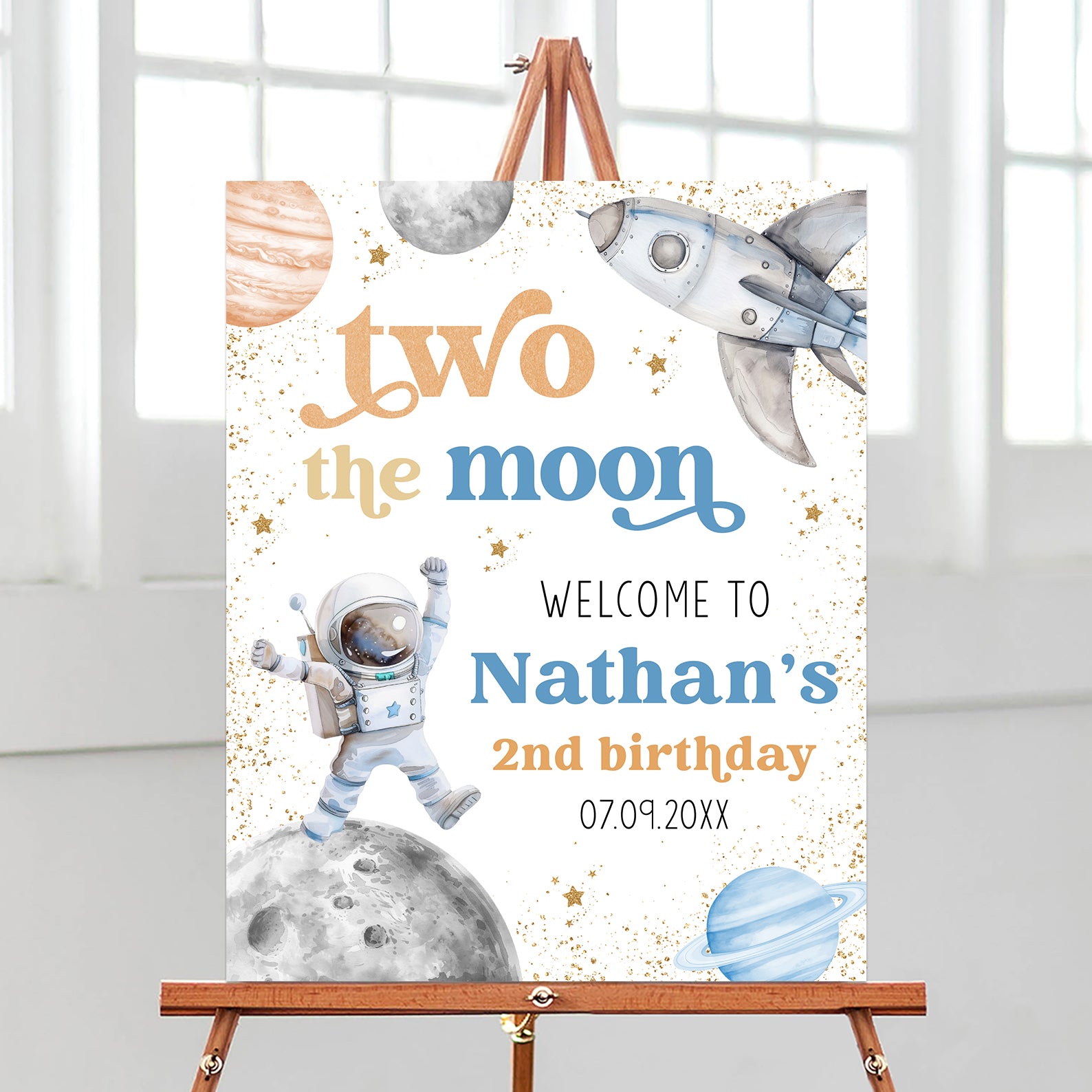 - Purchase this Two the Moon 2nd Birthday Welcome Sign: Astronaut & Stars Blue Theme template