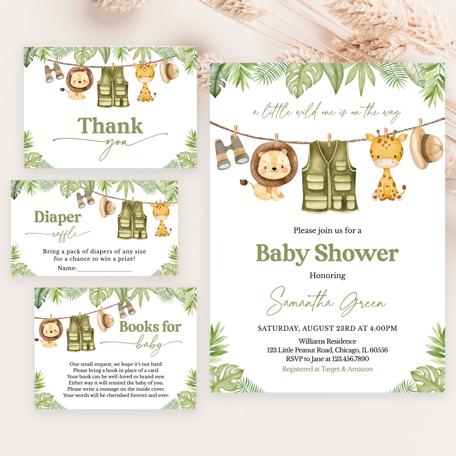 A Little Wild One Baby Shower Invite Bundle: Jungle Safari Theme