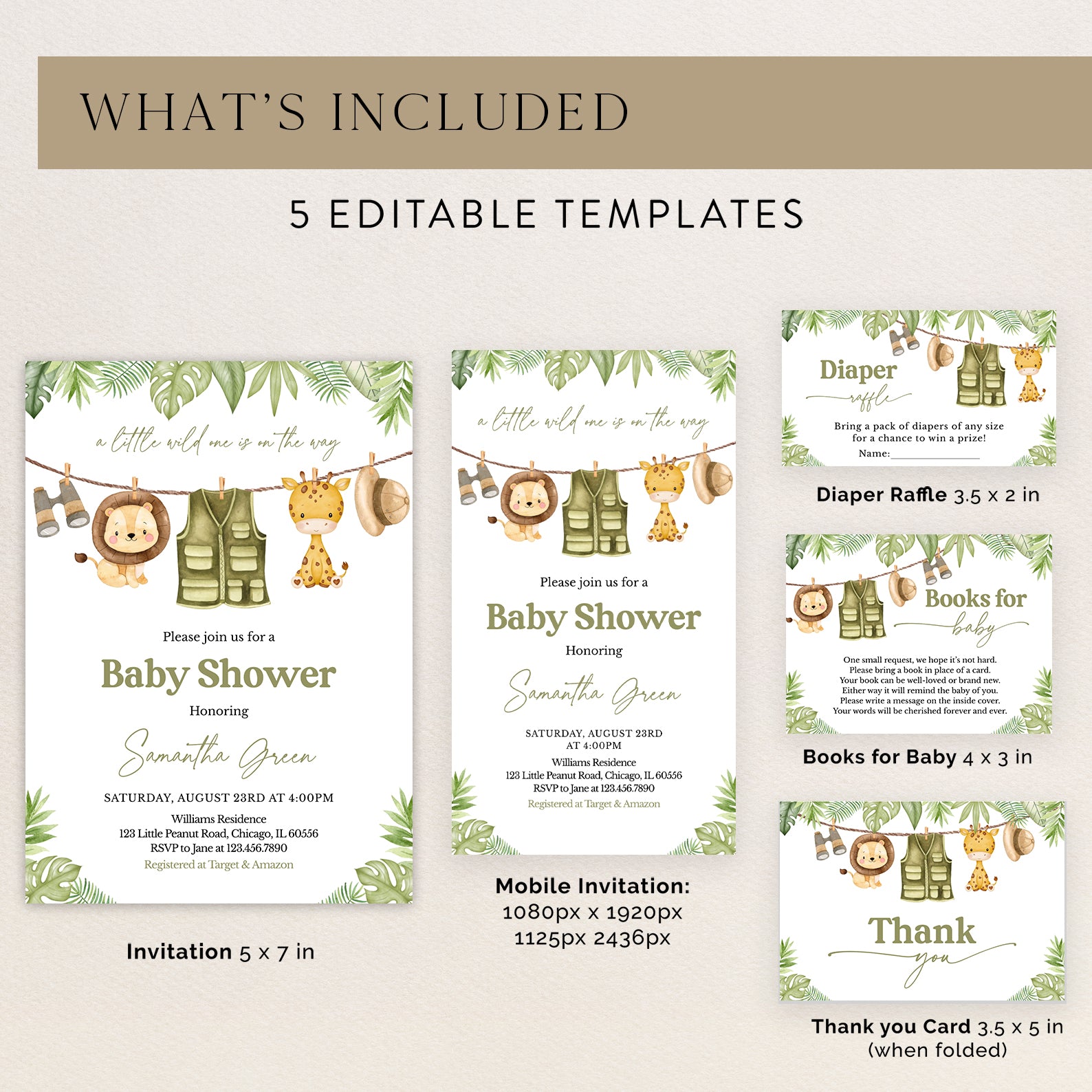- Purchase this A Little Wild One Baby Shower Invite Bundle: Jungle Safari Theme template