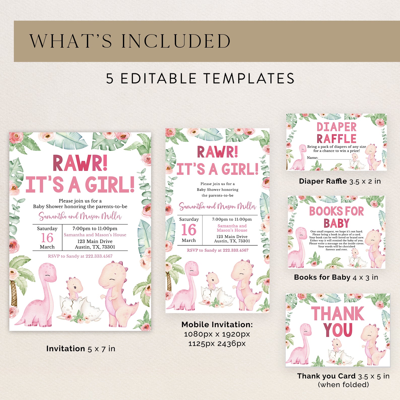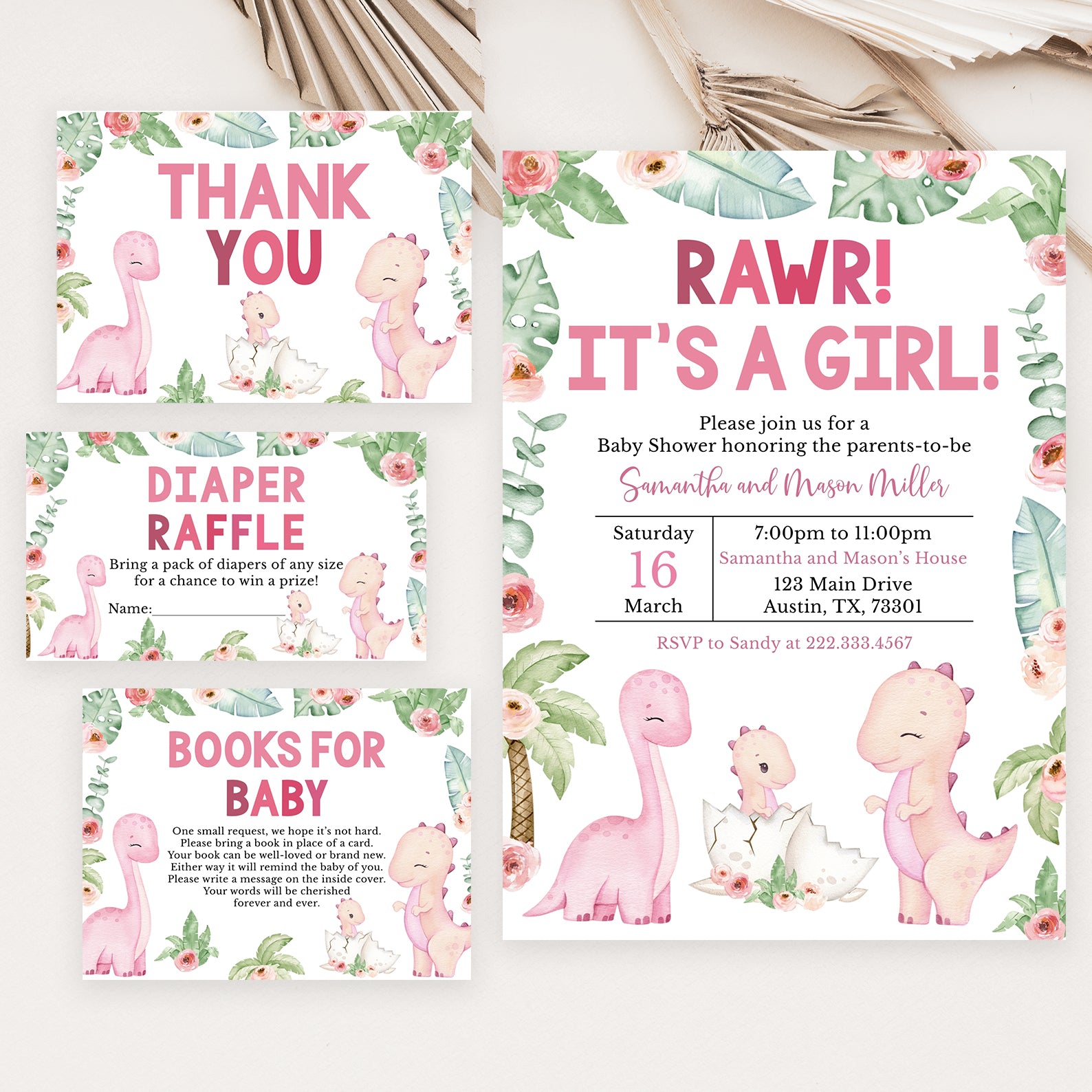 Dinosaur Baby Shower Digital Invite Bundle: Pink Jungle Theme