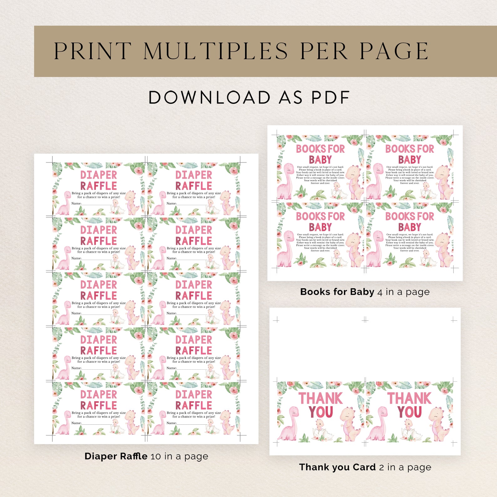 Celebrate your little one with our playful dinosaur-themed baby shower invitation bundle, available in pink or green jungle designs. Featuring jungle leaves, pine trees, and friendly dinosaurs with a baby dino hatching at the center, this bundle includes a digital invitation, mobile invite, diaper raffle, books for baby card, and thank you card. Easy to personalize, it’s everything you need to invite guests in style.