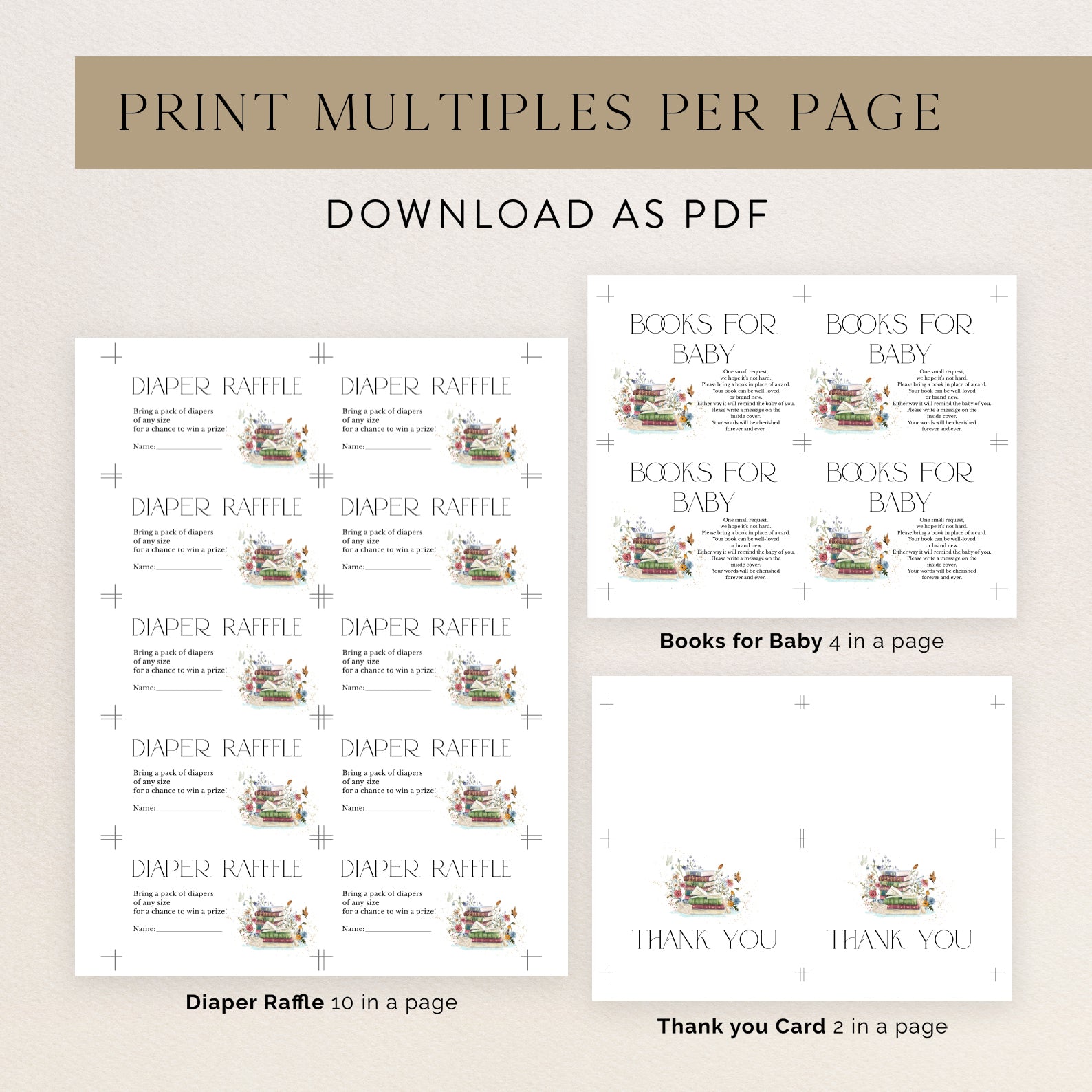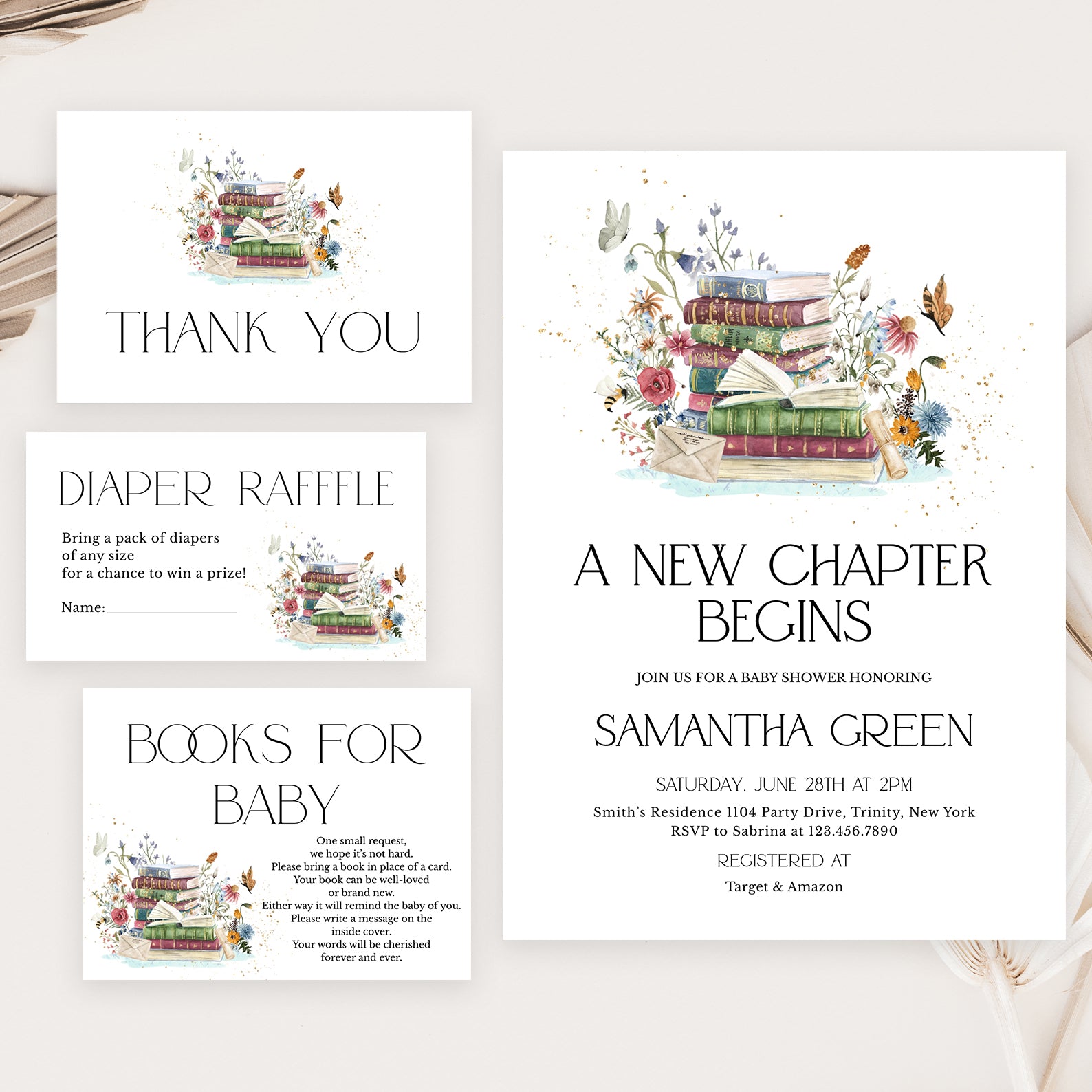 Minimalist Baby Shower Invitation Bundle Books & Wildflowers Theme