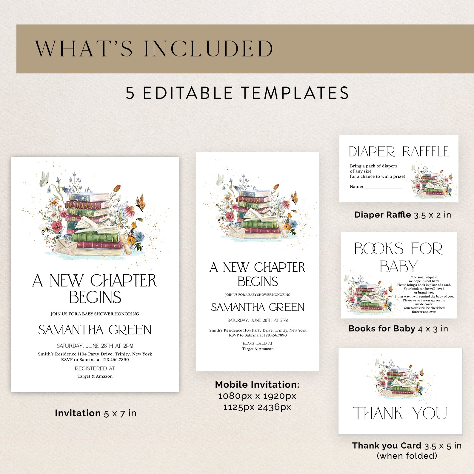- Purchase this Minimalist Baby Shower Invitation Bundle Books & Wildflowers Theme template