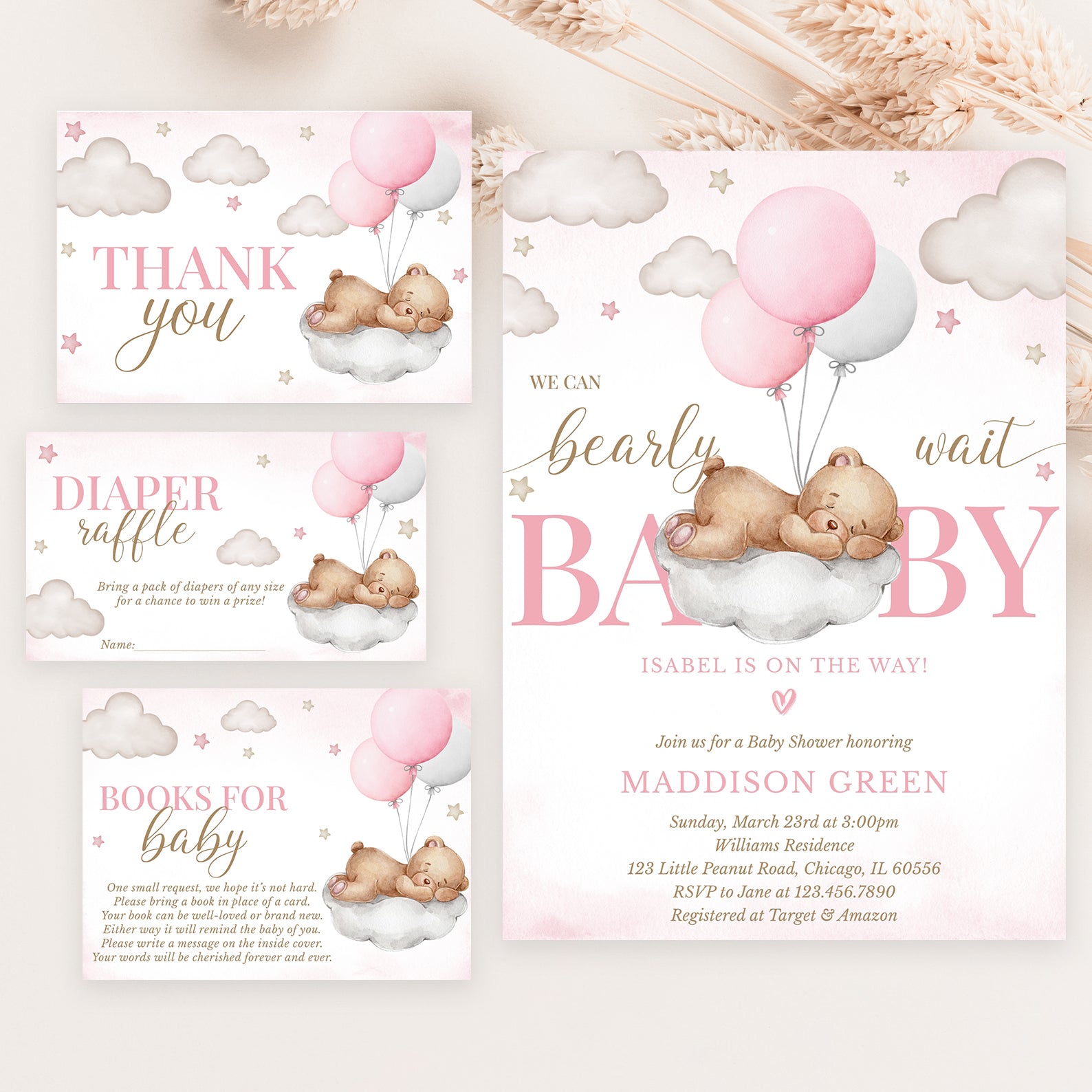 We Can Bearly Wait Baby Shower Invite Bundle: Pink Teddy Bear Theme