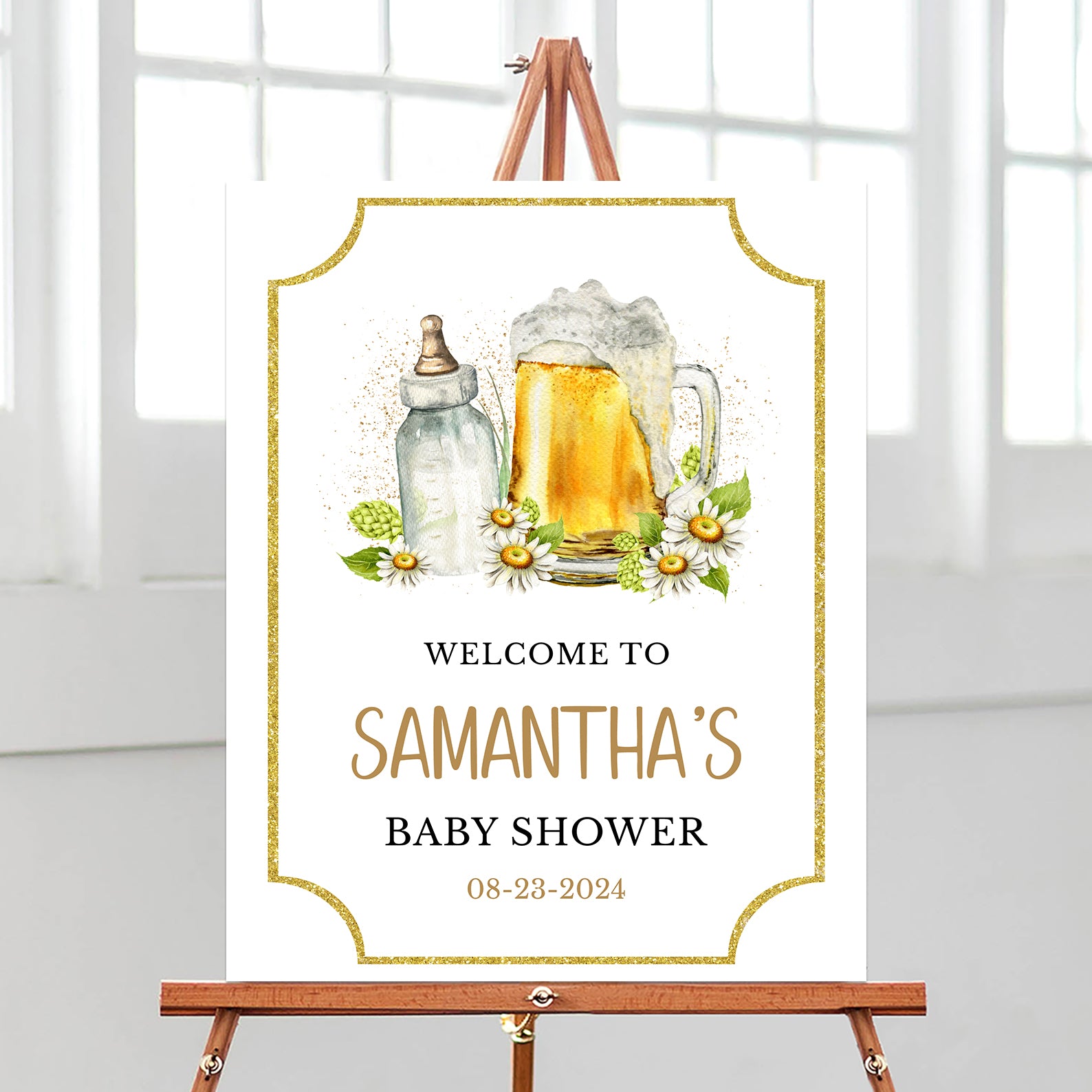 - Purchase this Brew Before Baby’s Due Welcome Sign Gold Ticket & Beer Theme template