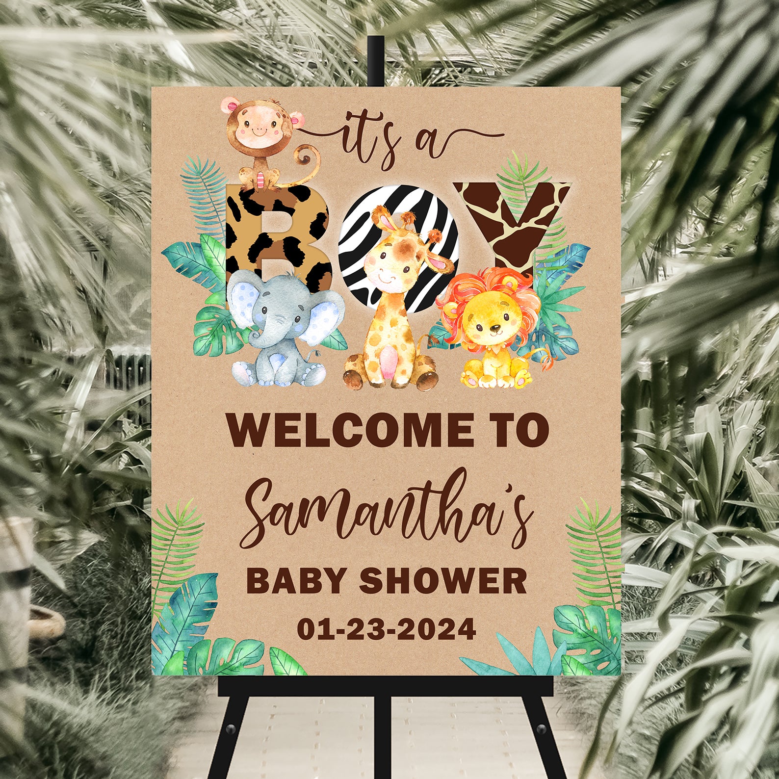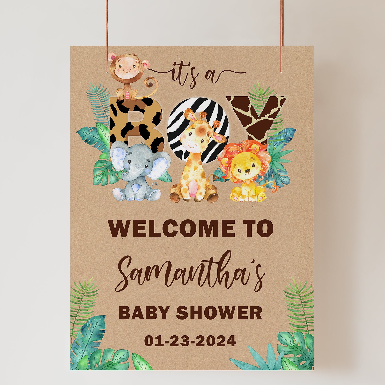 - Purchase this It’s a Boy Jungle Safari Baby Shower Kraft Welcome Sign template