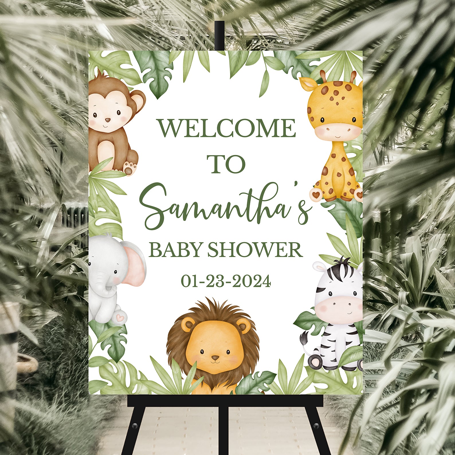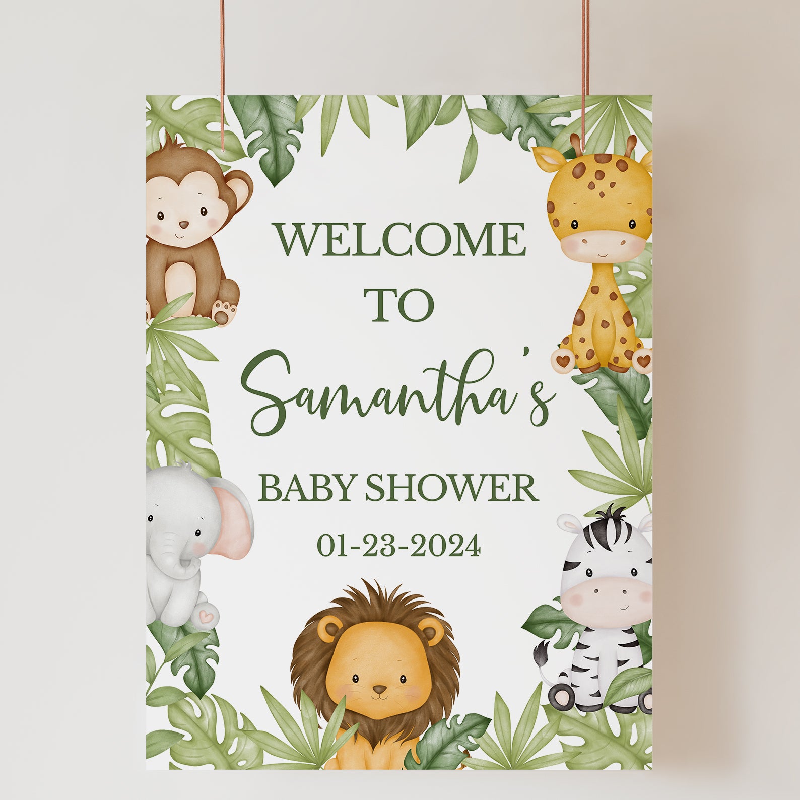 Jungle Safari Baby Shower Welcome Sign: Cute Animal Theme