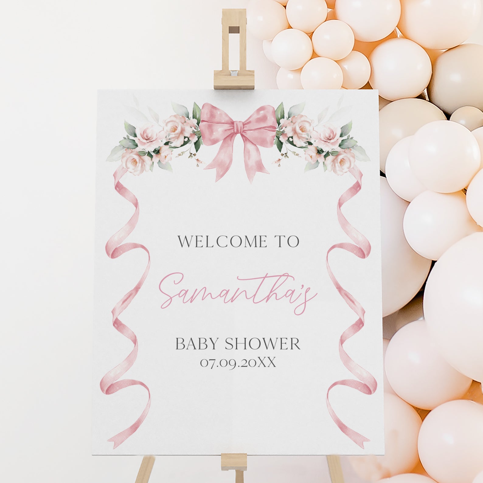 - Purchase this Pink Floral Baby Shower Digital Welcome Sign: A Sweet Girl template