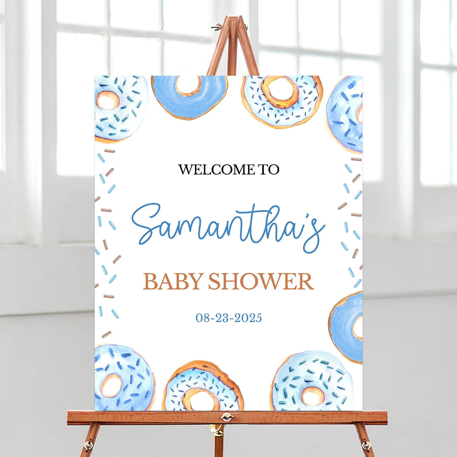 Celebrate your special day with this adorable baby shower welcome sign, available in your choice of blue or pink. Featuring a playful donut border with sprinkles, it adds a sweet touch to your decor and creates a warm, inviting atmosphere for your guests.