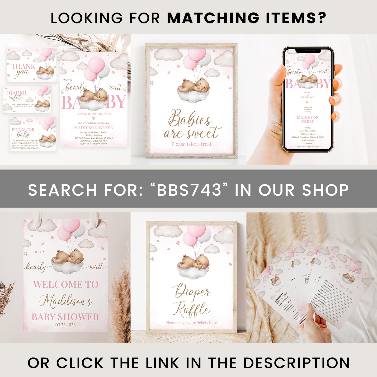 - Purchase this We Can Bearly Wait Baby Shower Welcome Sign: Pink Teddy Bear Theme template