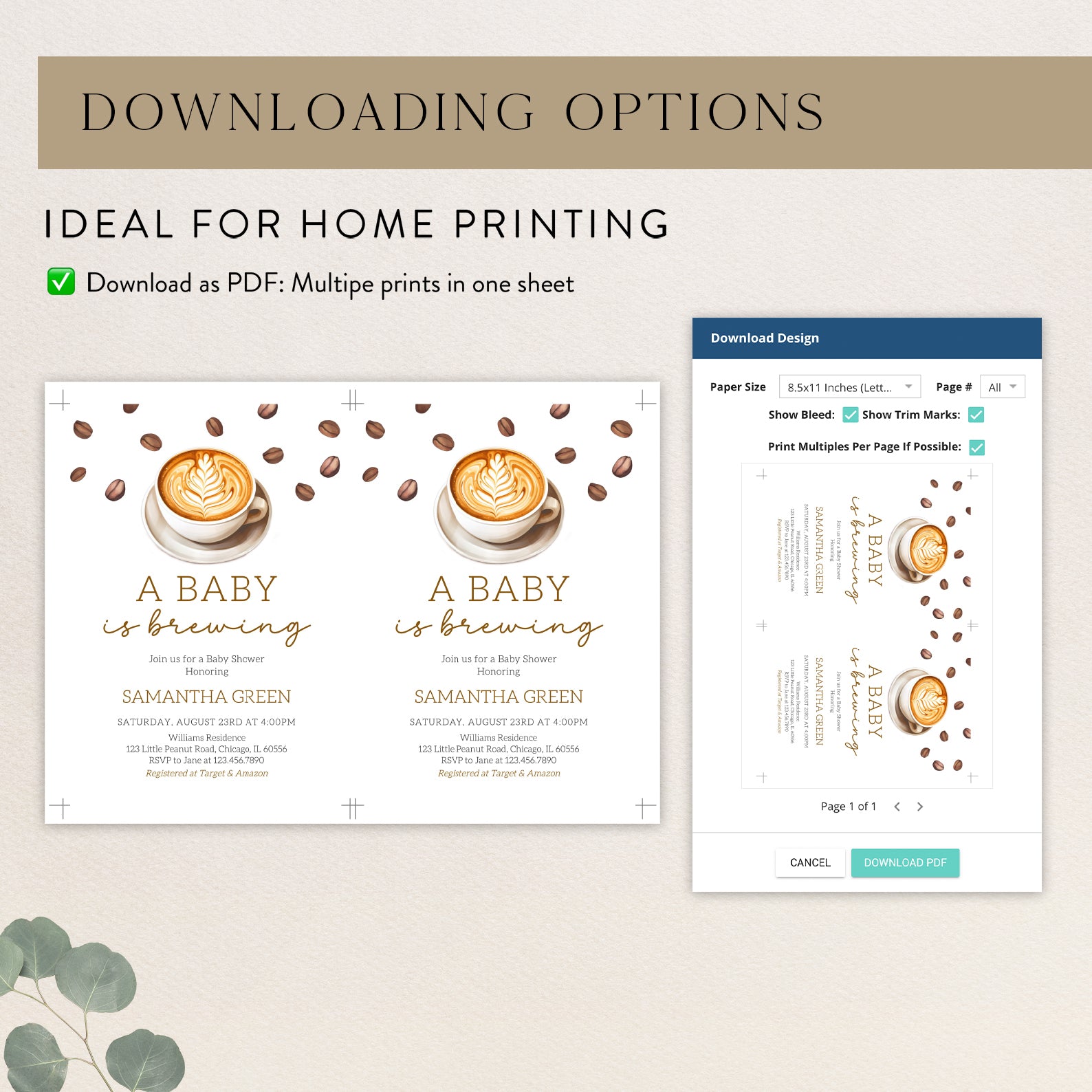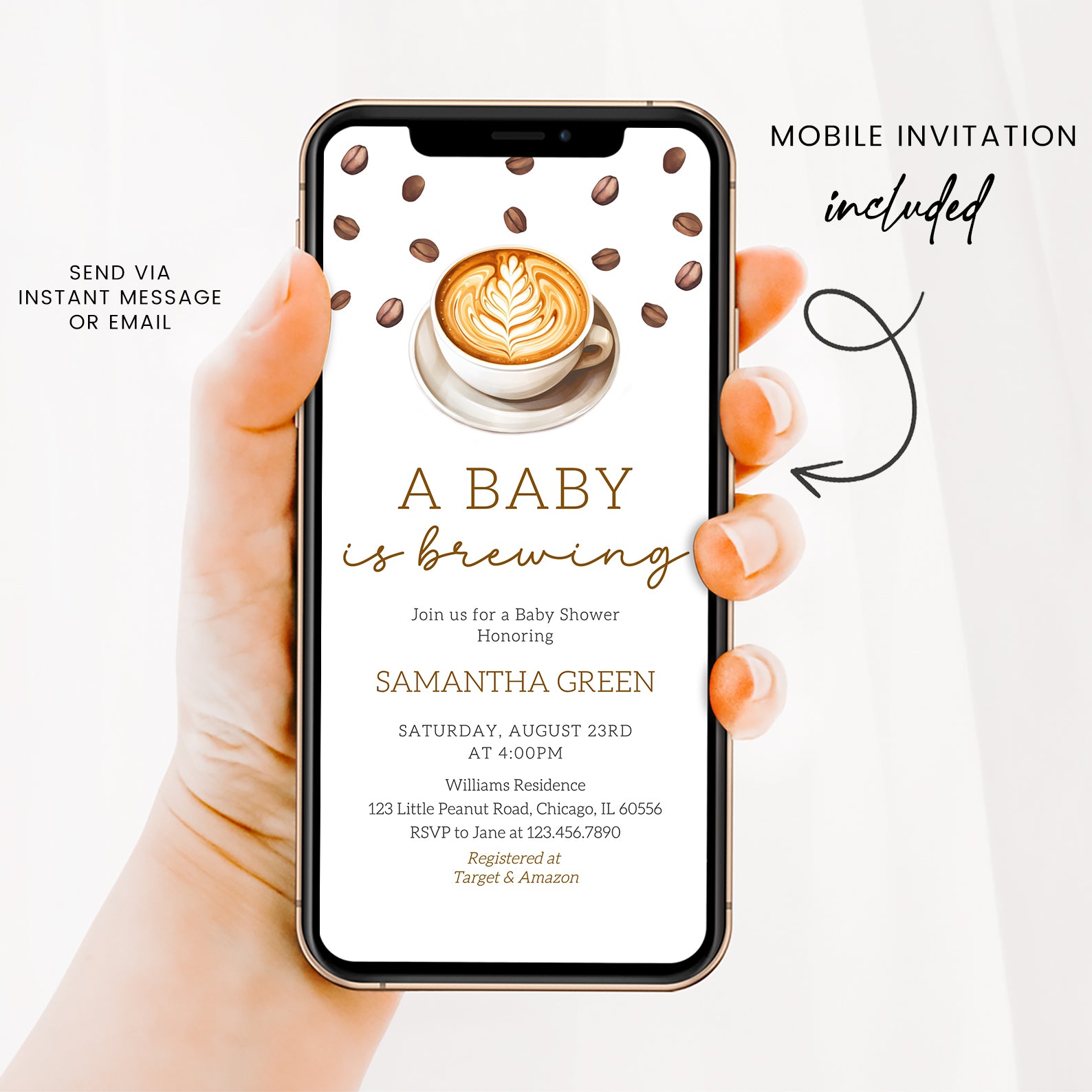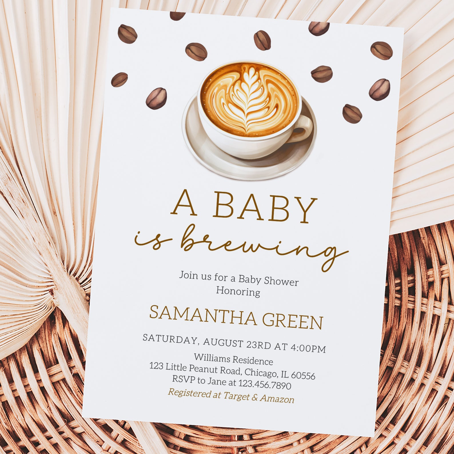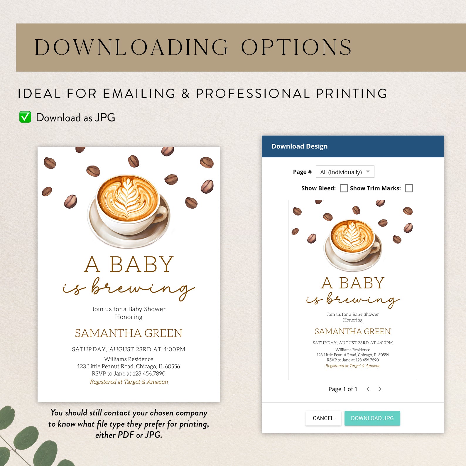 - Purchase this A Baby Is Brewing: Minimalist Coffee-Themed Baby Shower Invite Bundle template