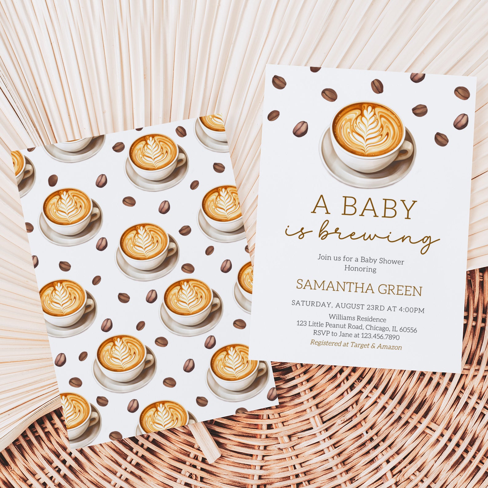 A Baby Is Brewing: Minimalist Coffee-Themed Baby Shower Invite Bundle