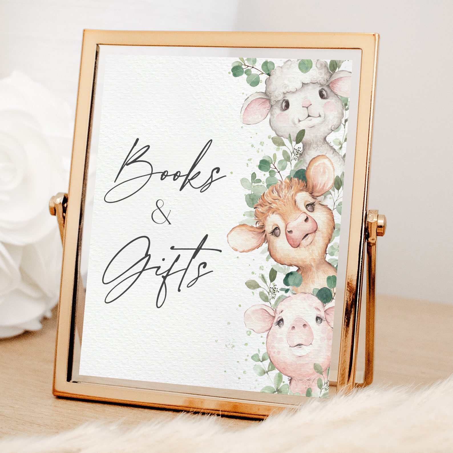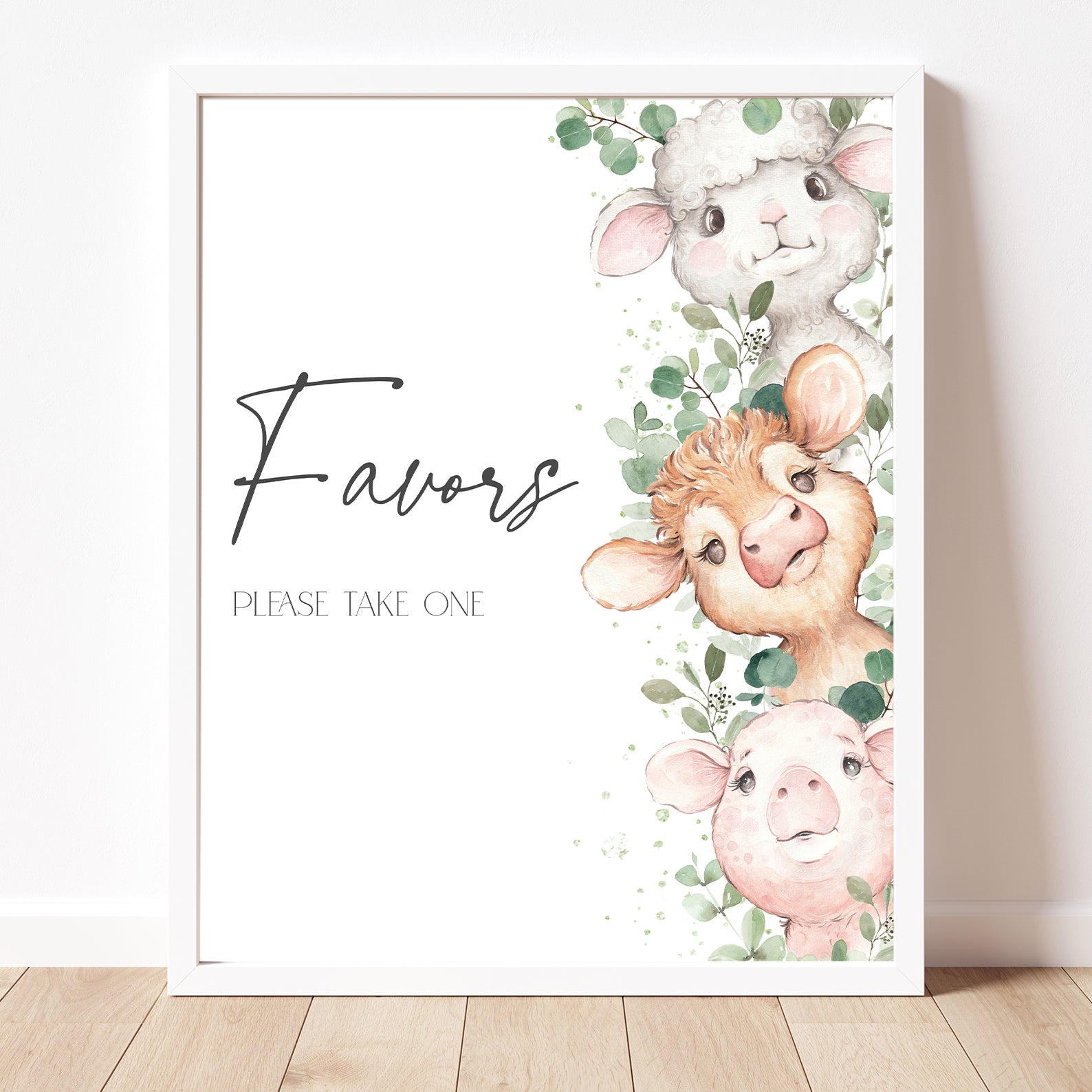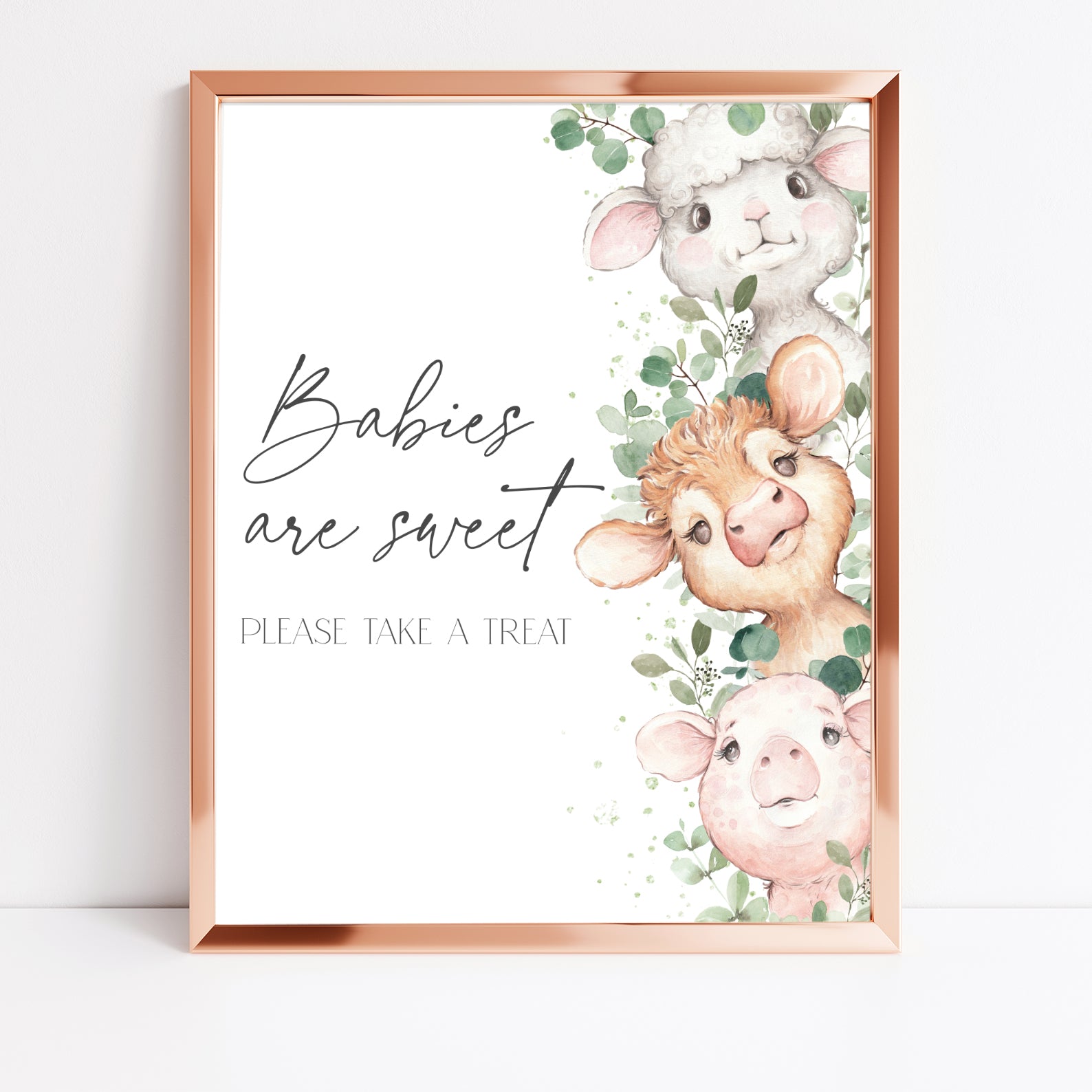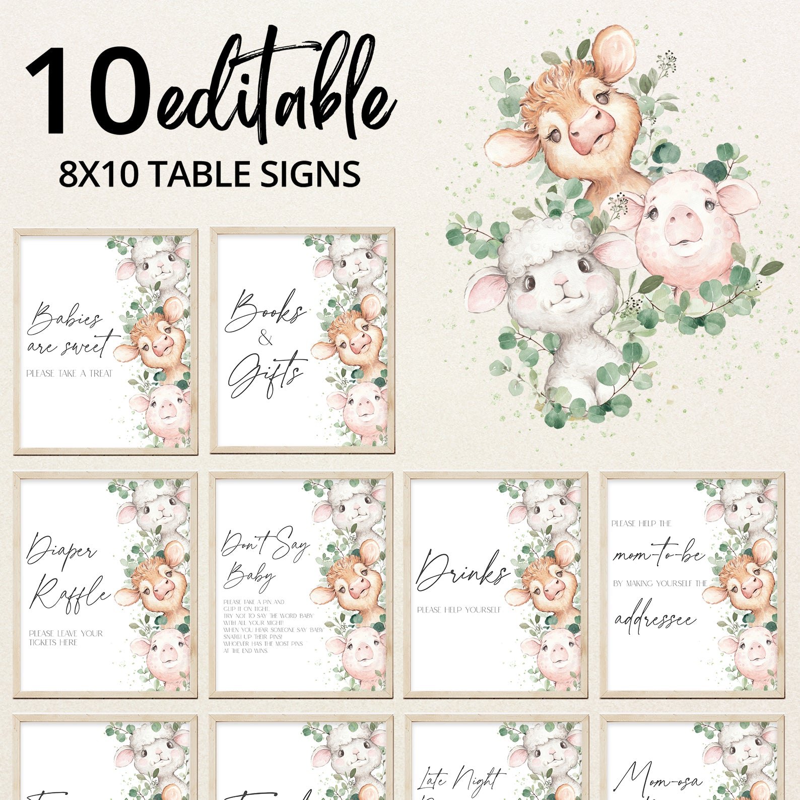- Purchase this Baby Shower Table Sign with Cute Farm Animals & Greenery template